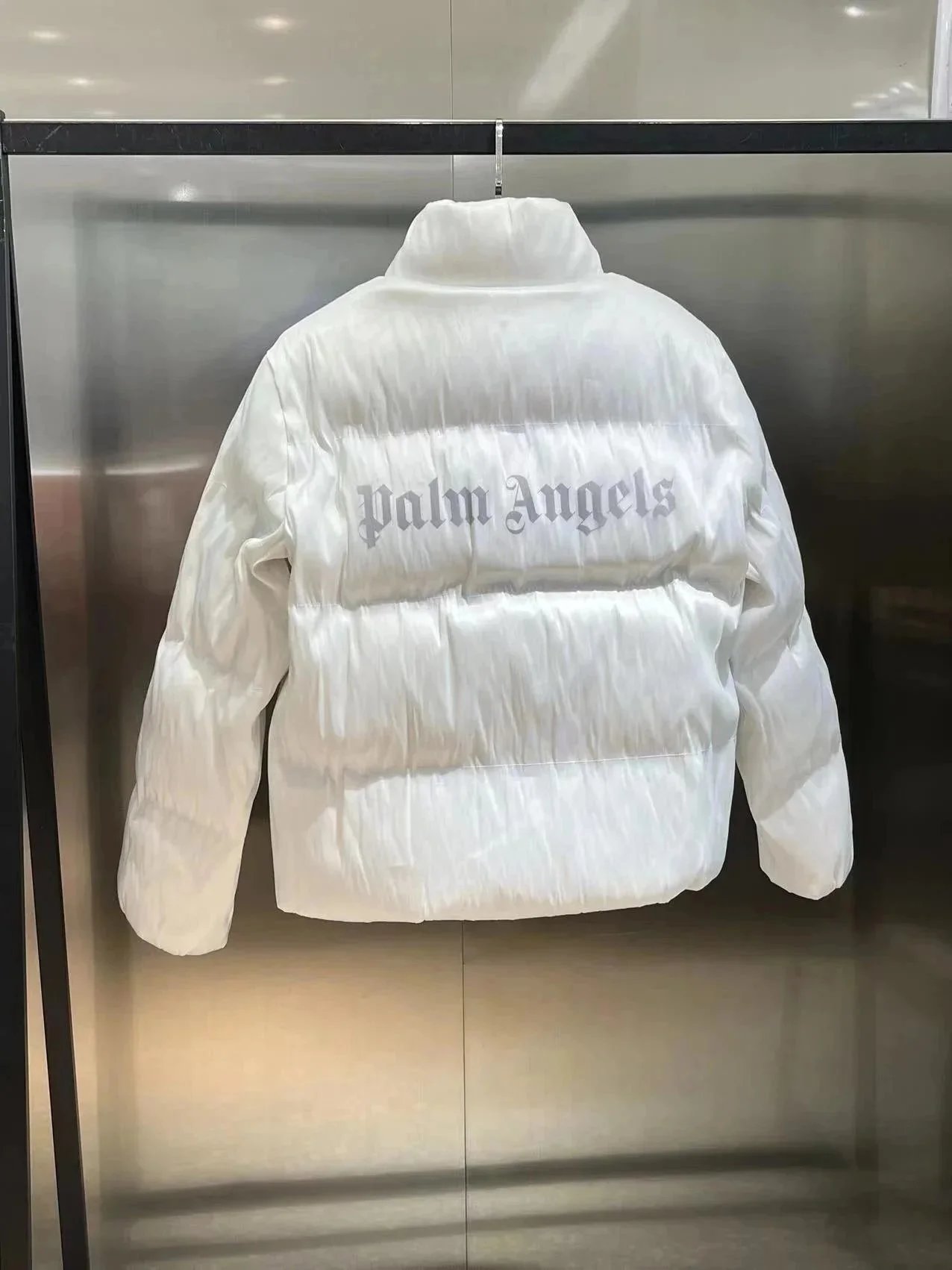 Explore the Palm Angels x Moncler light-up puffer jacket collection featuring vibrant LED patterns, premium insulation, and iconic branding. Available in multiple colors including white, gray, blue, pink, green, and multicolor.