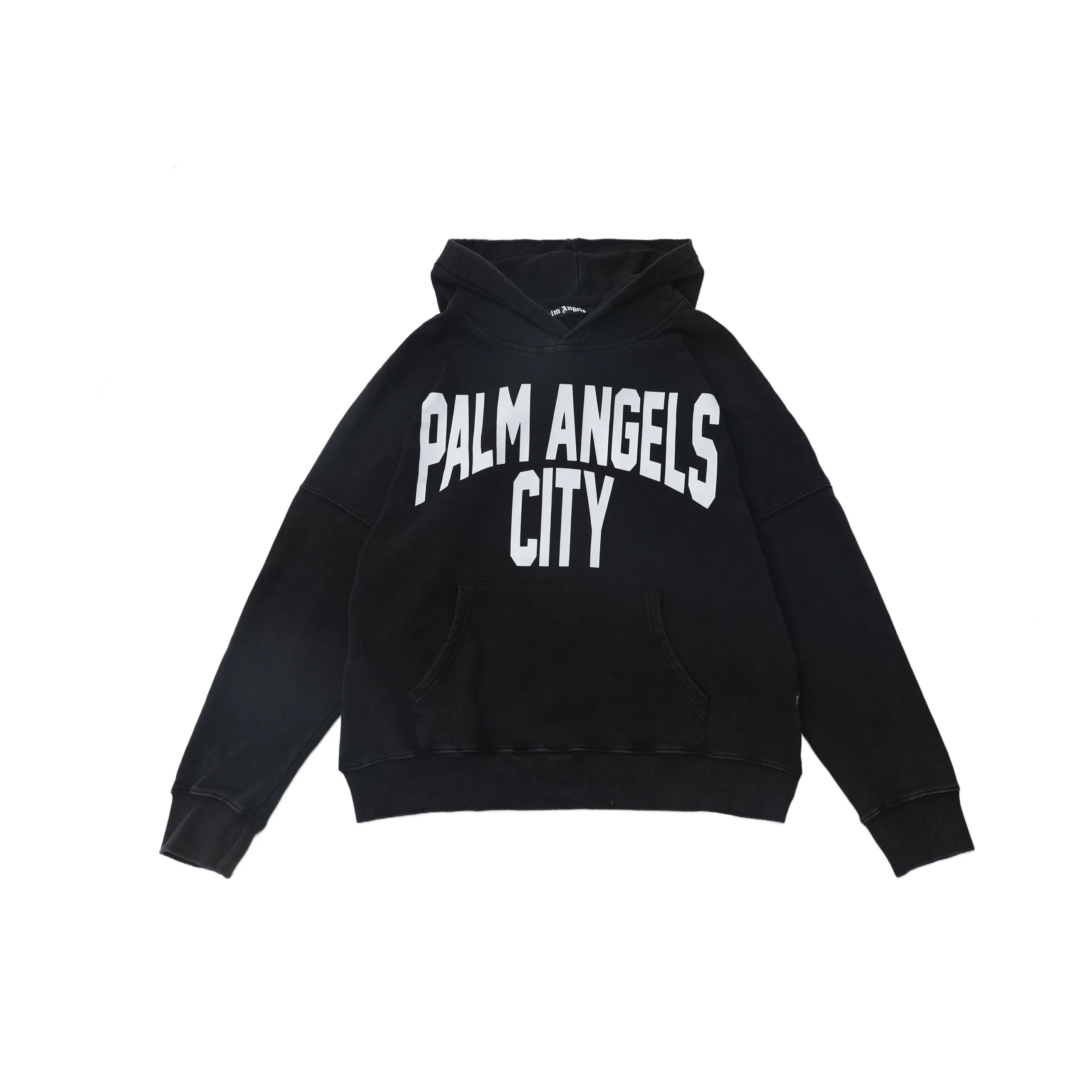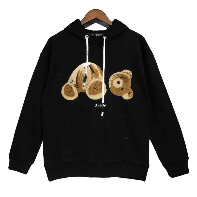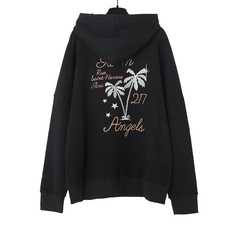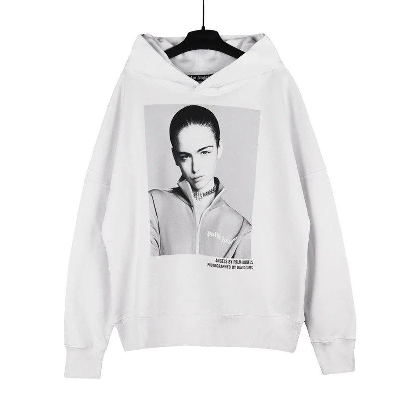 Palm Angels black hoodie featuring a bold shark graphic and brand logo. Perfect for streetwear lovers seeking premium urban style.