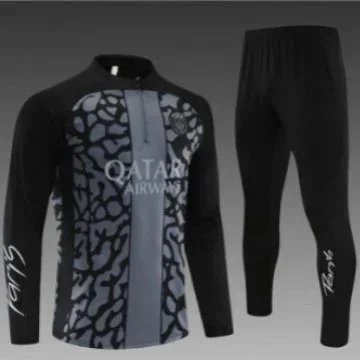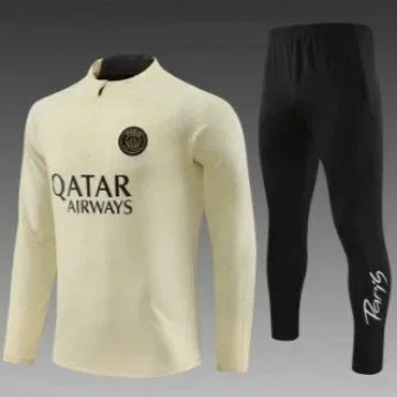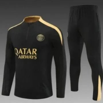 Official Paris Saint-Germain training sets featuring the Qatar Airways sponsorship logo, available in multiple colors and patterns for professional or fan use. Designed for performance and comfort on the pitch.