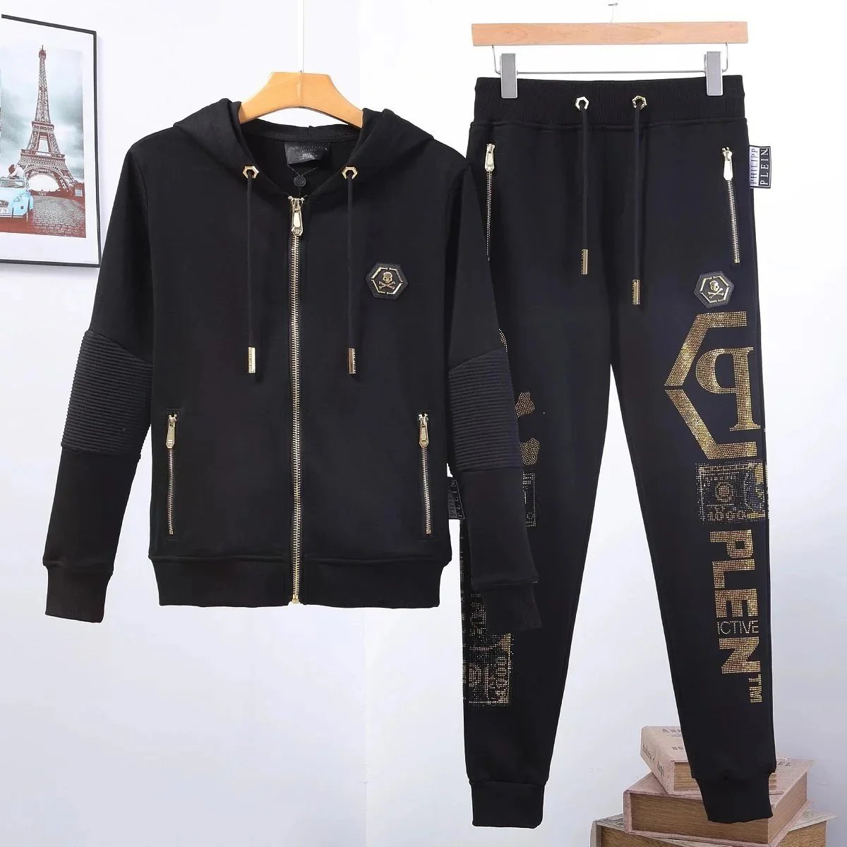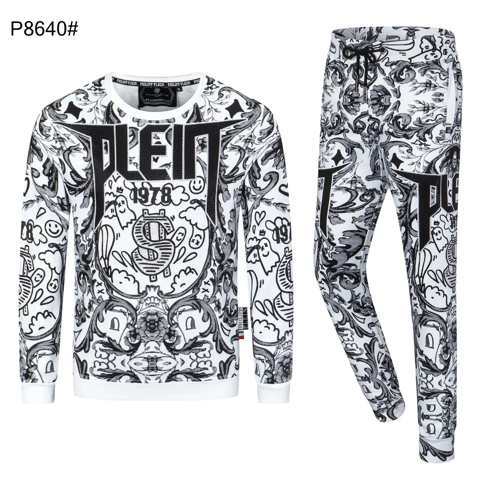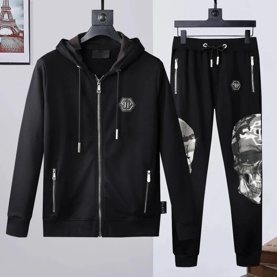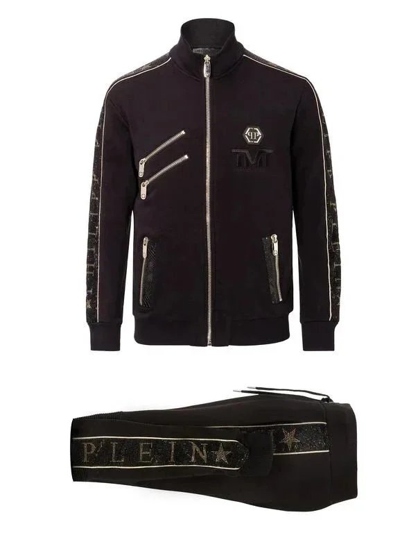 Luxury Philipp Plein black sweatshirts featuring bold skull and teddy bear designs with sparkling crystal embellishments for a statement streetwear look.