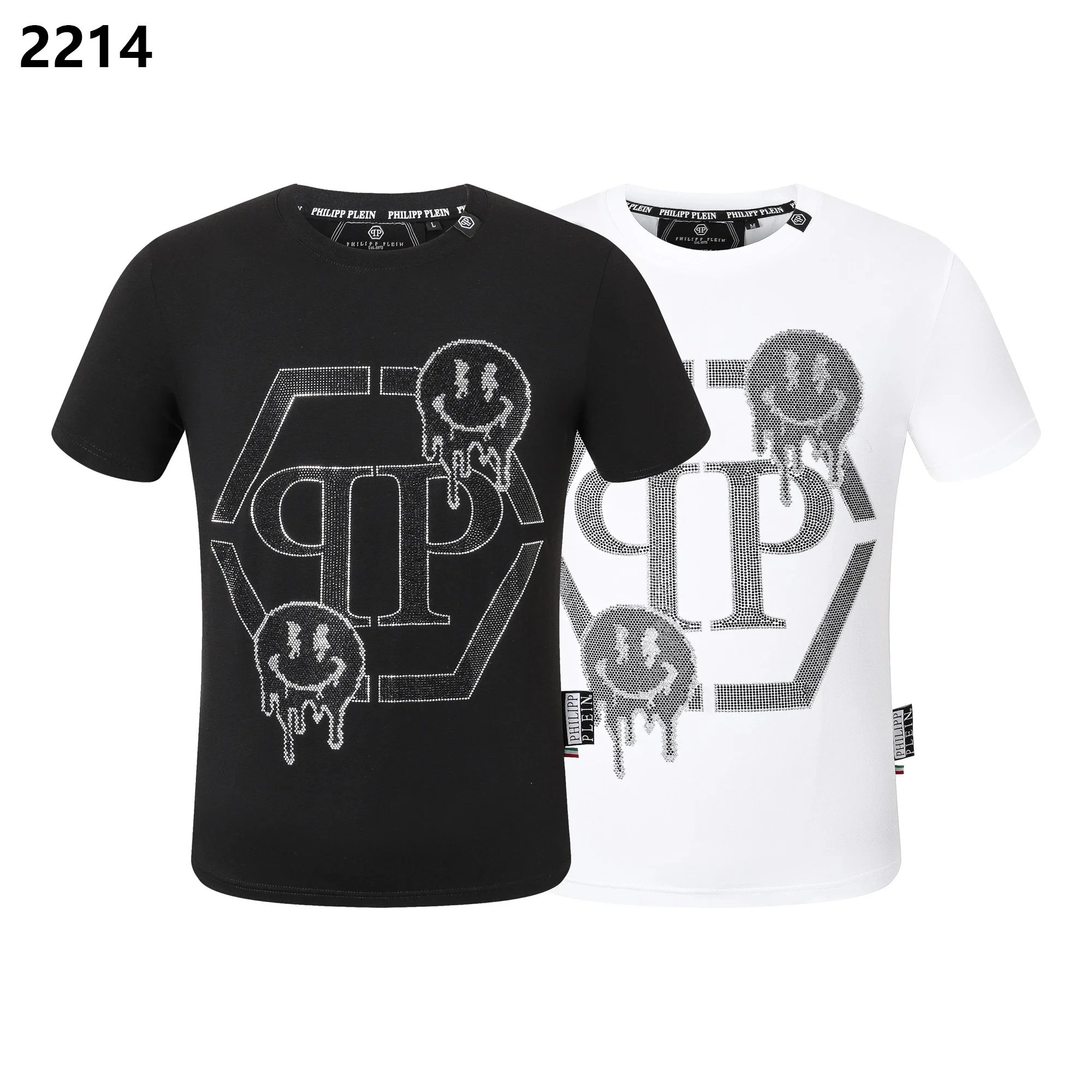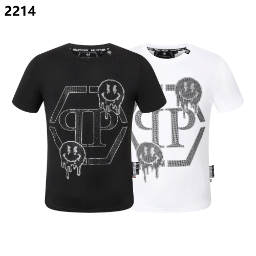 Philipp Plein men's t-shirts featuring iconic dripping smile logo in black and white. Bold, luxury streetwear design with signature branding for a statement look.
