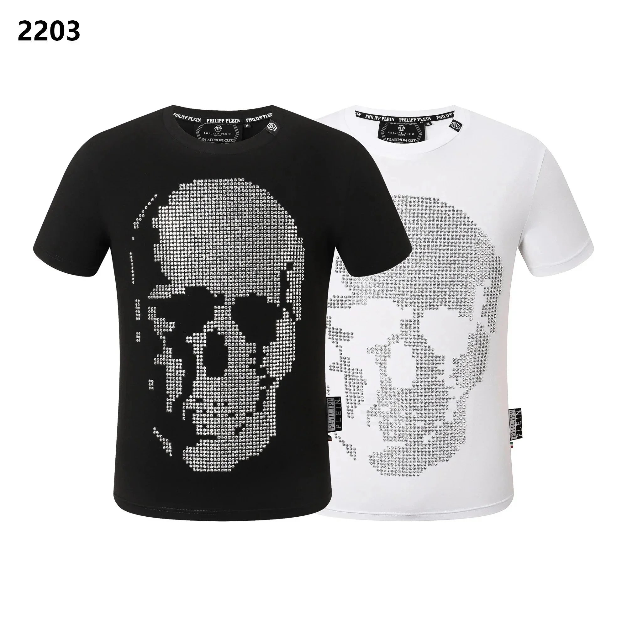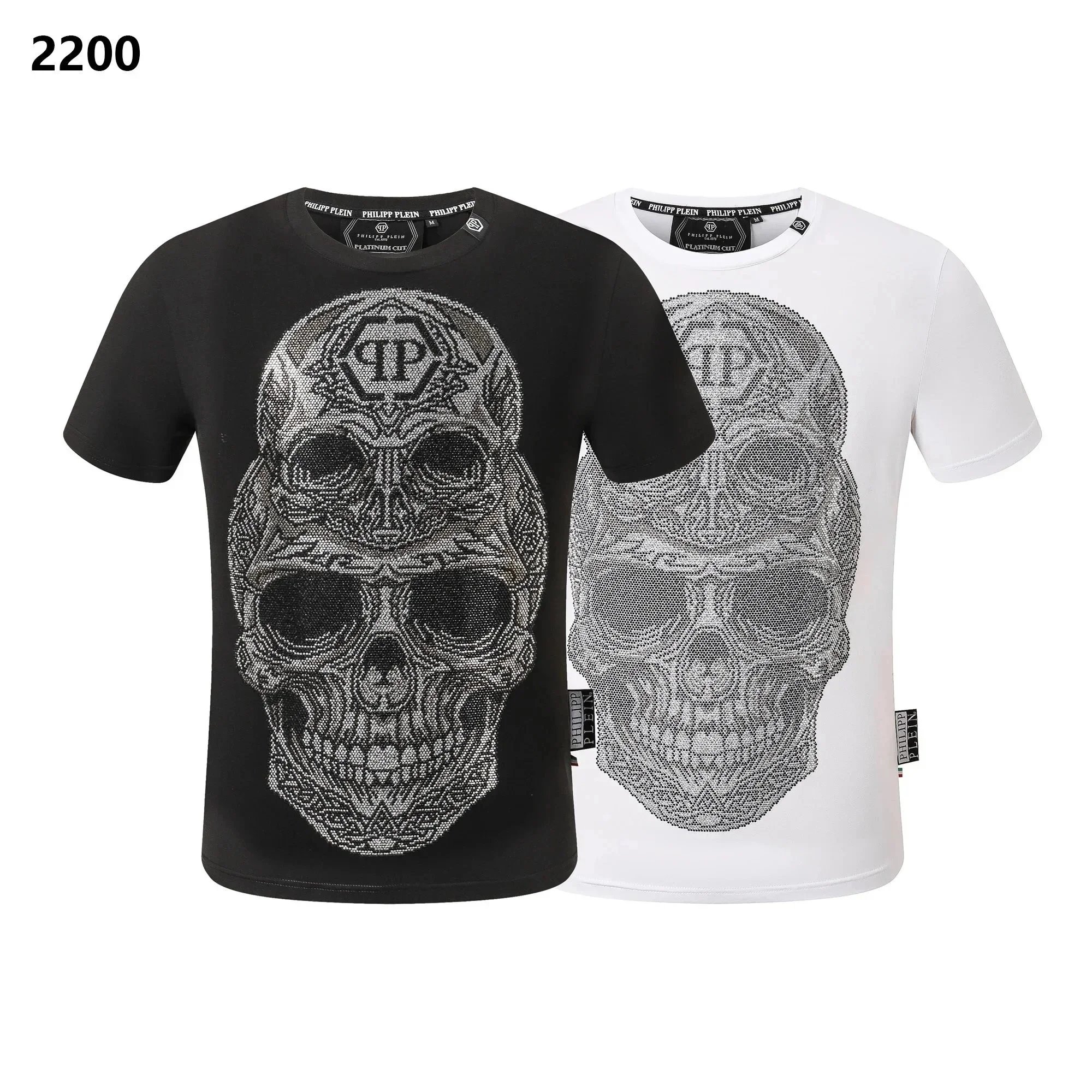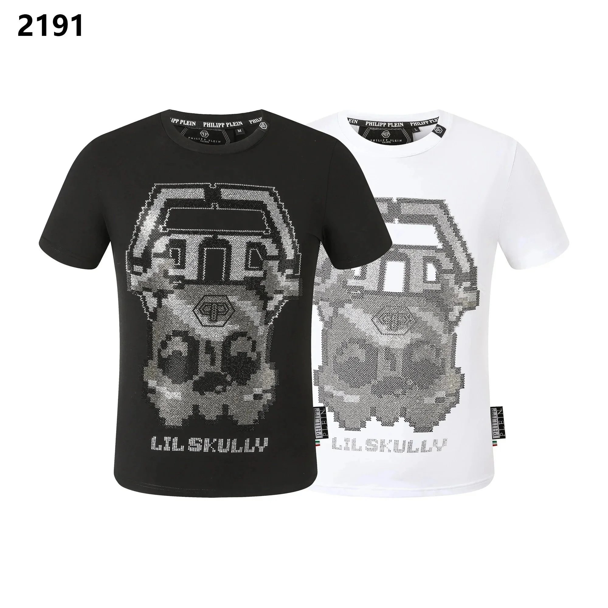 Philipp Plein Lil Skully t-shirts featuring pixelated skull graphics in black and white. Bold, urban design for contemporary style.