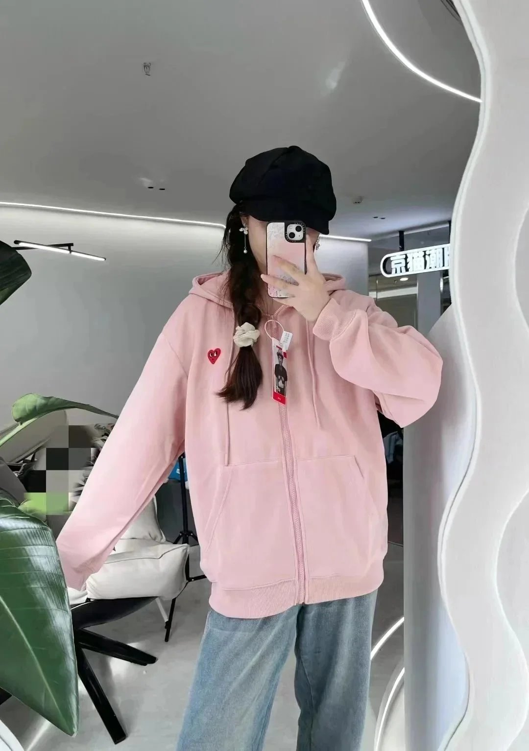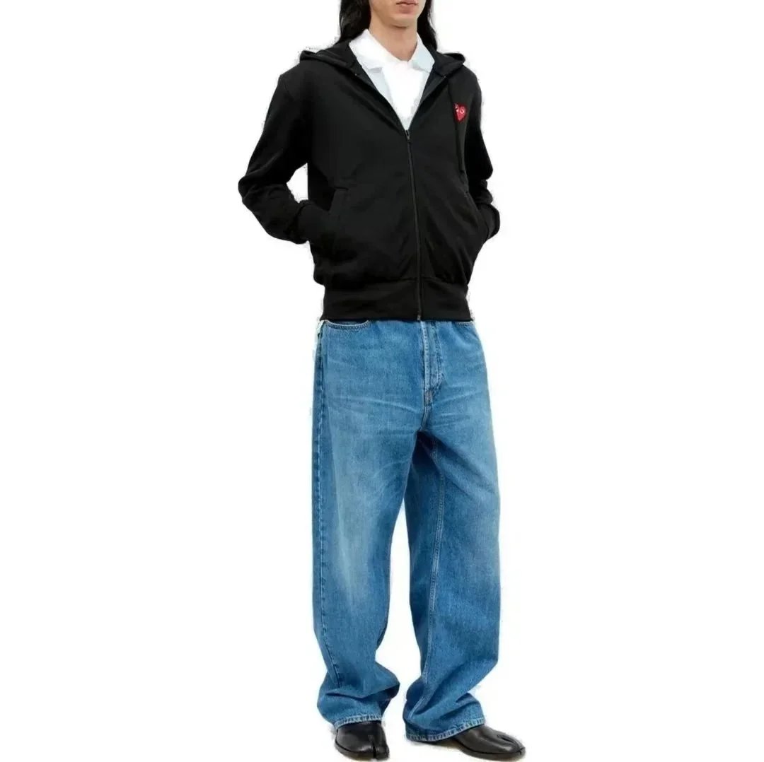 Stylish PLAY zip-up hoodie and matching joggers featuring iconic heart logo. Perfect for casual comfort with a designer edge.