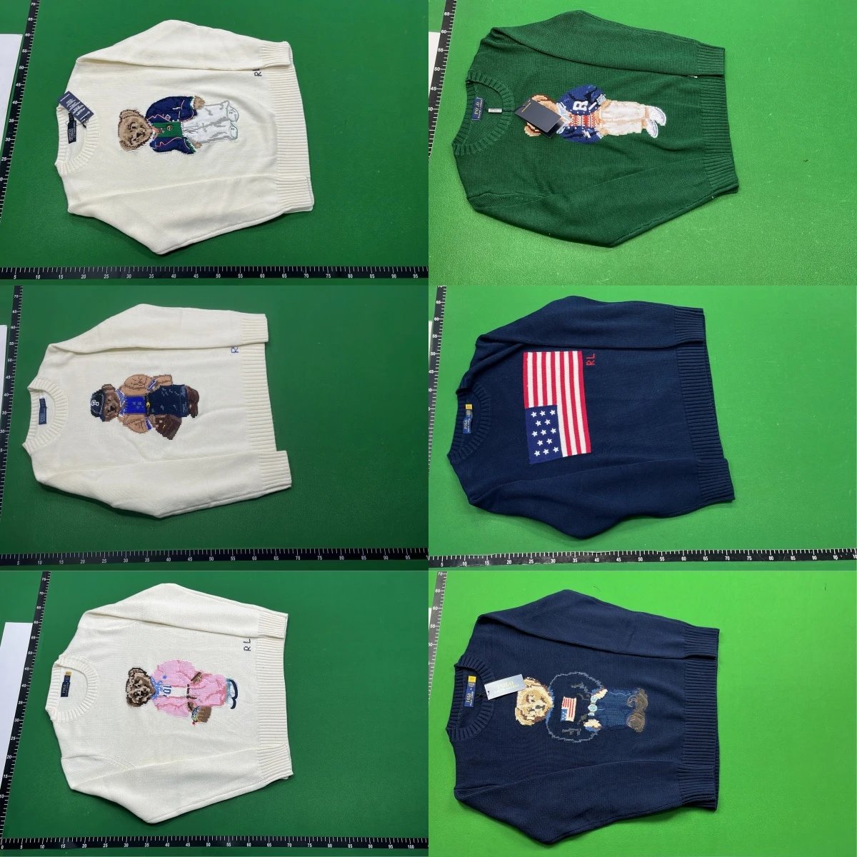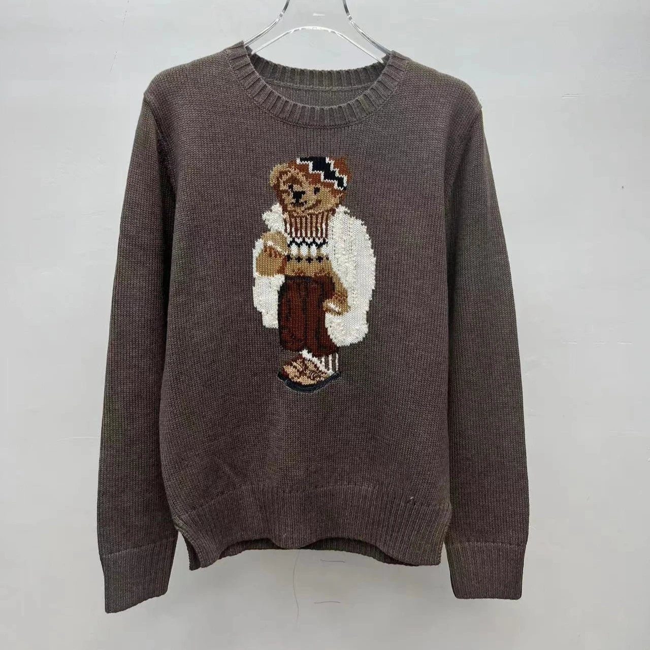 Classic Polo Ralph Lauren knit sweater featuring the iconic embroidered bear wearing an American flag patch. Available in multiple colors for timeless style.