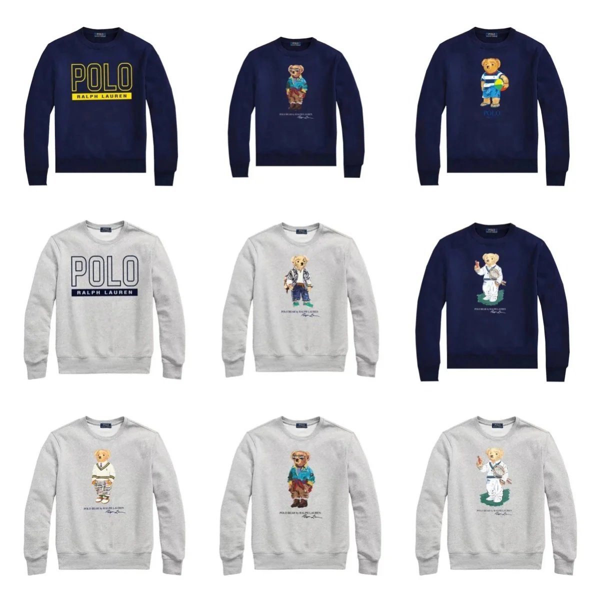 Shop the iconic Polo Ralph Lauren bear sweatshirt collection in navy and heather gray. Featuring classic branding and playful bear graphics for casual style.