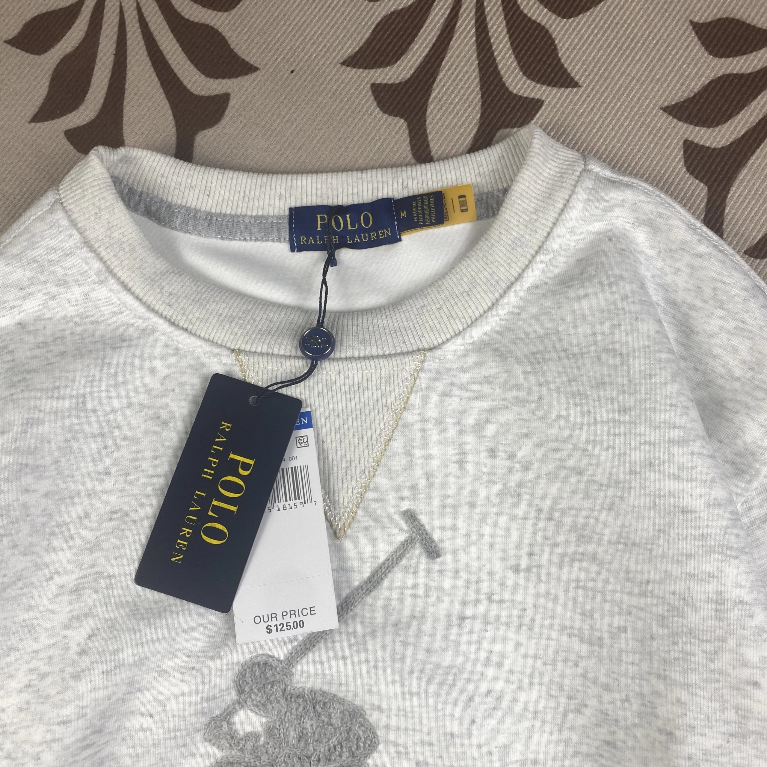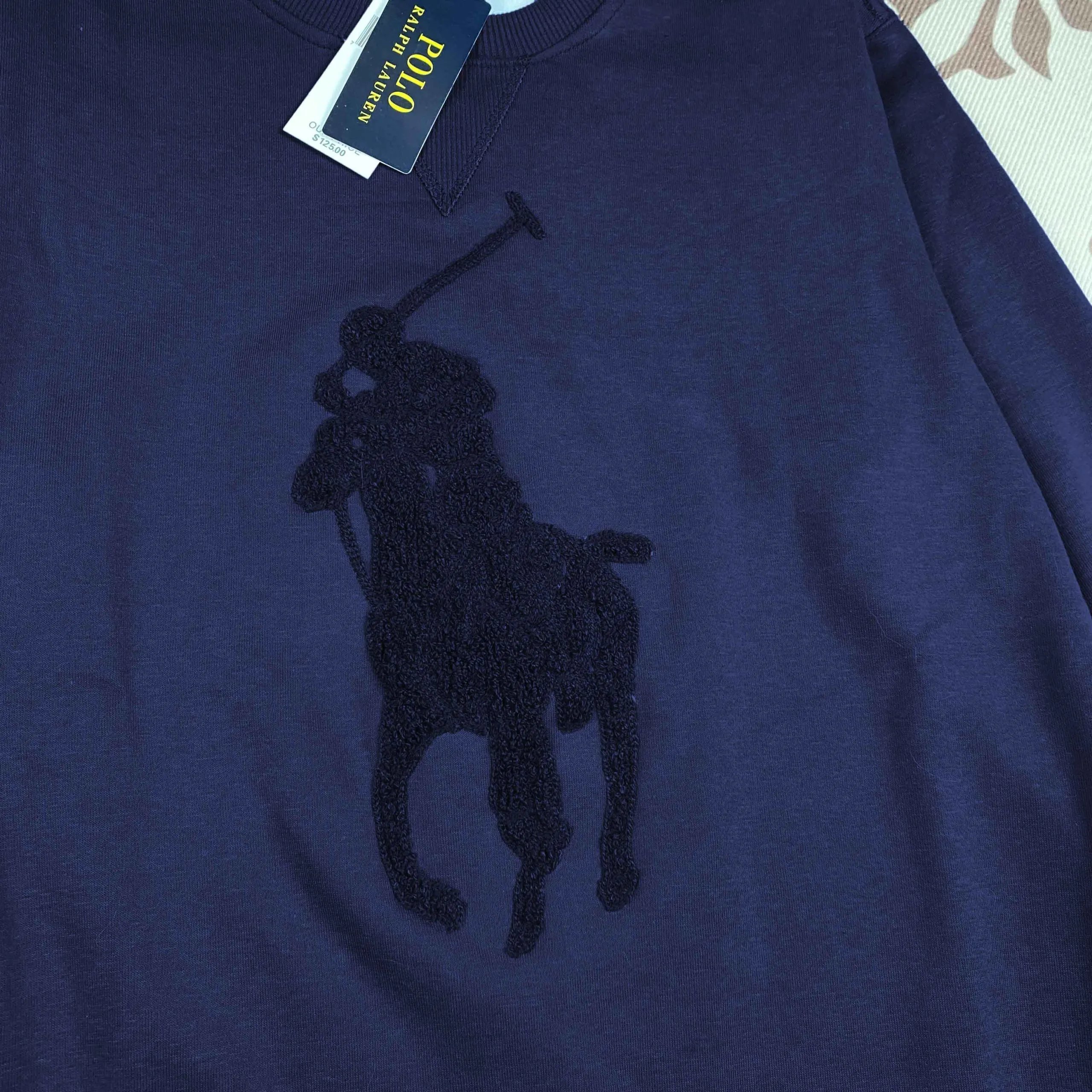 Polo Ralph Lauren men's crewneck sweatshirt featuring the iconic oversized embroidered pony logo in heather gray and navy.