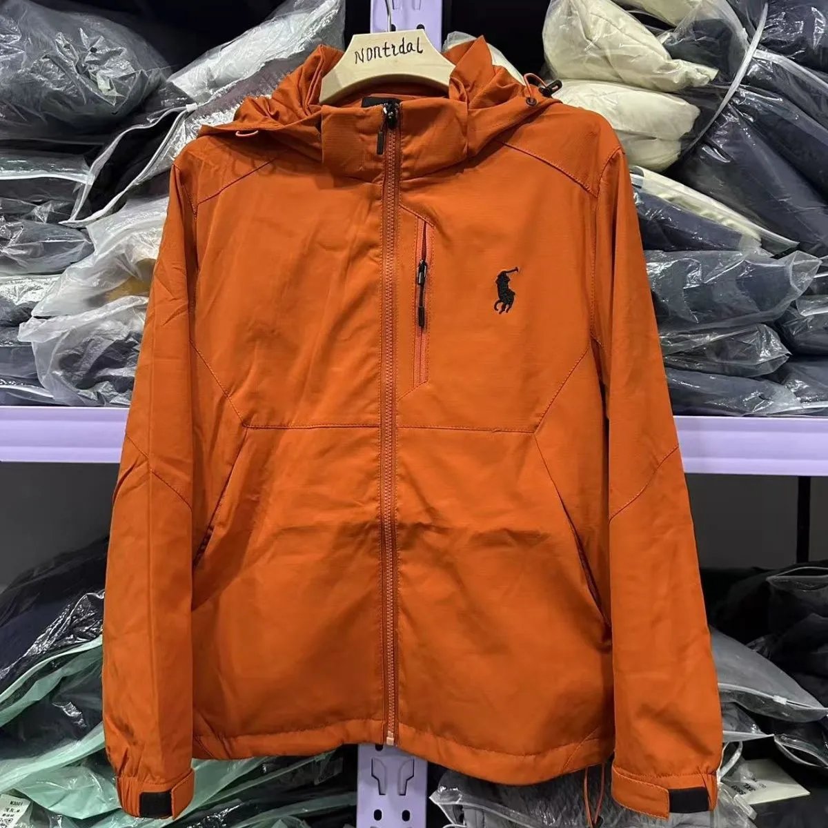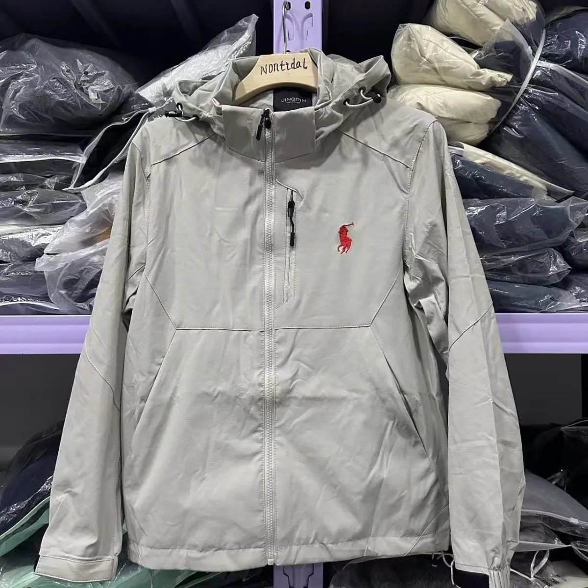 Stylish black hooded jacket by Polo Ralph Lauren featuring the iconic red pony logo. Perfect for everyday wear with a sleek, functional design.