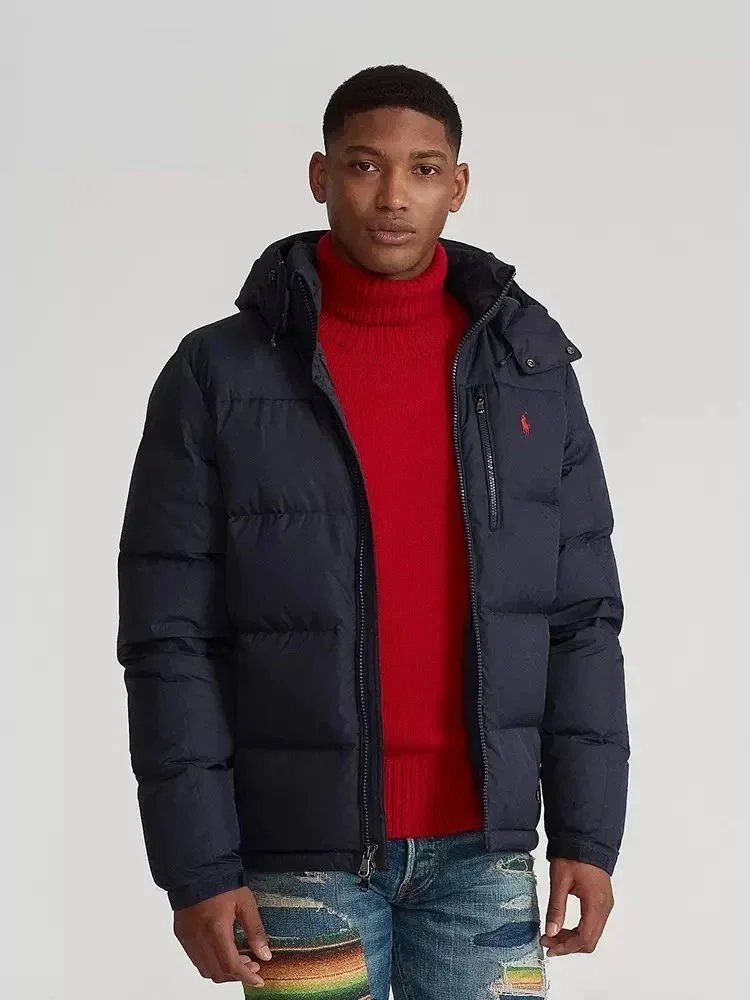 Stylish and warm, this Polo Ralph Lauren black puffer jacket features a hood and quilted design for ultimate comfort in cold weather.