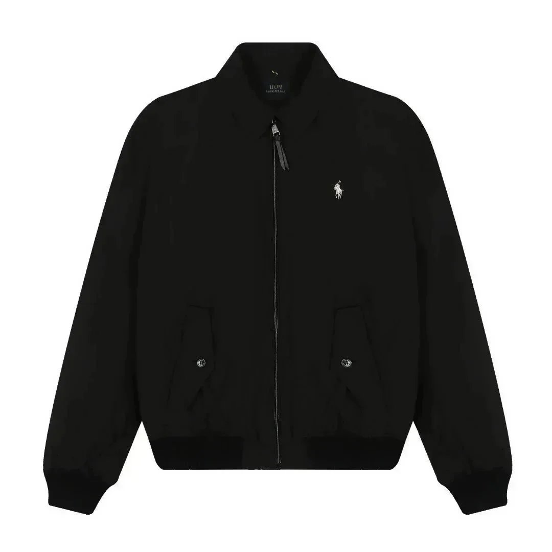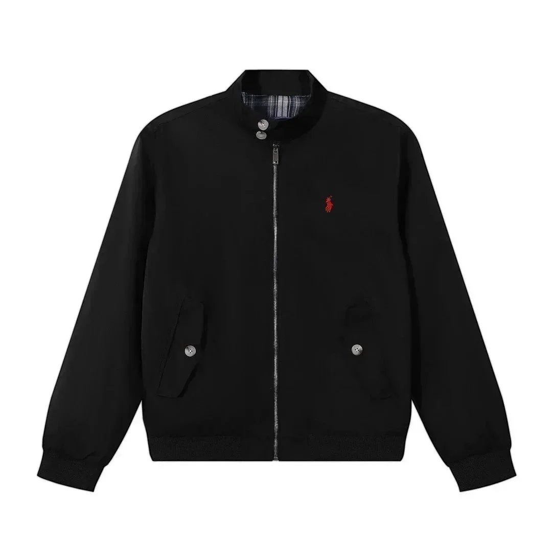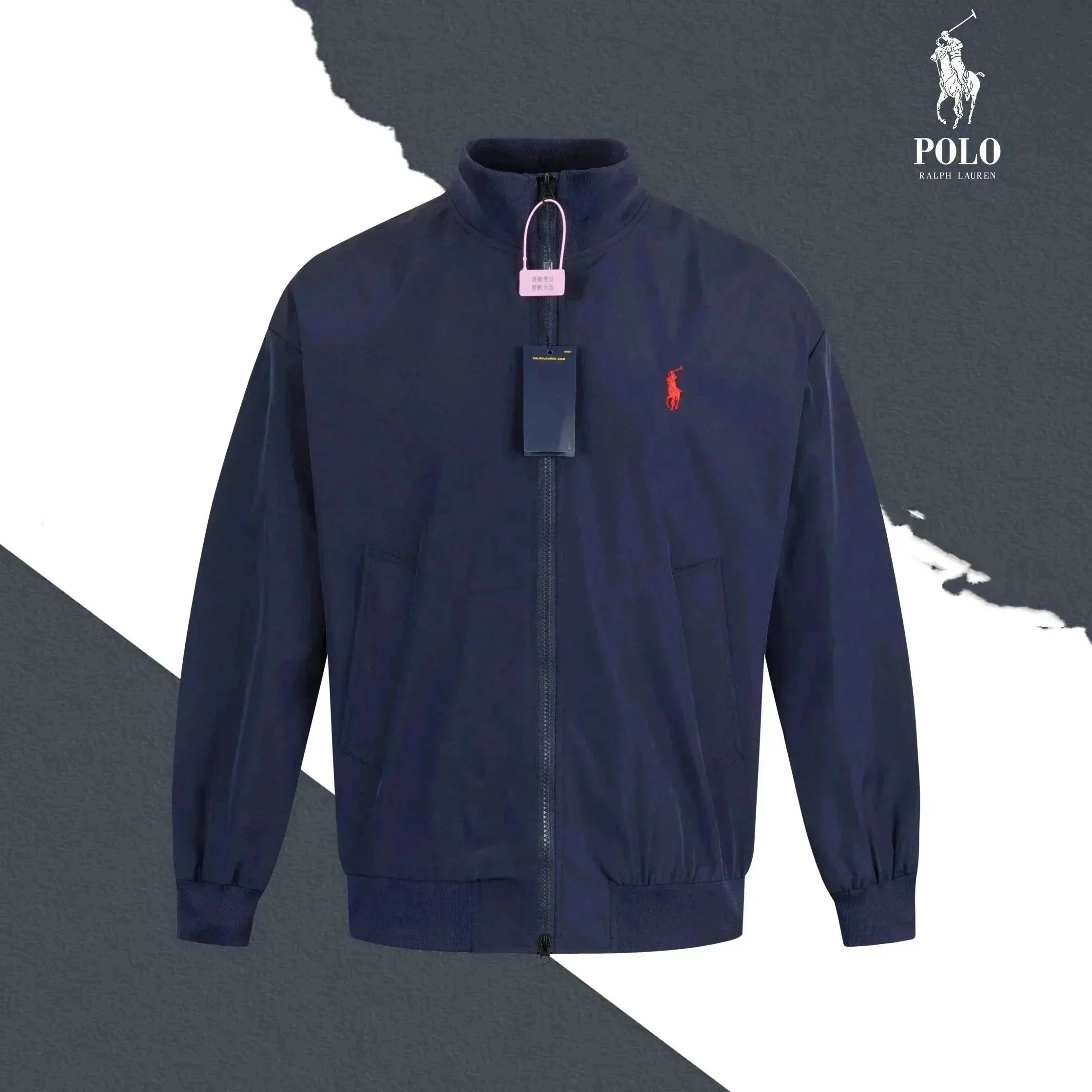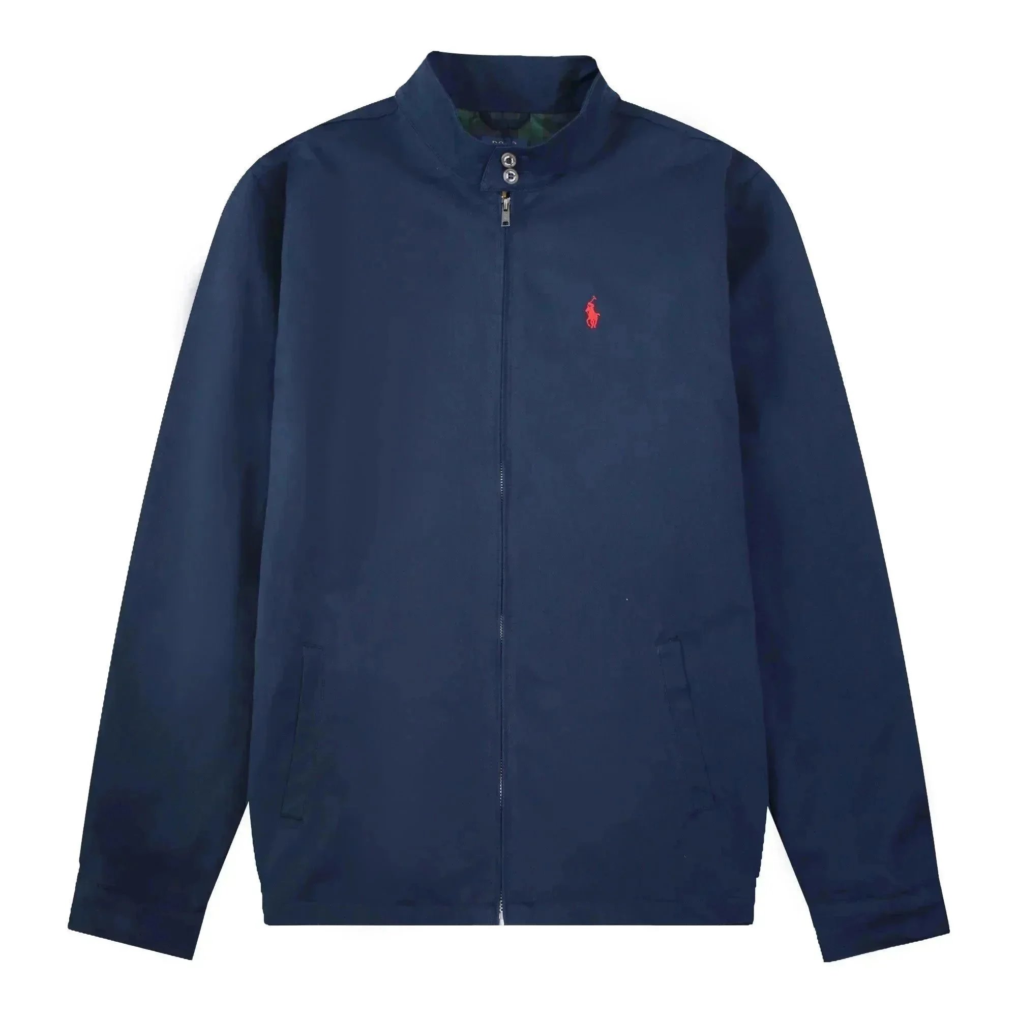 Classic Polo Ralph Lauren bomber jacket in navy blue with iconic red pony logo. Features a zip-up front, ribbed cuffs, and a timeless design perfect for casual wear.