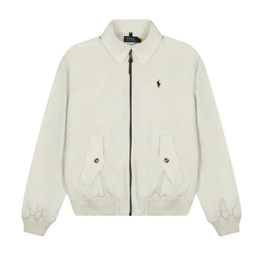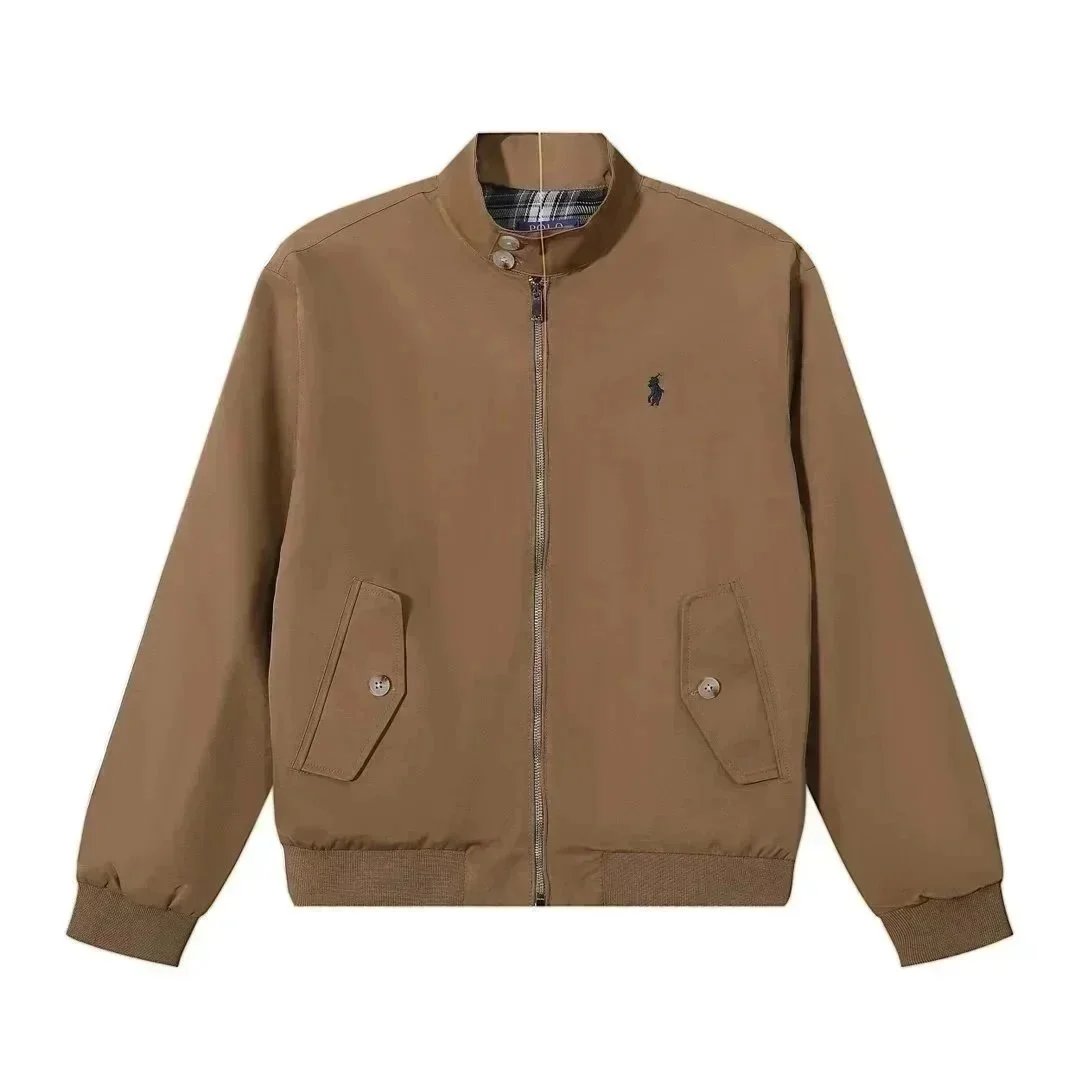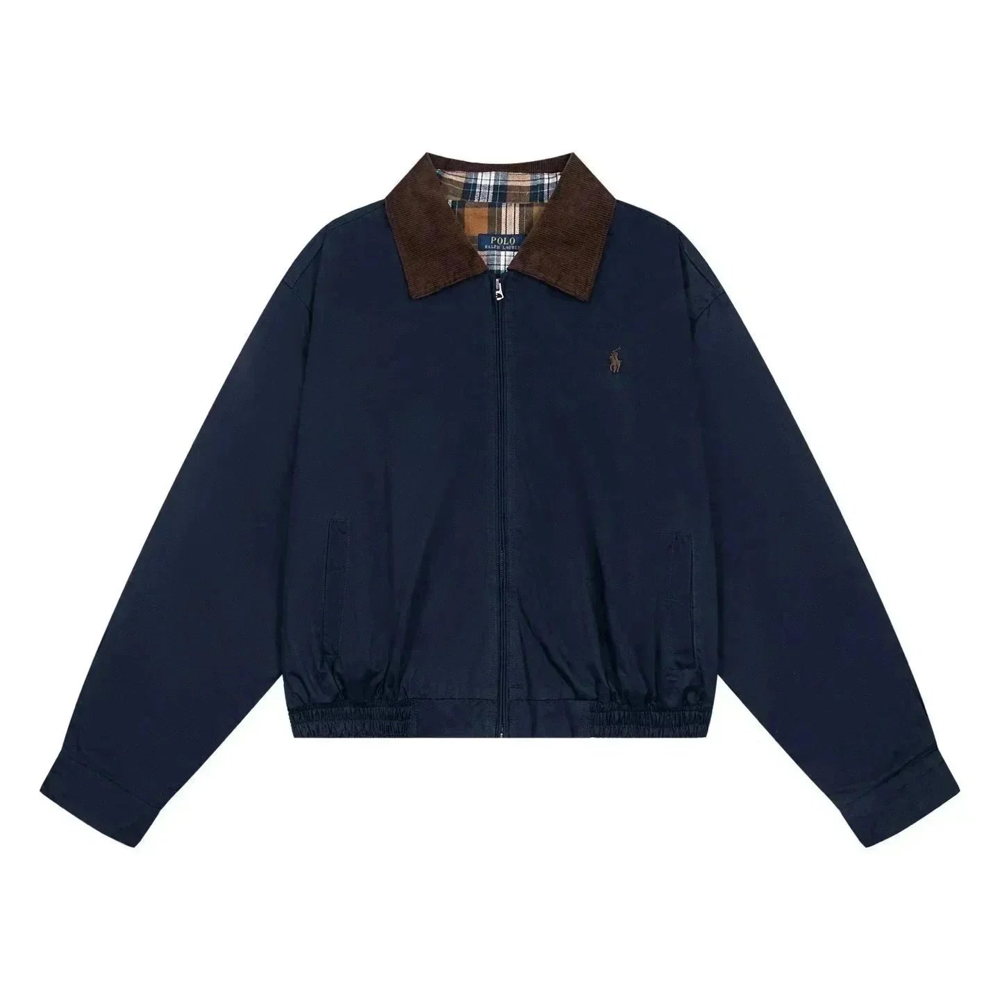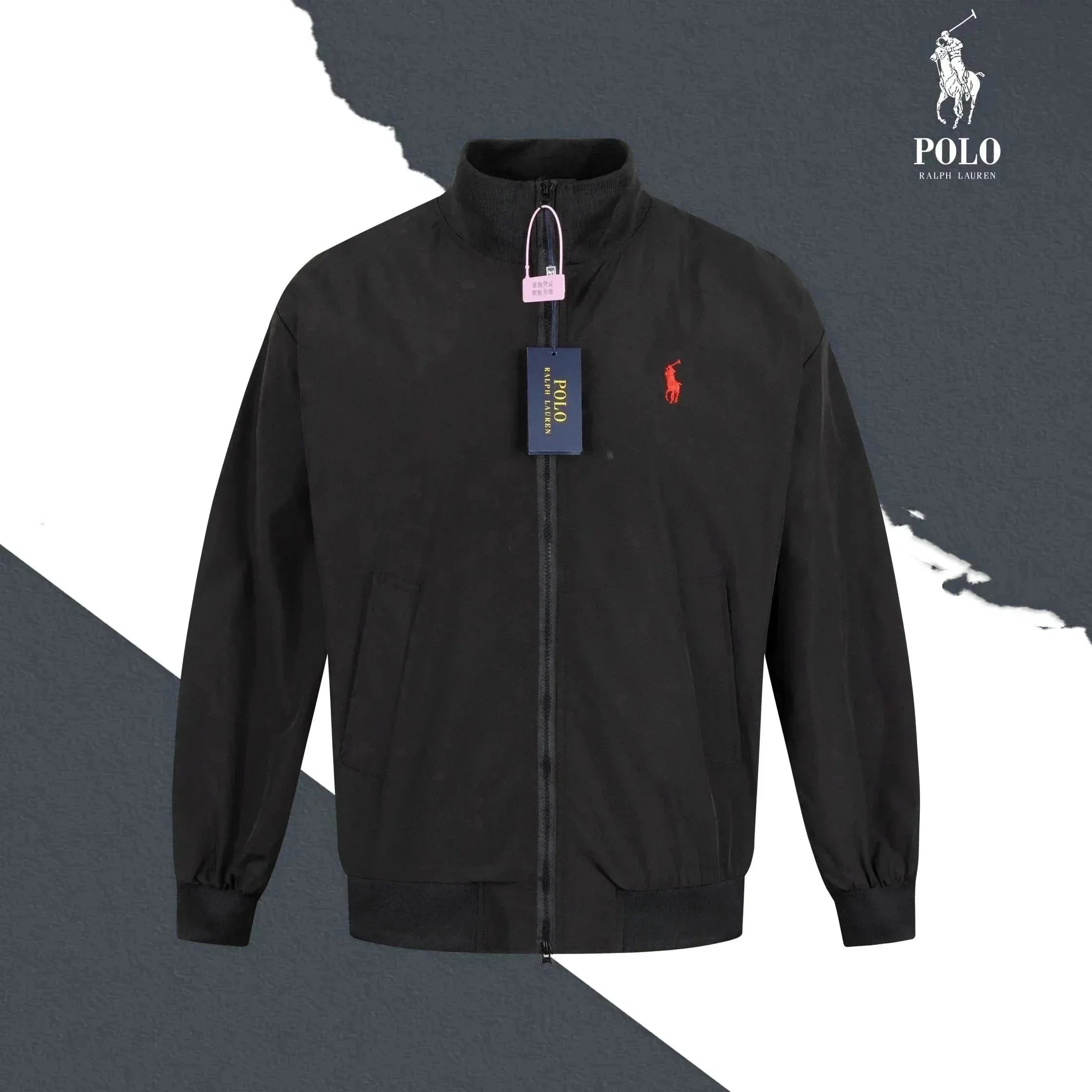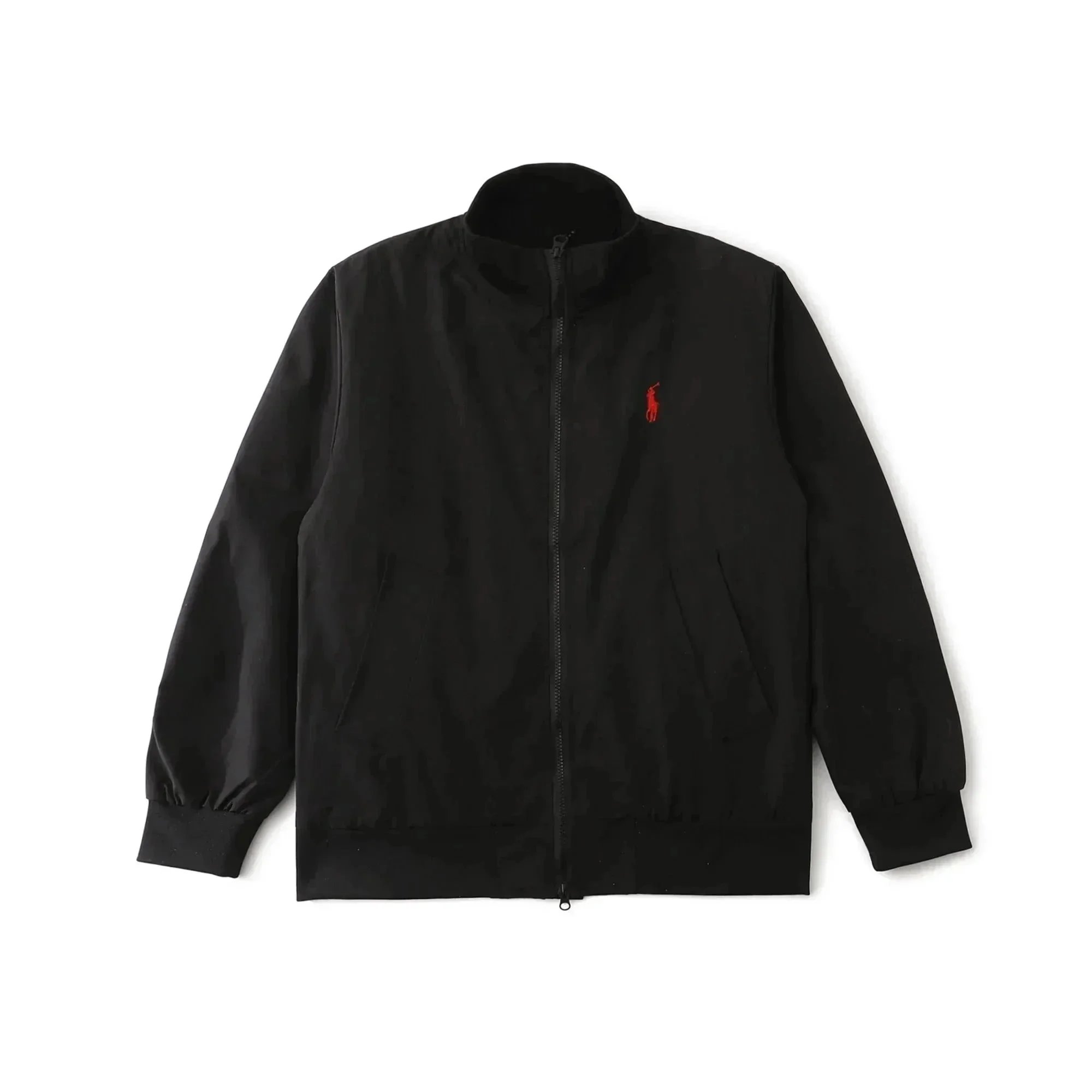 Classic Polo Ralph Lauren bomber jacket in navy blue with iconic red pony logo. Features a zip-up front, ribbed cuffs, and a timeless design perfect for casual wear.