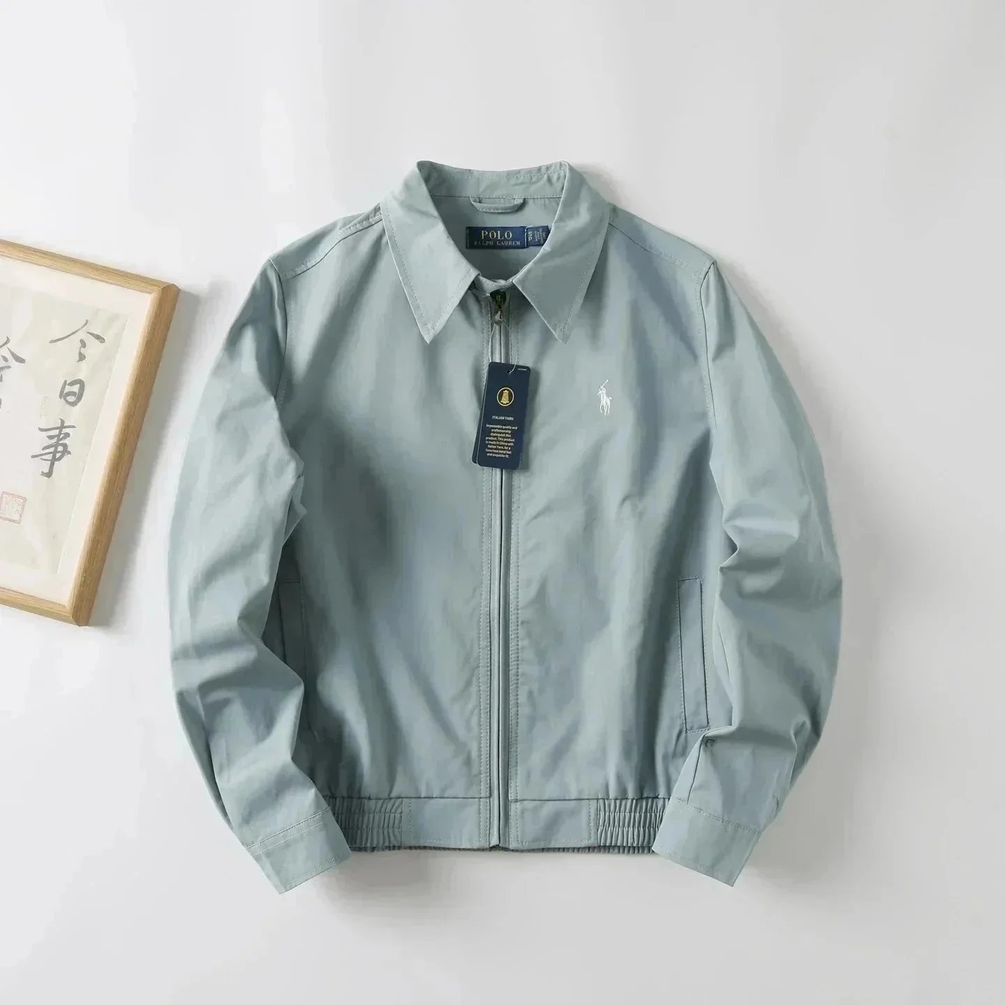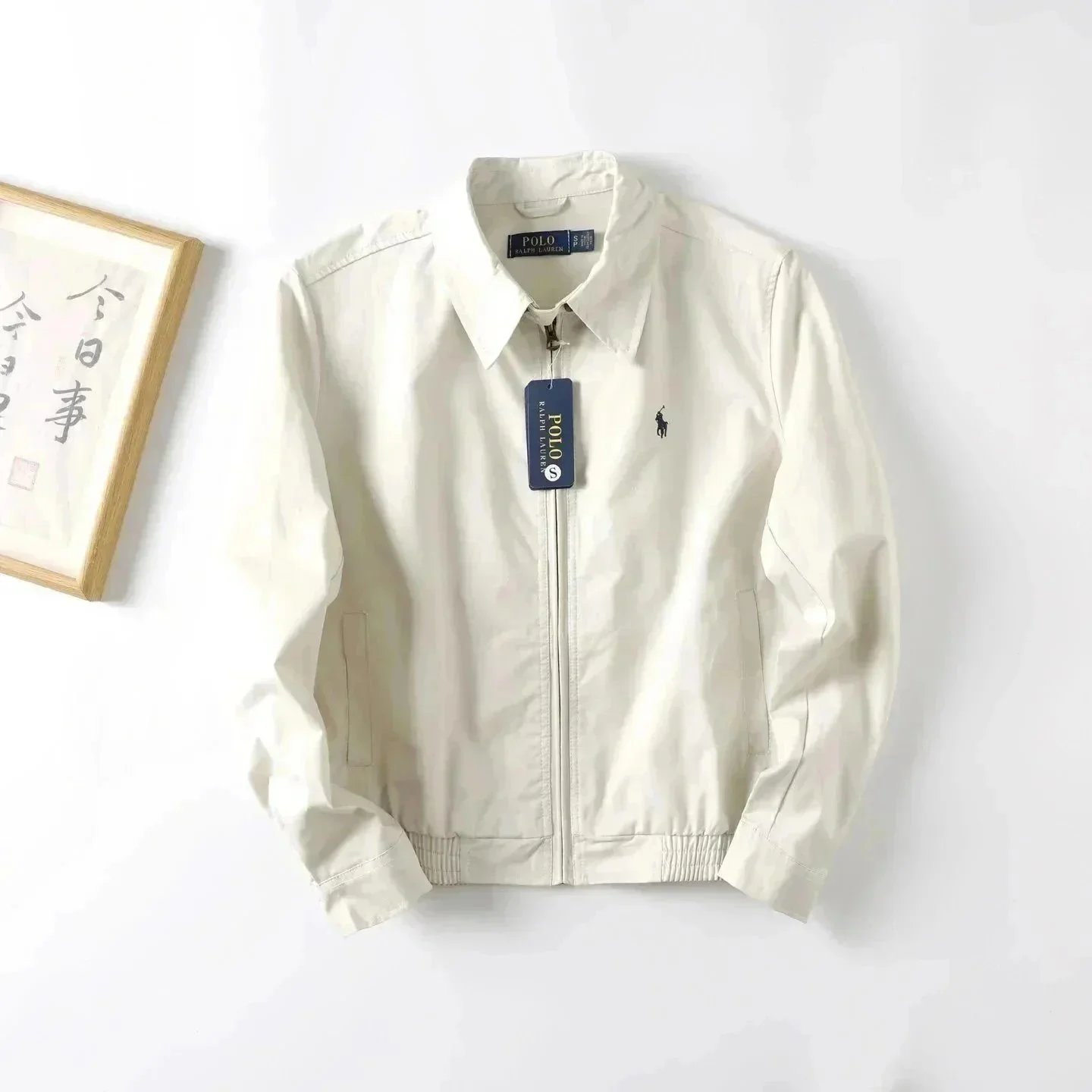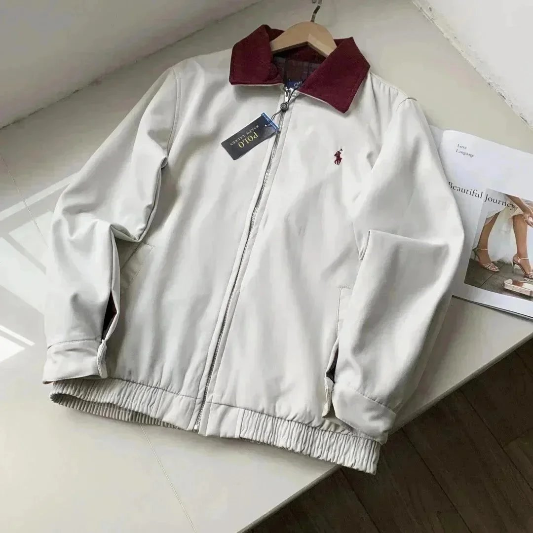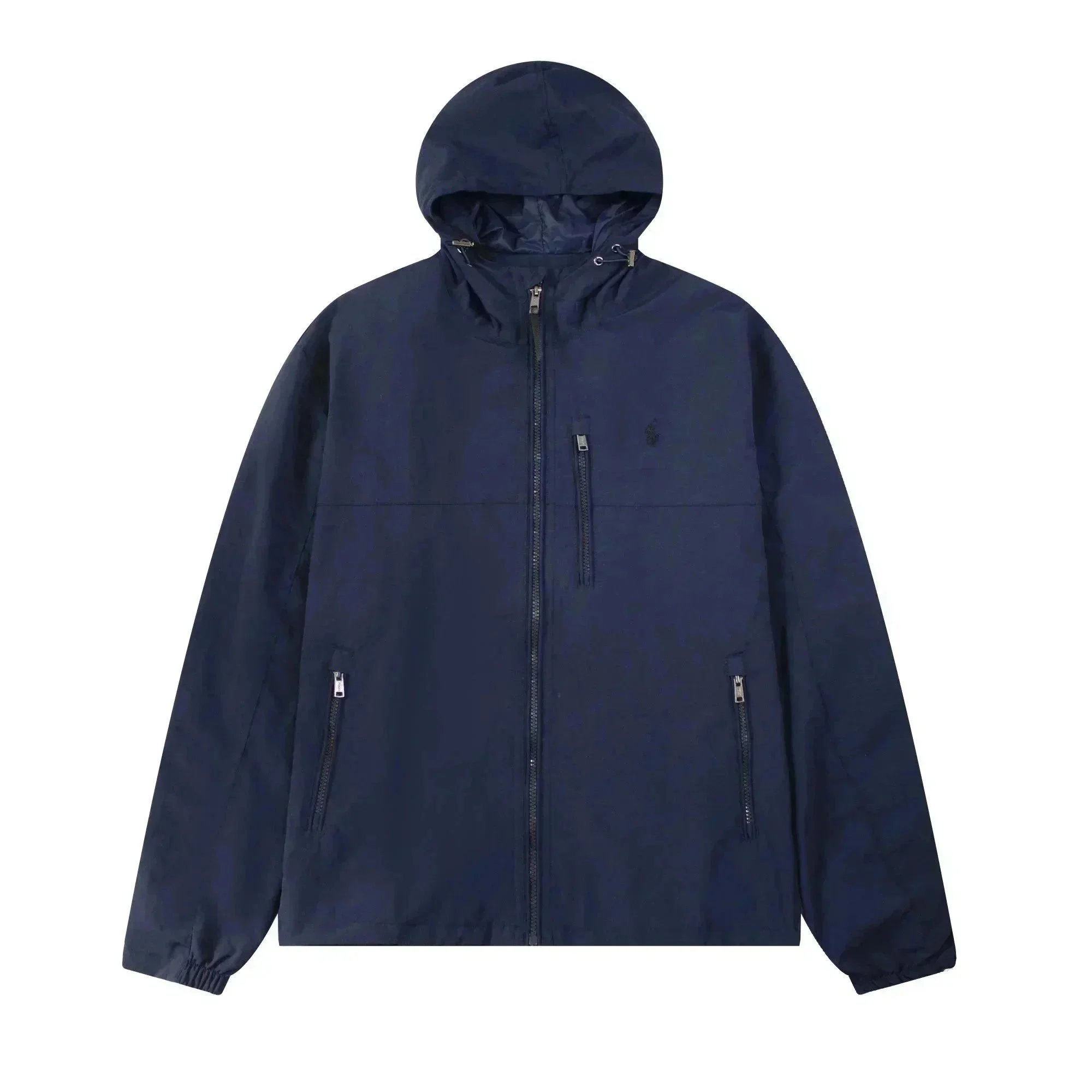 Classic Polo Ralph Lauren bomber jacket in navy blue with iconic red pony logo. Features a zip-up front, ribbed cuffs, and a timeless design perfect for casual wear.