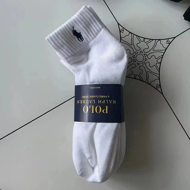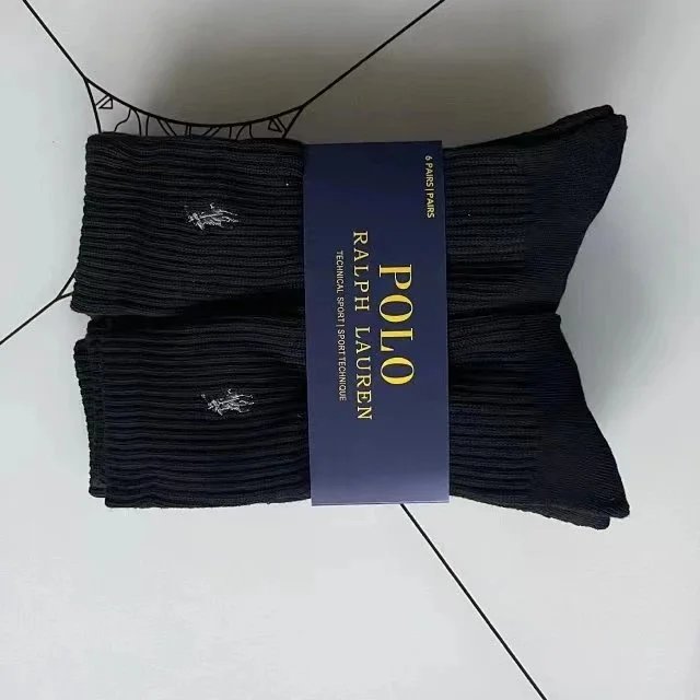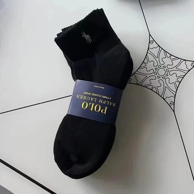 Premium Polo Ralph Lauren Classic Sport socks in black and white, featuring the iconic polo player logo. Made for comfort and style with a durable cotton blend.