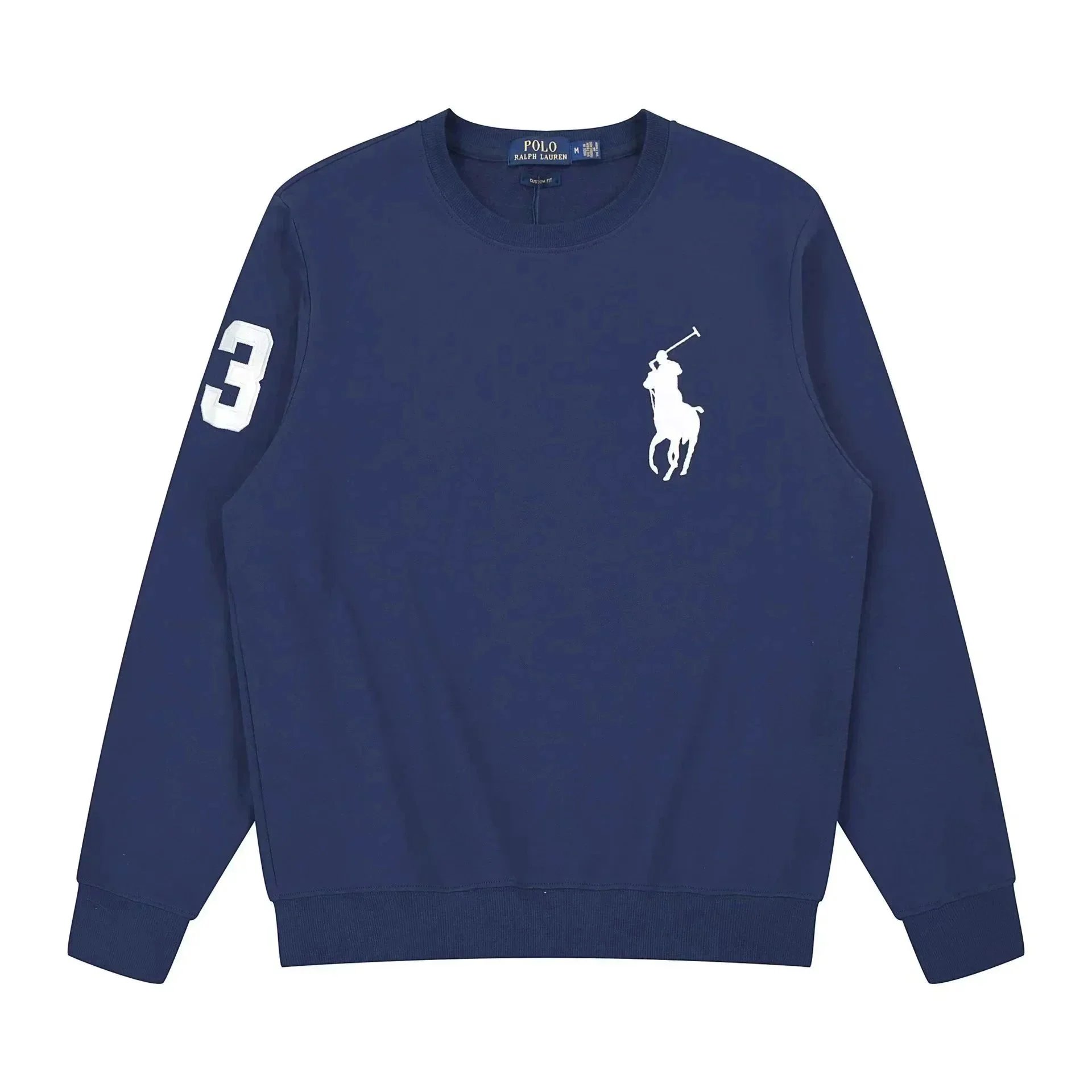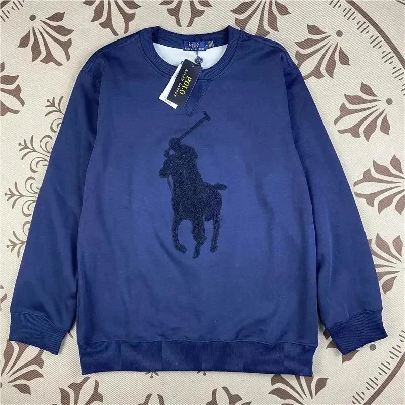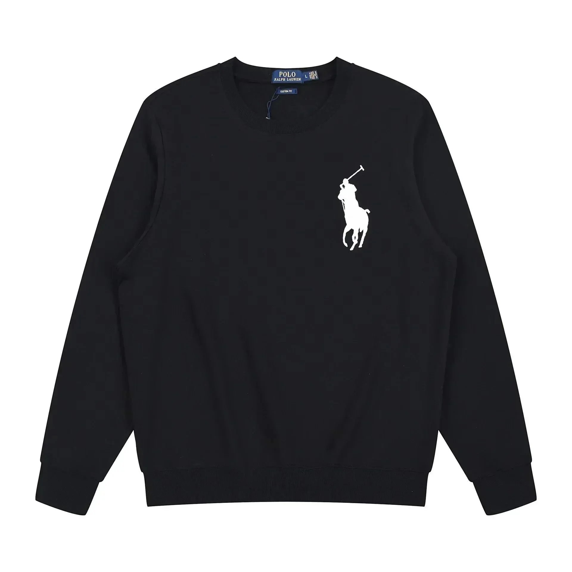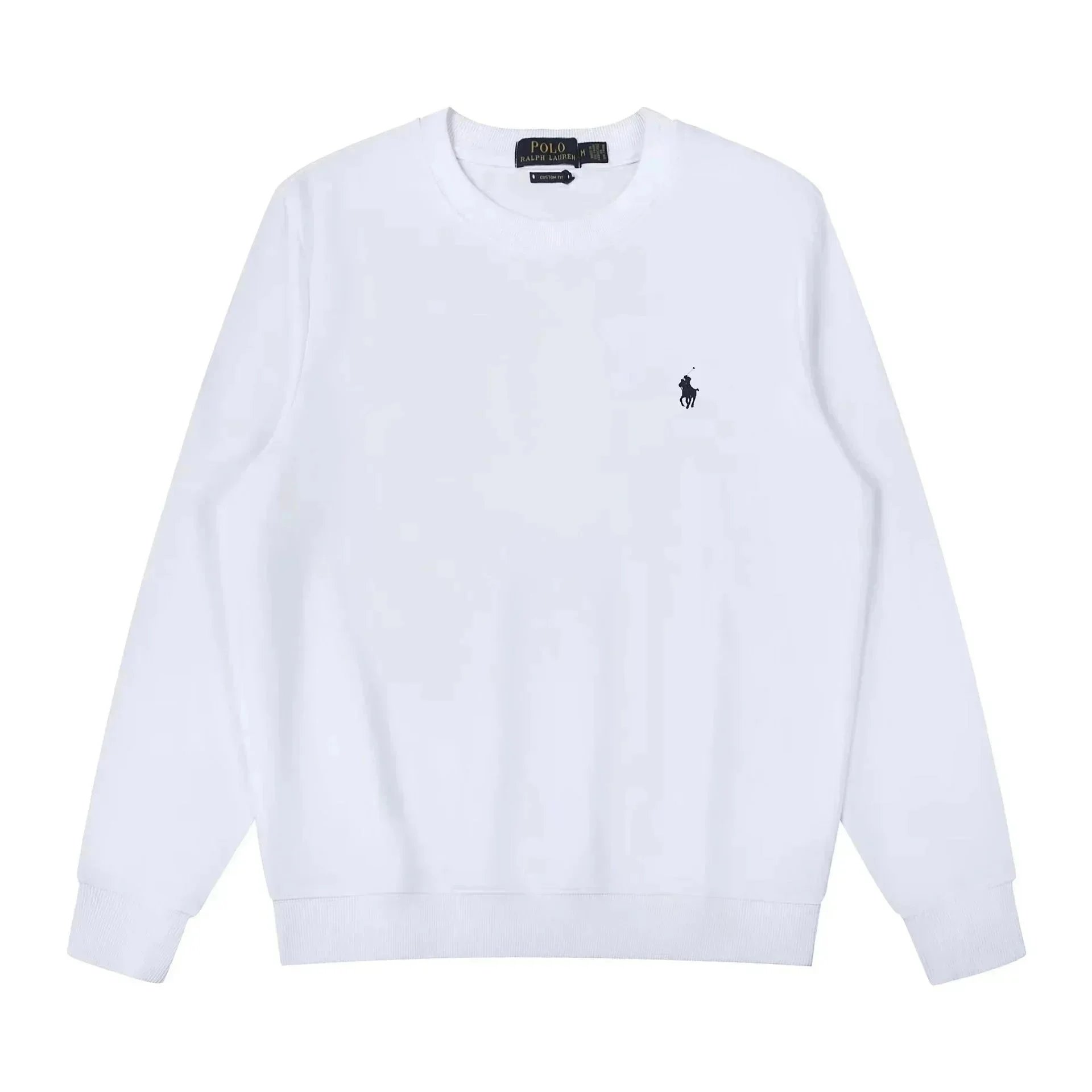 Classic white crewneck sweatshirt by Polo Ralph Lauren featuring the iconic black pony logo. Perfect for casual everyday wear with premium comfort.