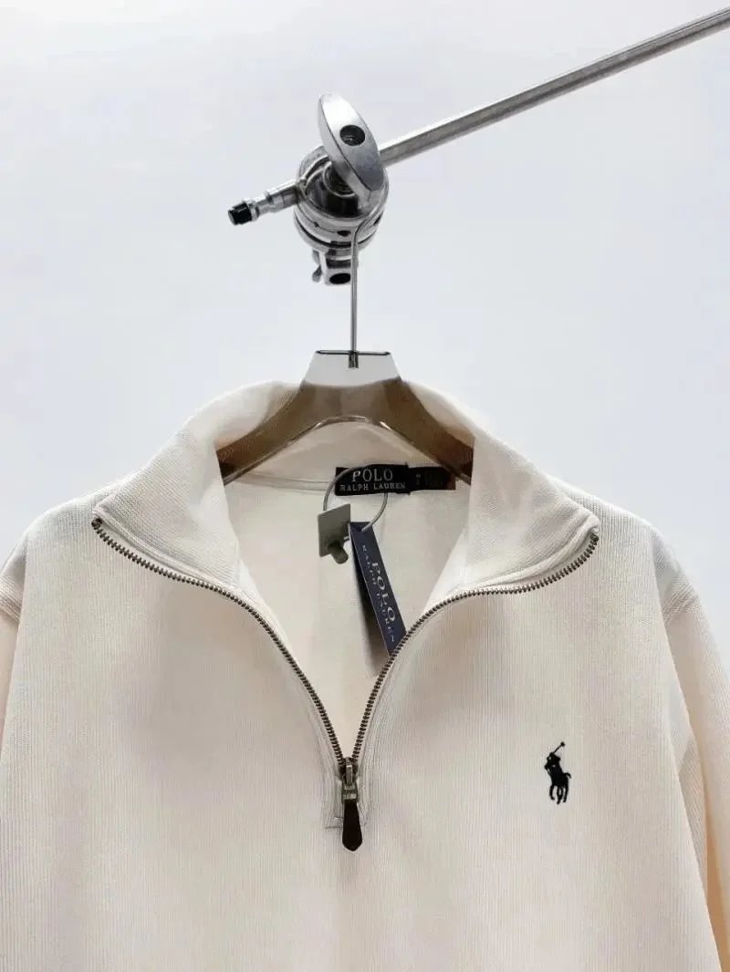 Classic Polo Ralph Lauren half-zip sweater in soft beige with signature embroidered pony logo. Perfect for casual layering and everyday comfort.