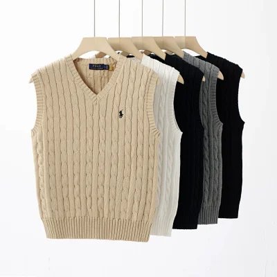 Classic Polo Ralph Lauren V-neck sweater vests in multiple colors, featuring the iconic embroidered pony logo and a comfortable knit design for versatile layering.