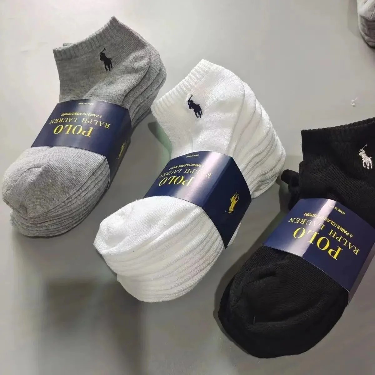 Premium white ribbed crew socks by Polo Ralph Lauren featuring the iconic black pony logo. Perfect for everyday wear and athletic use, these comfortable cotton socks offer style and durability.