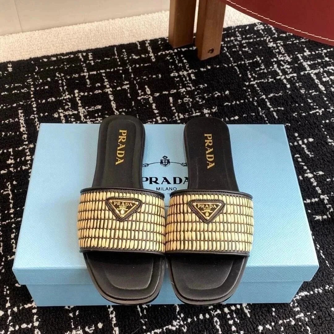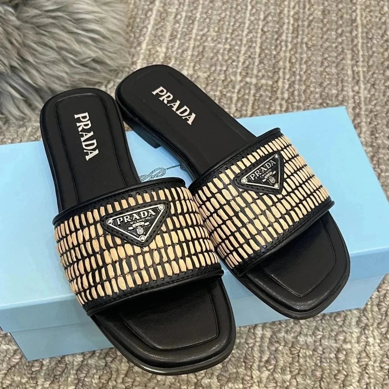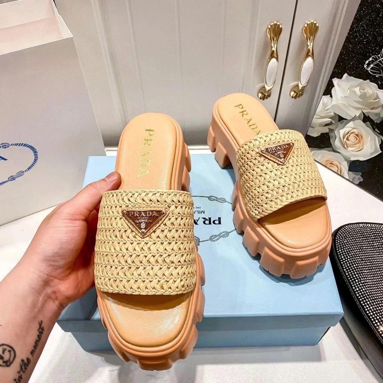 Elevate your look with Prada’s black crochet platform sandals featuring a signature triangular logo and bold lug sole for style and comfort.