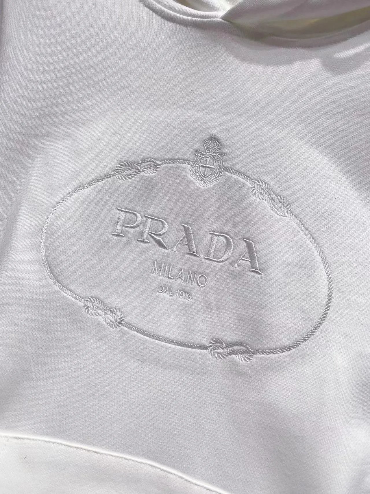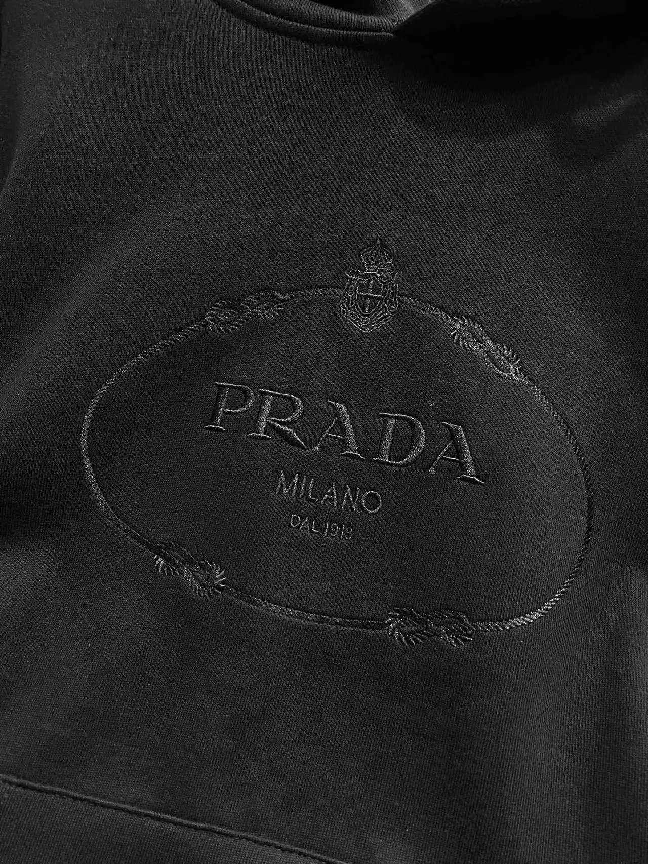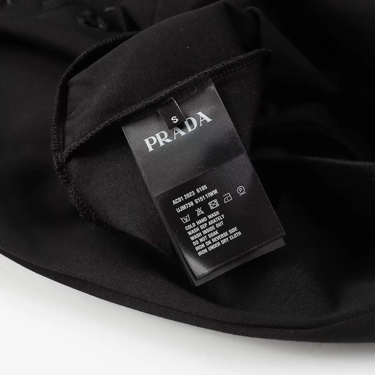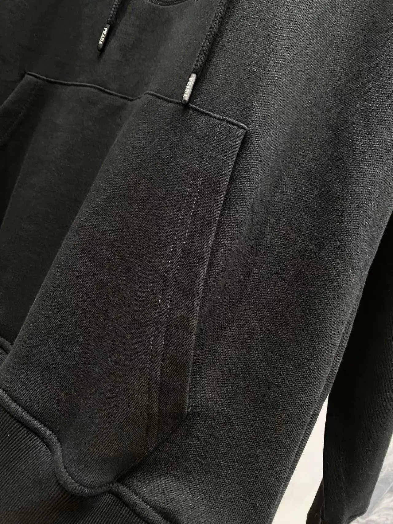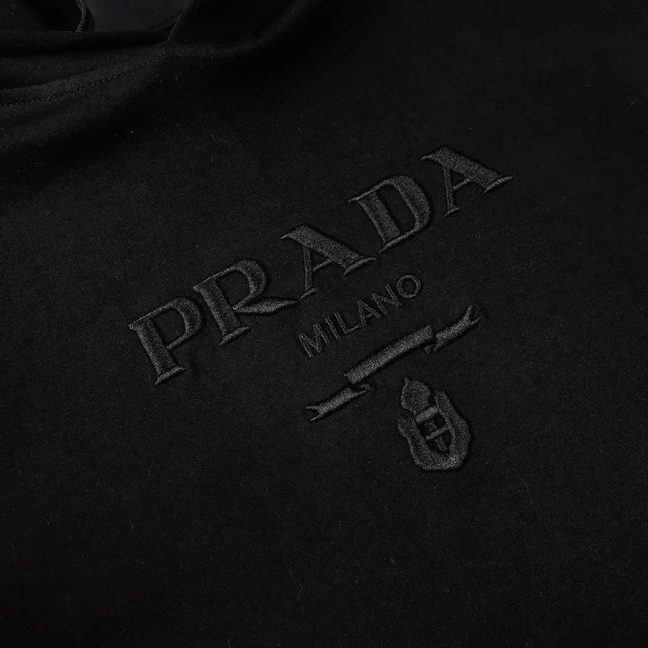 Elevate your casual wardrobe with this sleek black Prada hoodie featuring an embossed logo and premium craftsmanship.