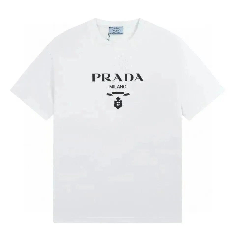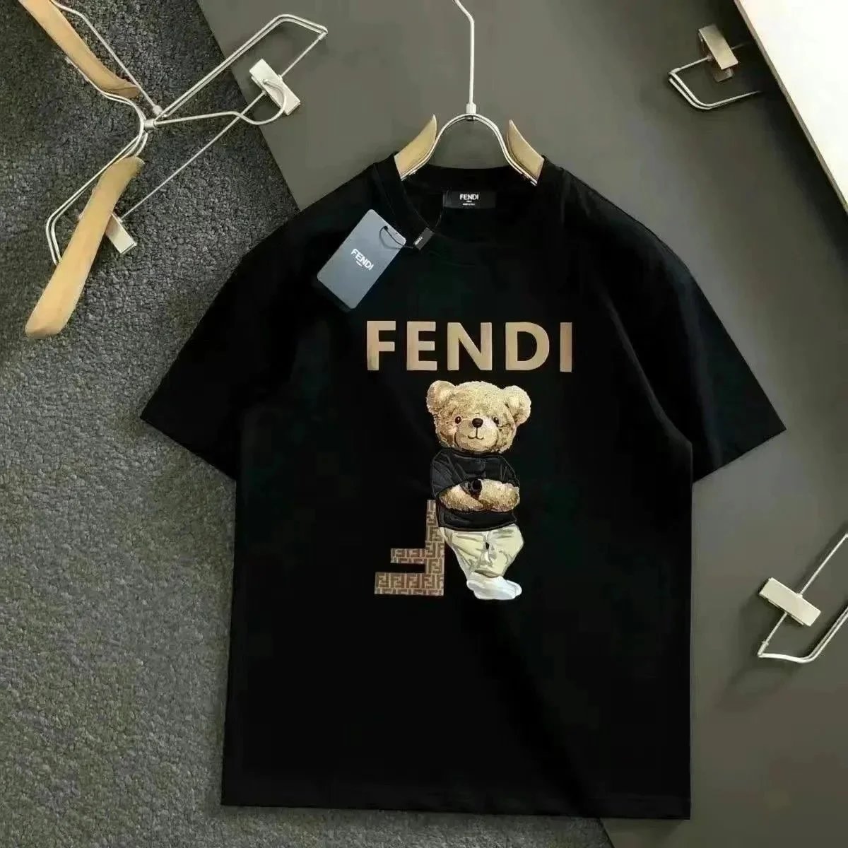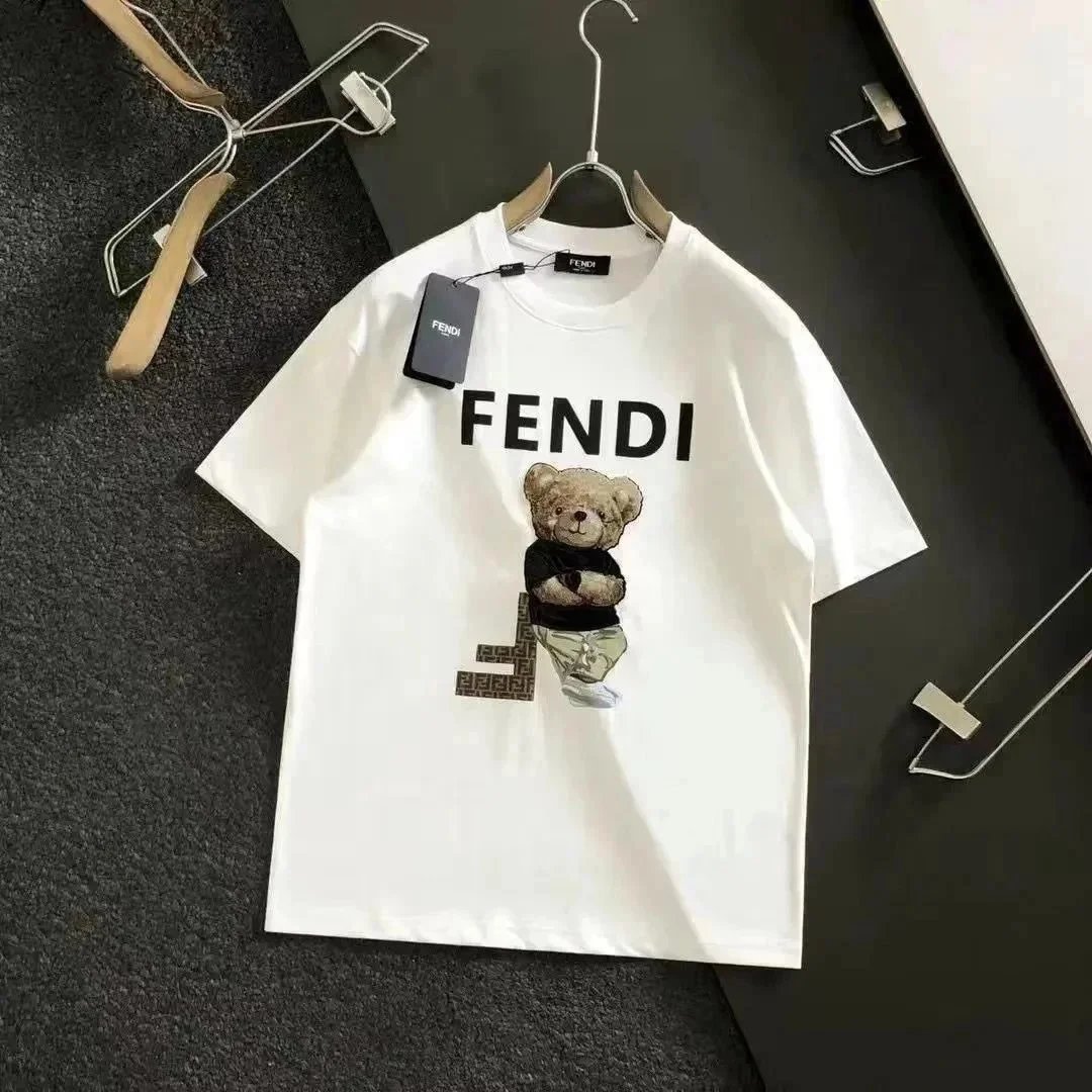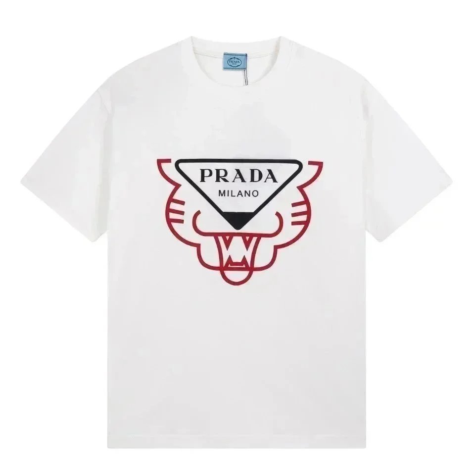 High-quality Prada and Fendi branded t-shirts featuring iconic logos, available in black and white with distinct graphic designs for everyday wear. Ideal for fans of luxury streetwear.