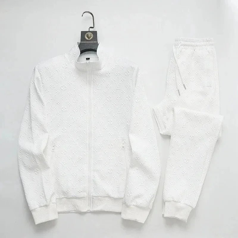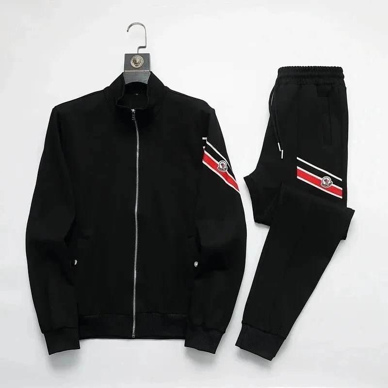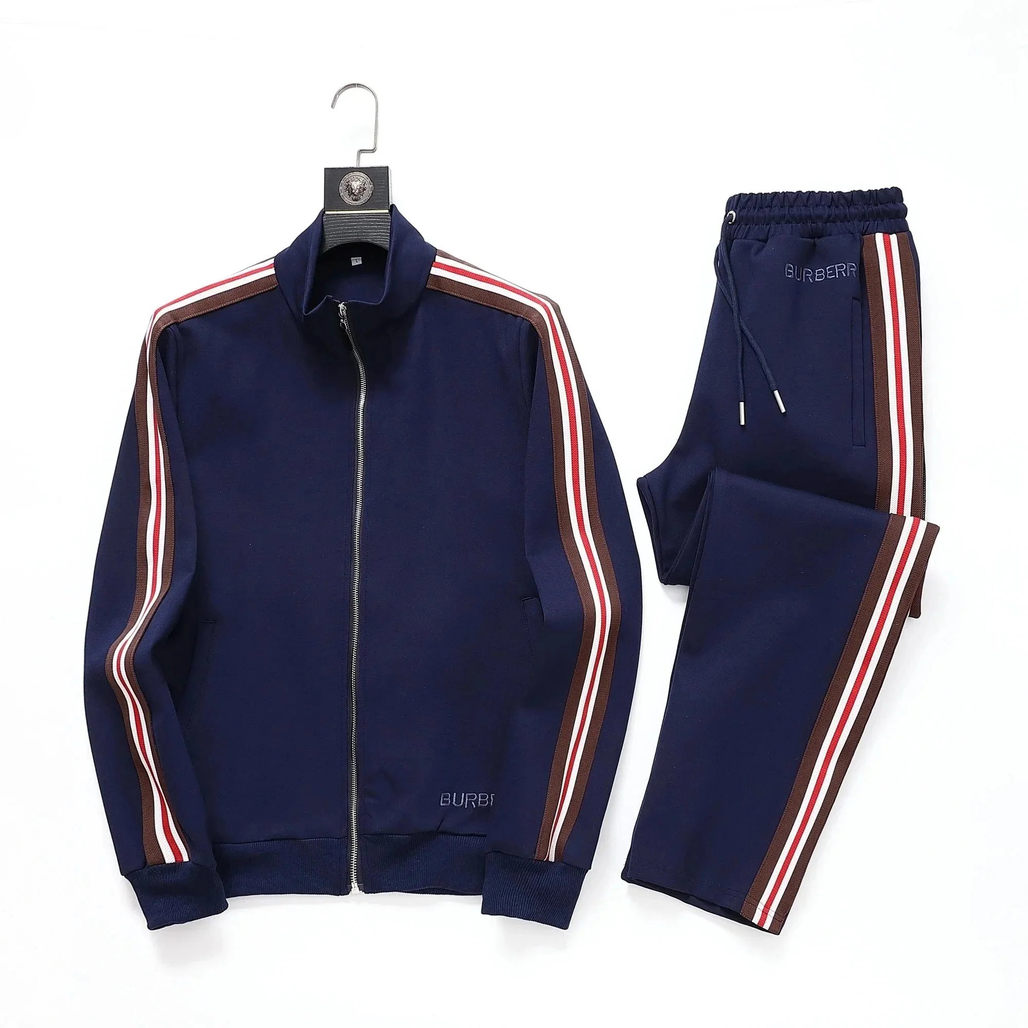 Elevate your casual look with this premium PRADA navy blue track jacket and pants set, featuring bold white stripes and iconic branding for timeless sporty elegance.