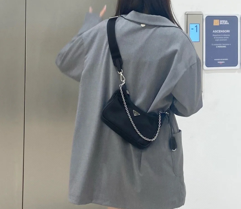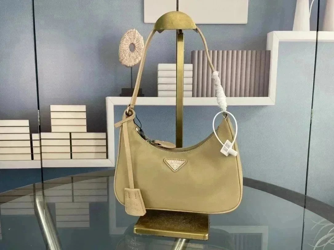 Discover the iconic Prada Re-Edition 2000 bag in a vibrant array of colors. This classic nylon shoulder bag features a silver chain strap and signature triangular logo, blending timeless style with modern flair.