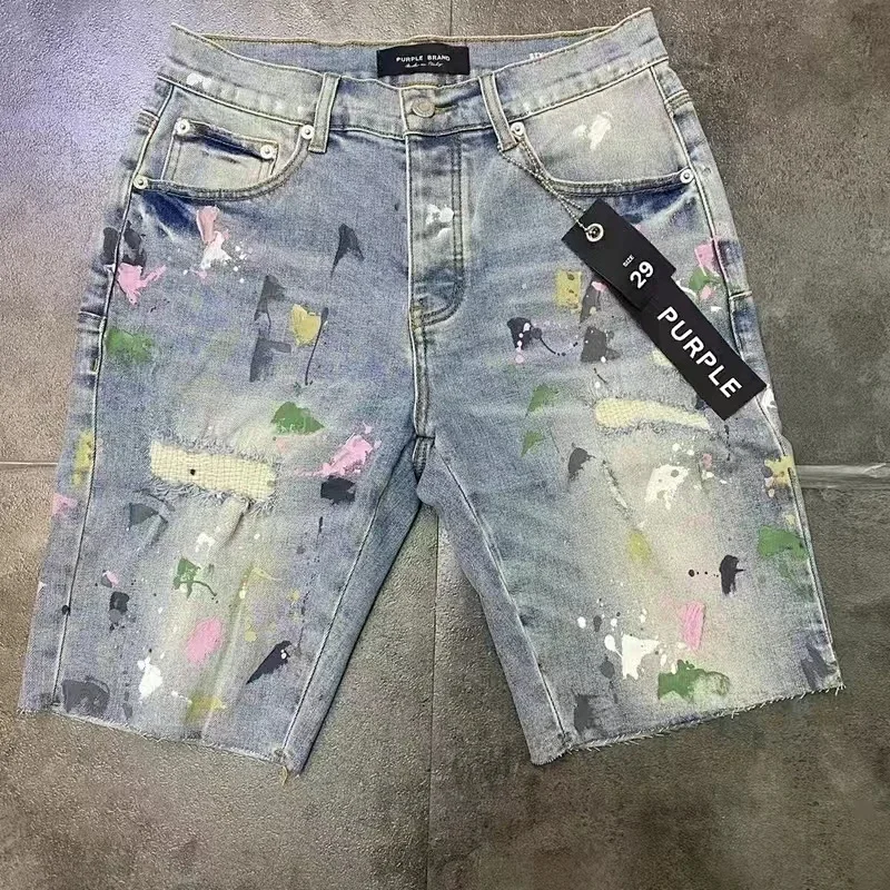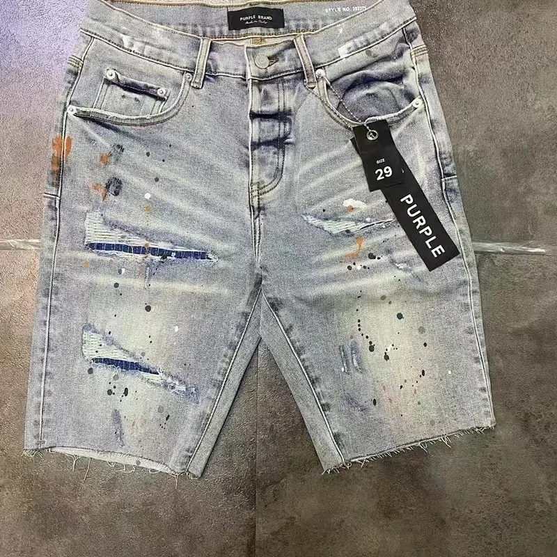 Purple Denim Jeans with Distressed & Paint Splatter Styles