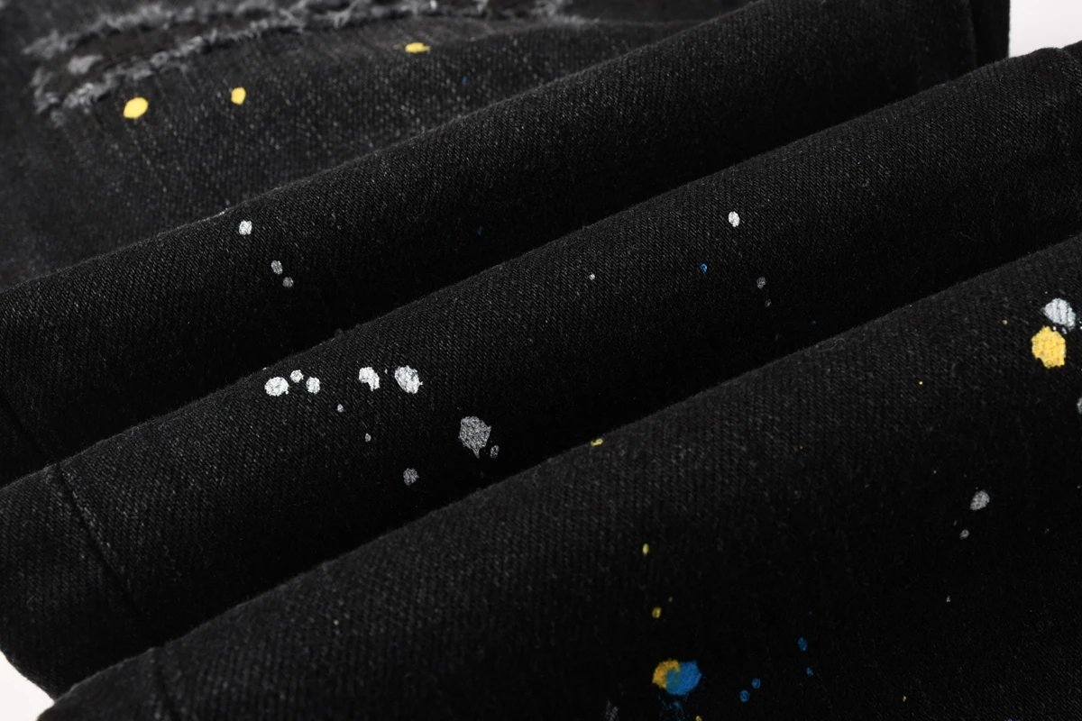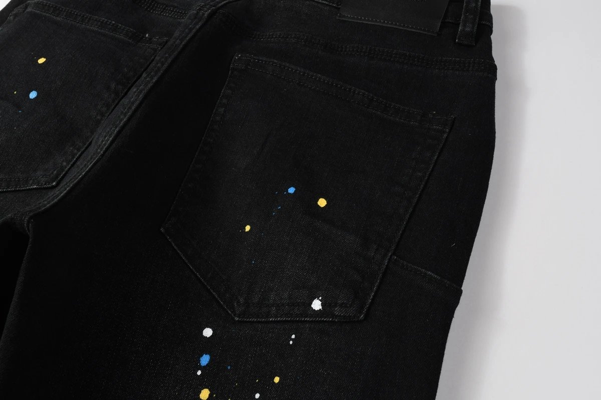 Purple Denim Jeans with Distressed & Paint Splatter Styles