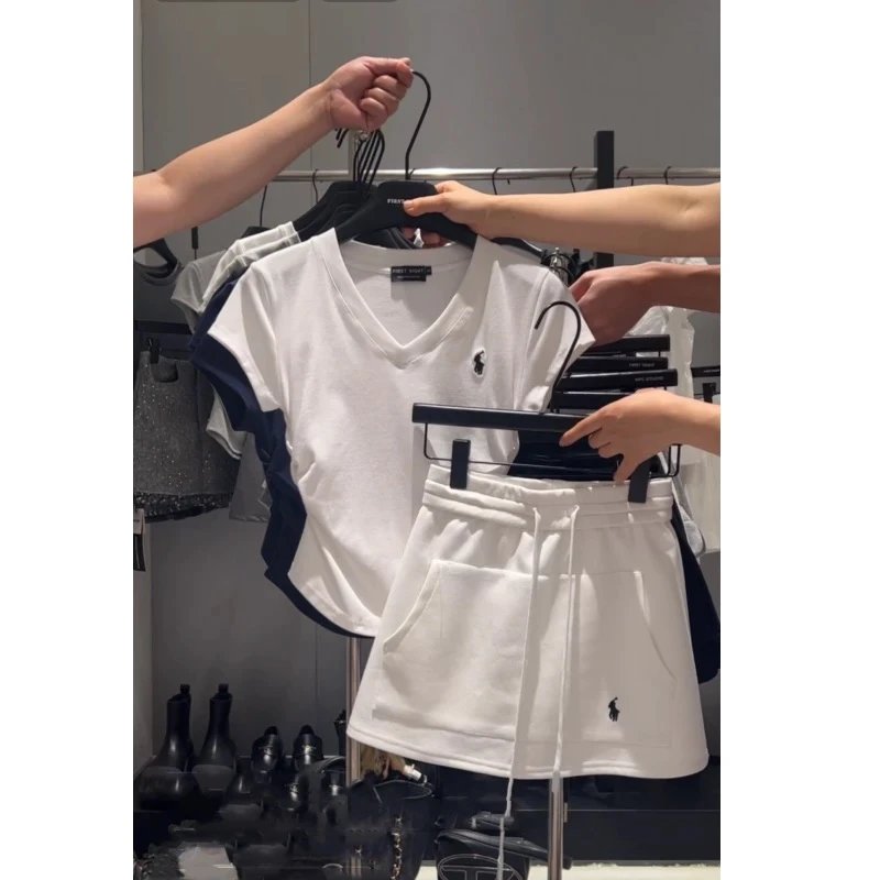This stylish Ralph Lauren set features a grey short-sleeve polo shirt with iconic pony logo and matching heather grey sweatshorts with drawstring waist. Perfect for casual or athleisure looks.