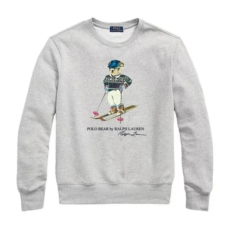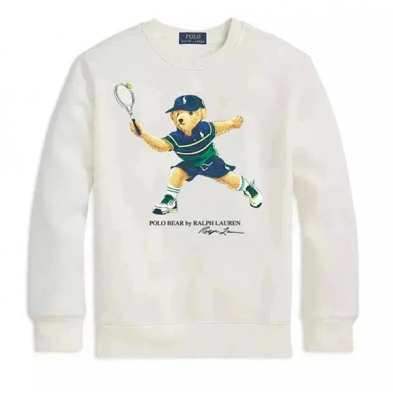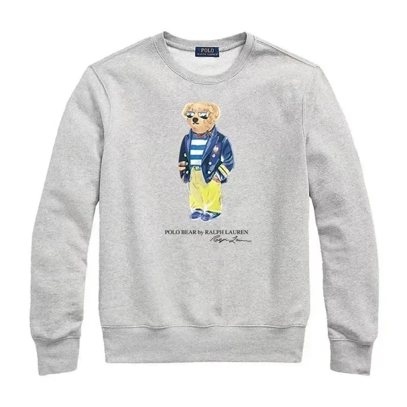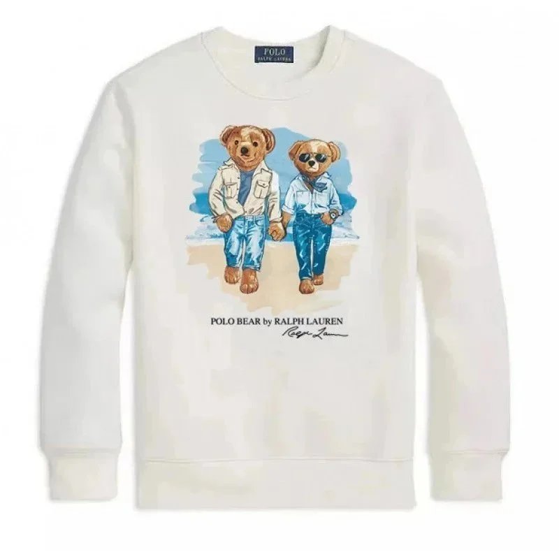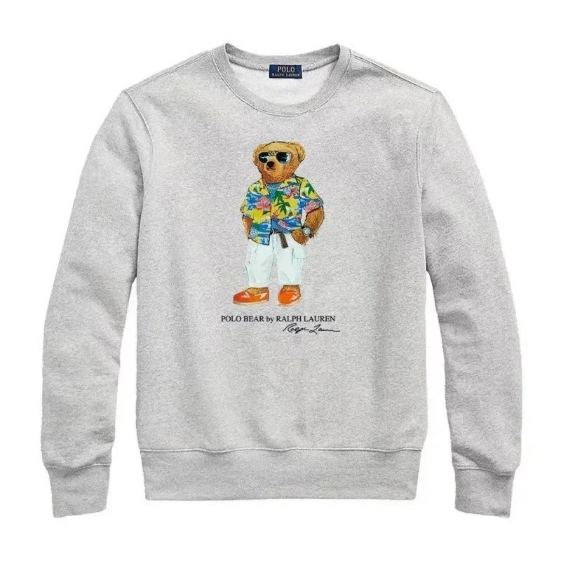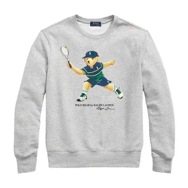 Shop iconic Polo Bear sweatshirts by Ralph Lauren featuring playful bear graphics in classic navy, heather gray, and off-white.