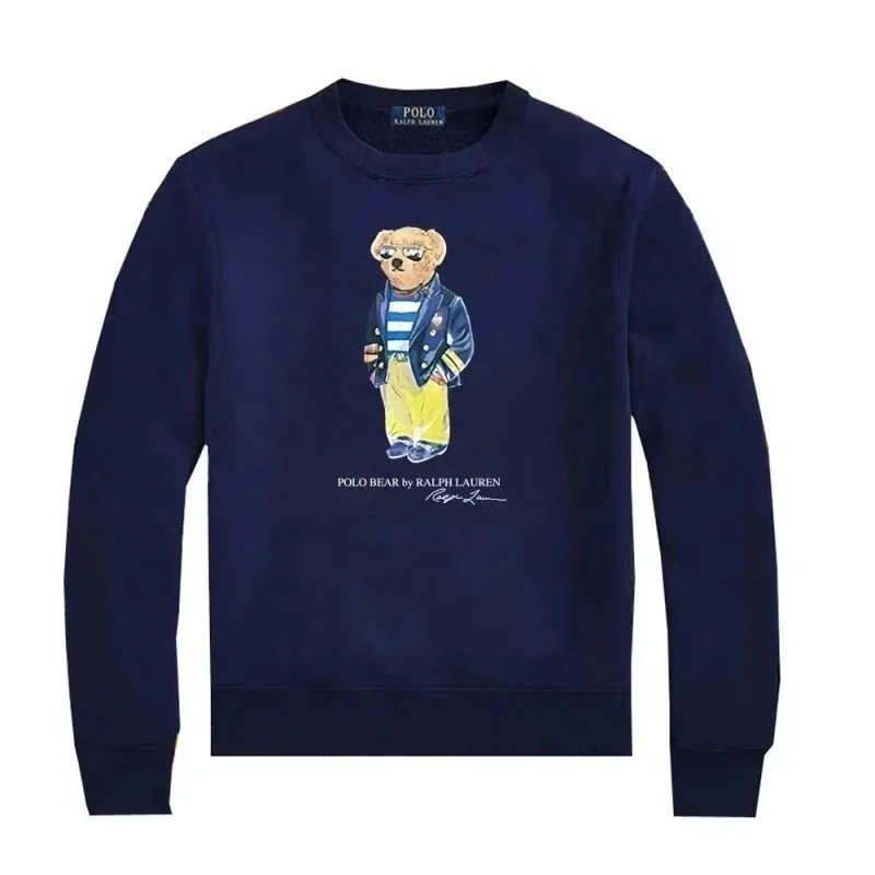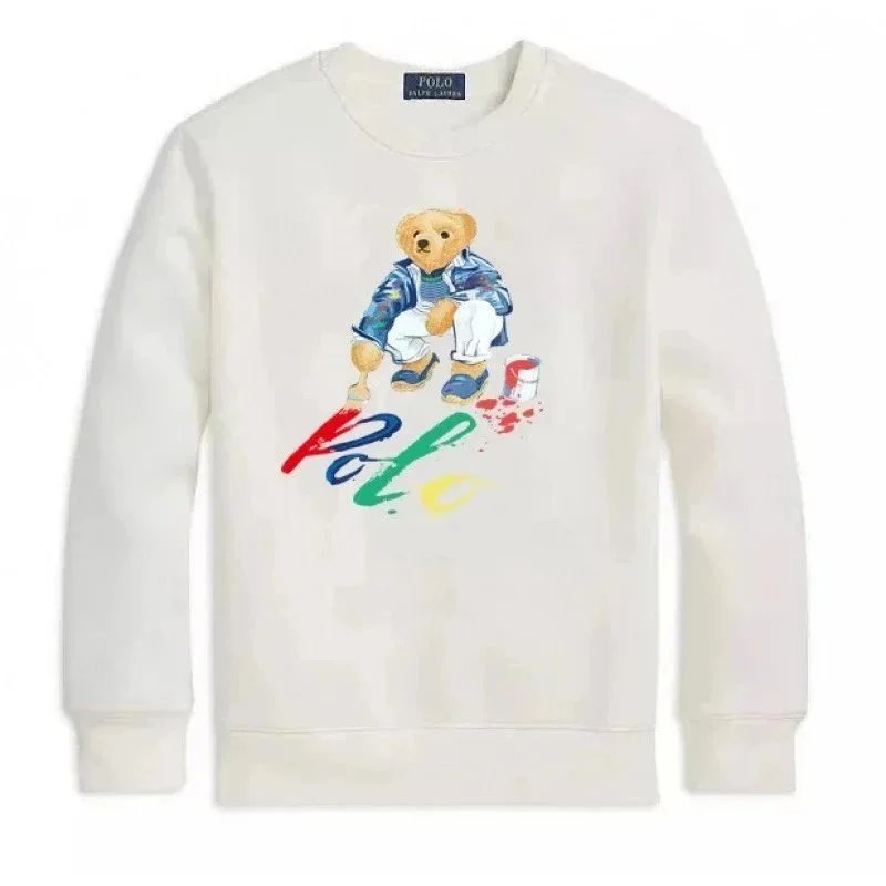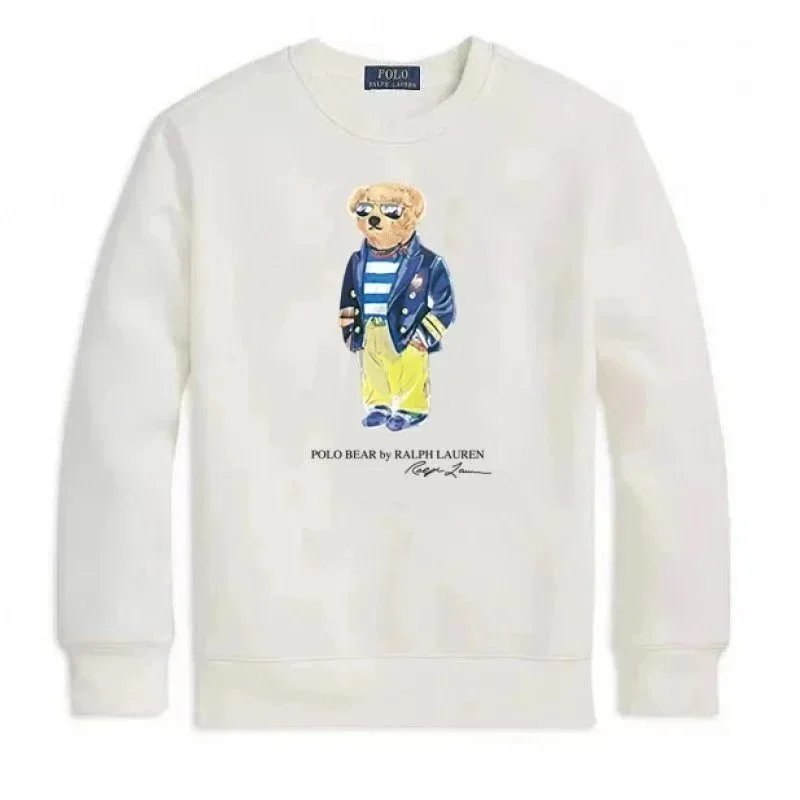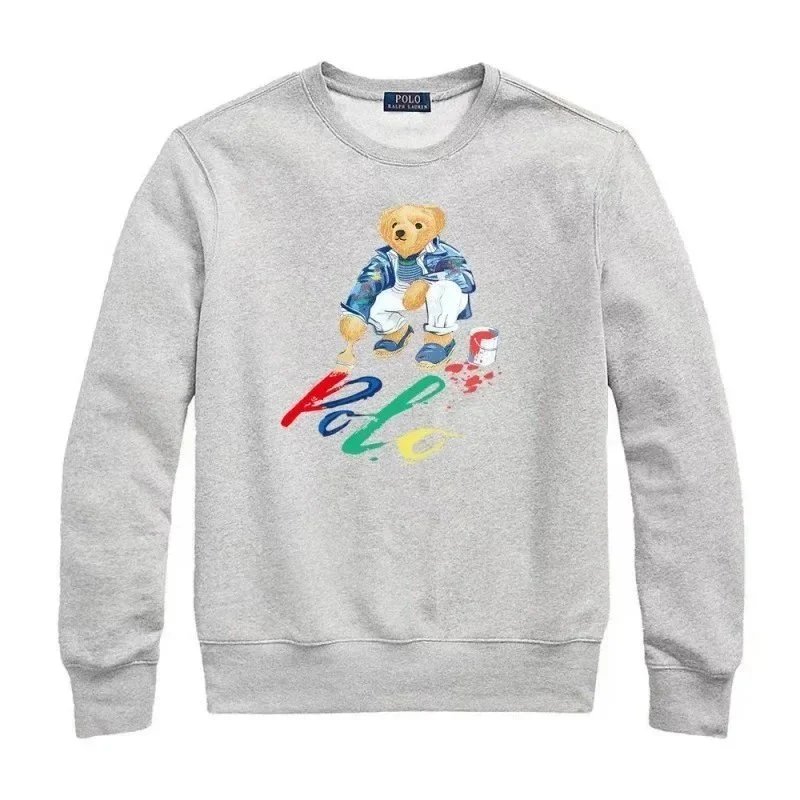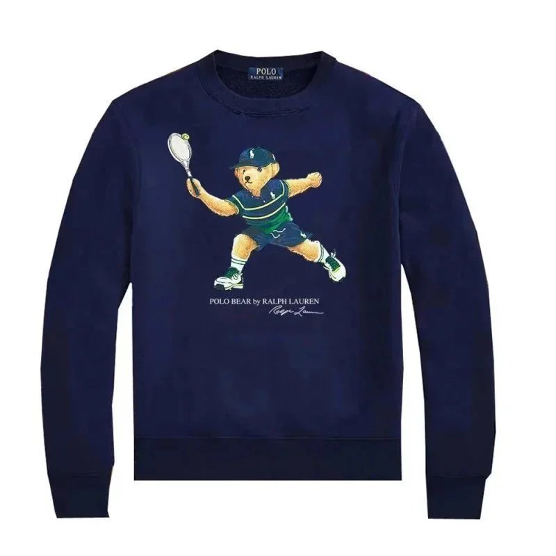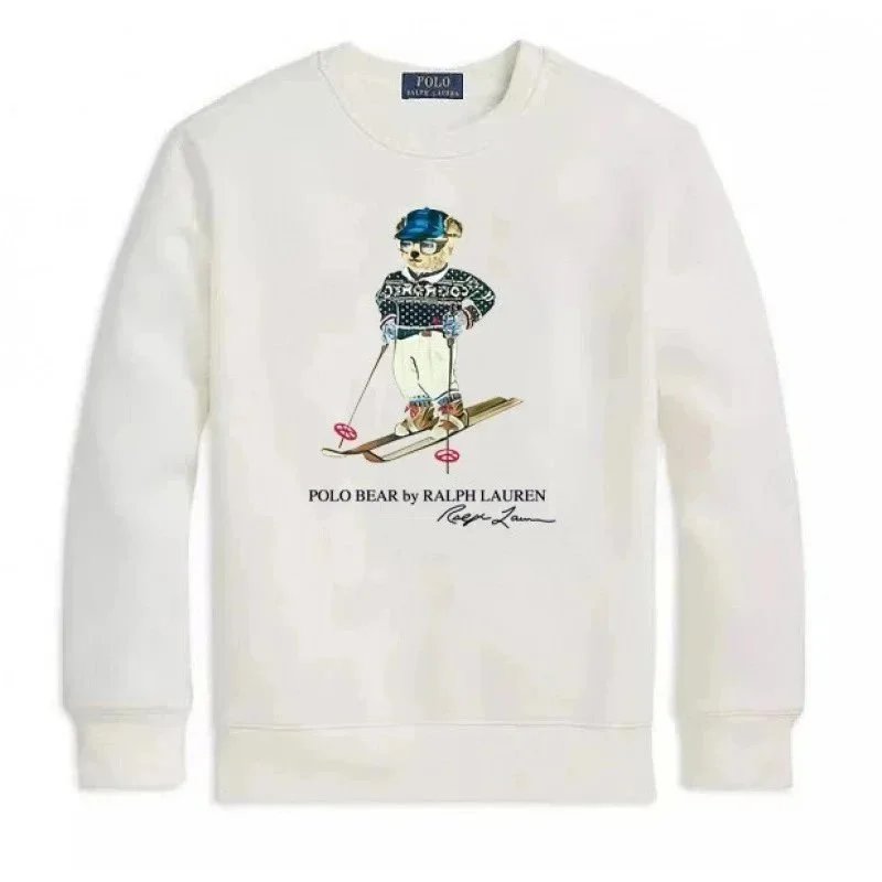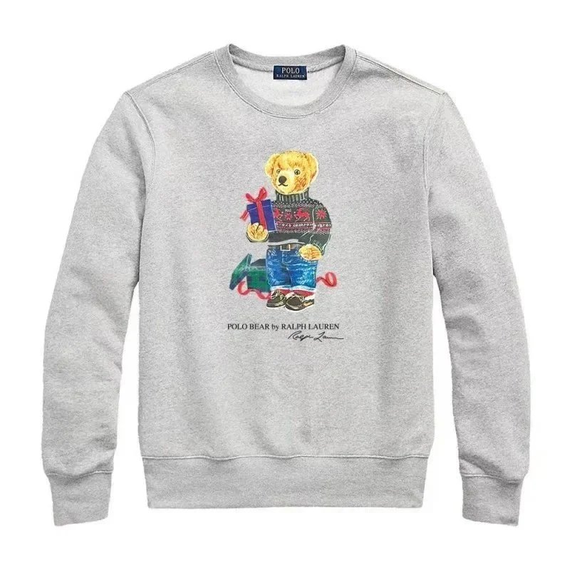 Shop iconic Polo Bear sweatshirts by Ralph Lauren featuring playful bear graphics in classic navy, heather gray, and off-white.