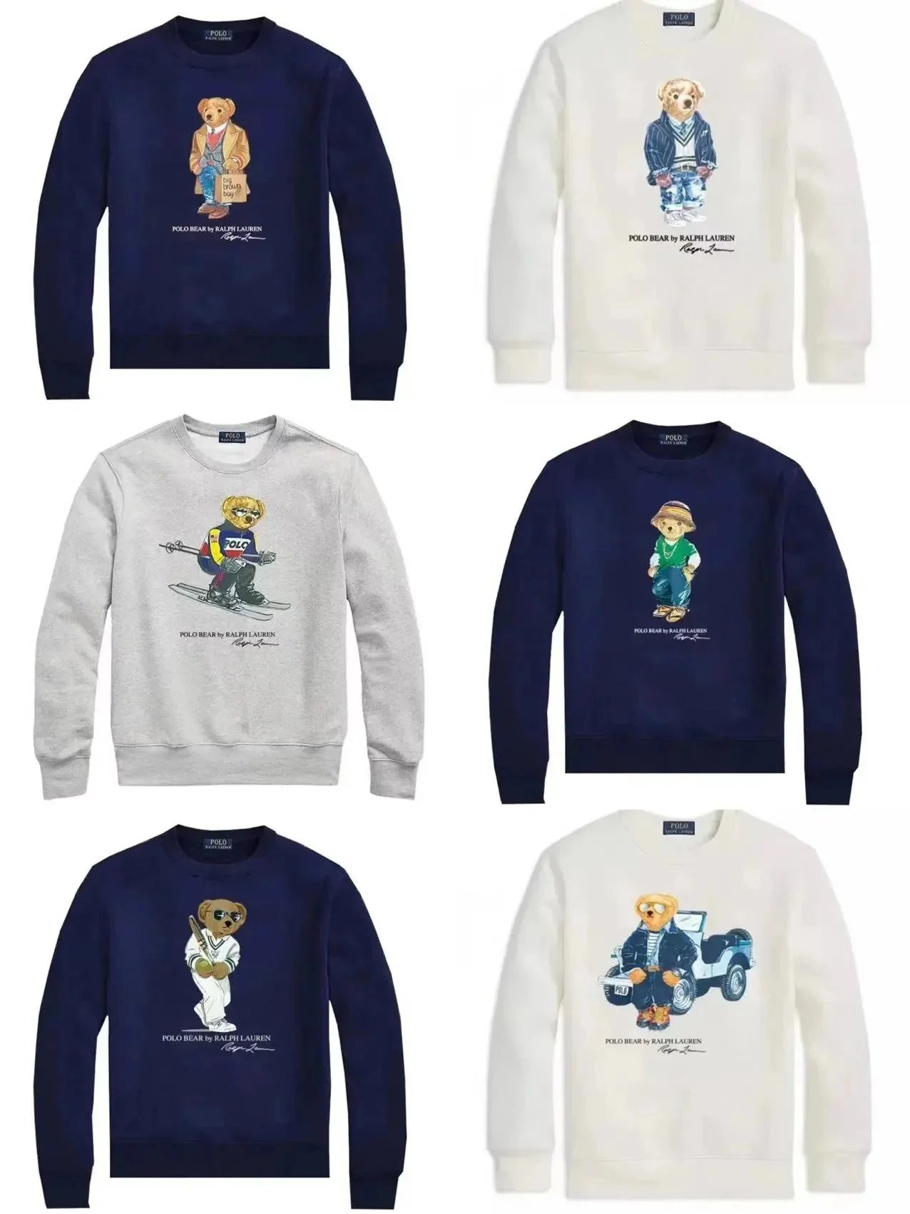 Shop the iconic Polo Bear sweatshirts by Ralph Lauren, featuring playful bear graphics in classic colors like navy, white, and gray.