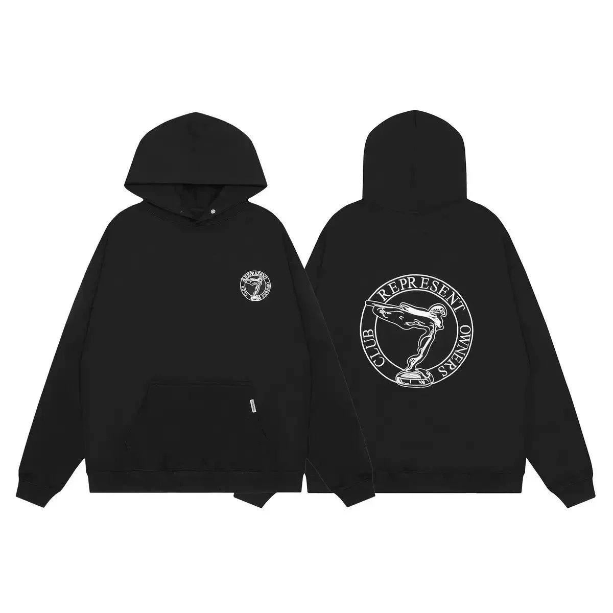 Discover the REPRESENT hooded sweatshirt collection featuring bold graphic prints, including angel wings, floral motifs, and club branding. Available in black and cream for urban streetwear style.