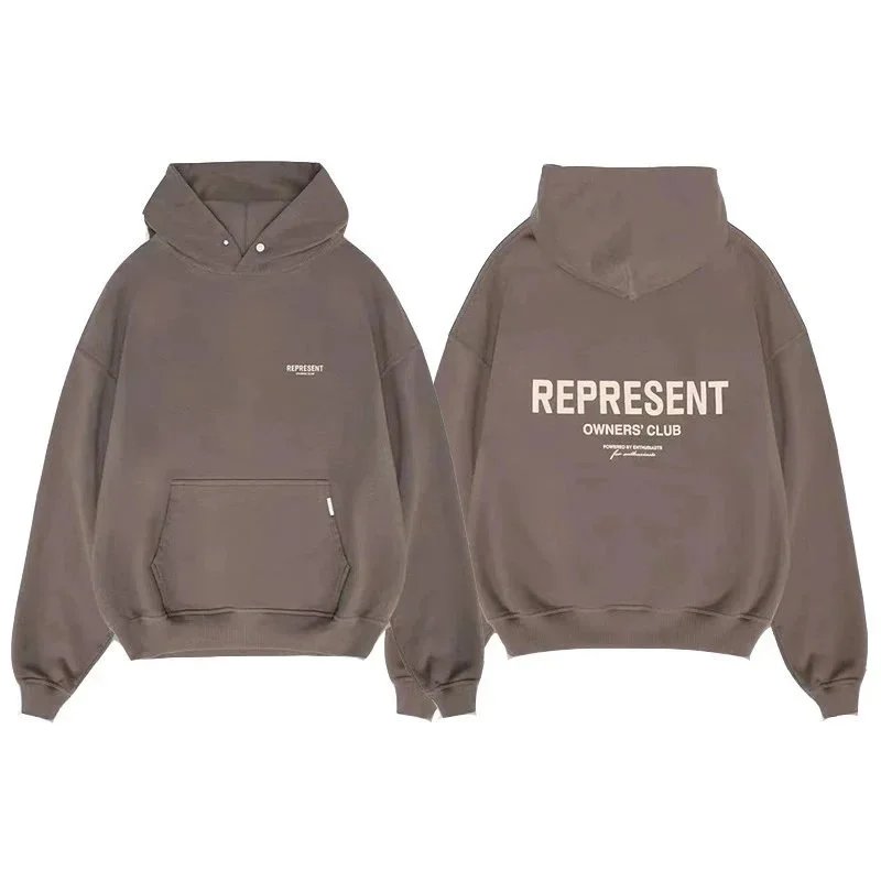 Shop the REPRESENТ Owners' Club hoodie in soft grey. Featuring bold back print and minimal front branding for a clean, streetwear look.