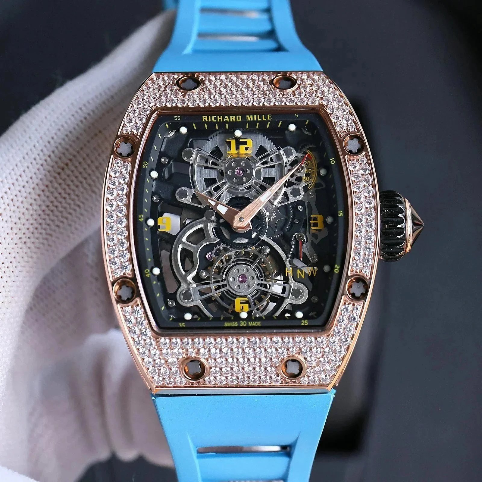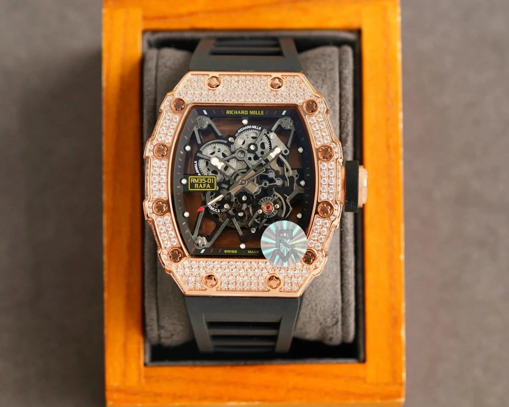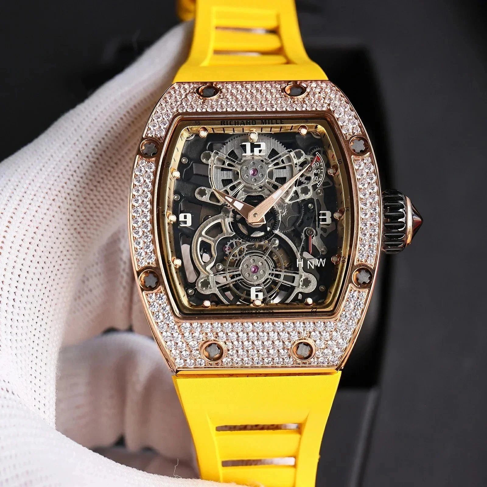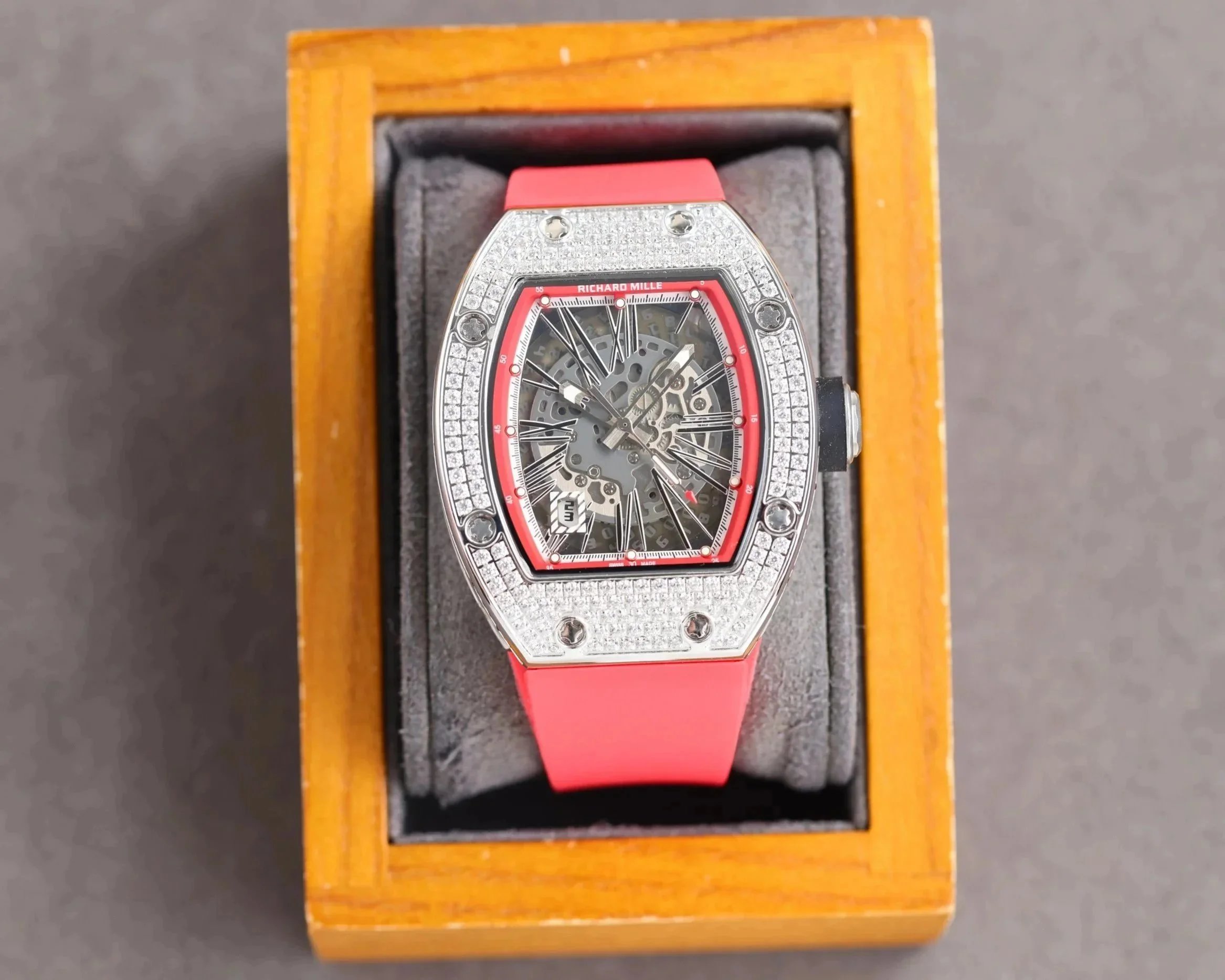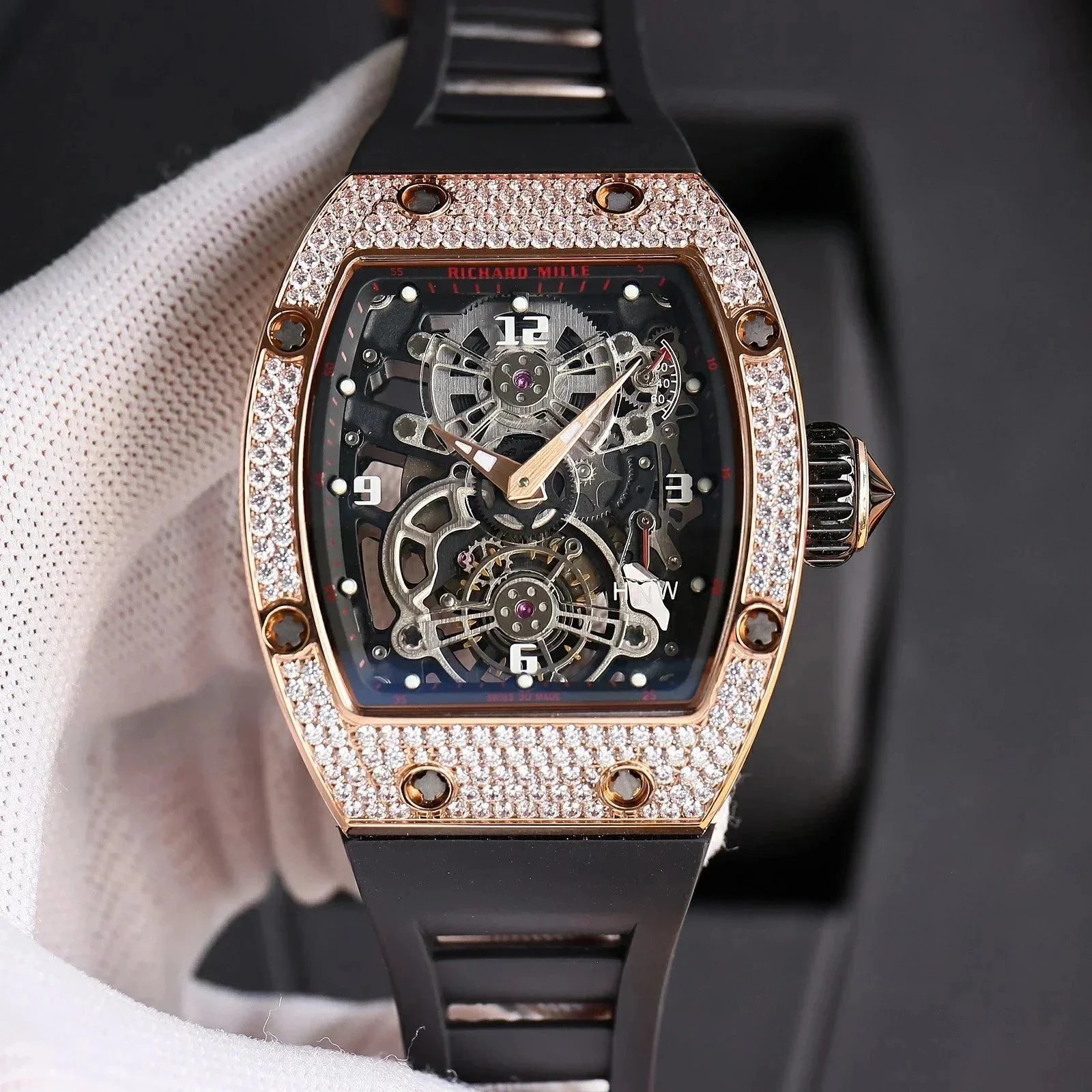 Premium Richard Mille carbon fiber watch featuring a skeletonized dial and Swiss-made automatic movement. A masterpiece of engineering and design for discerning collectors.