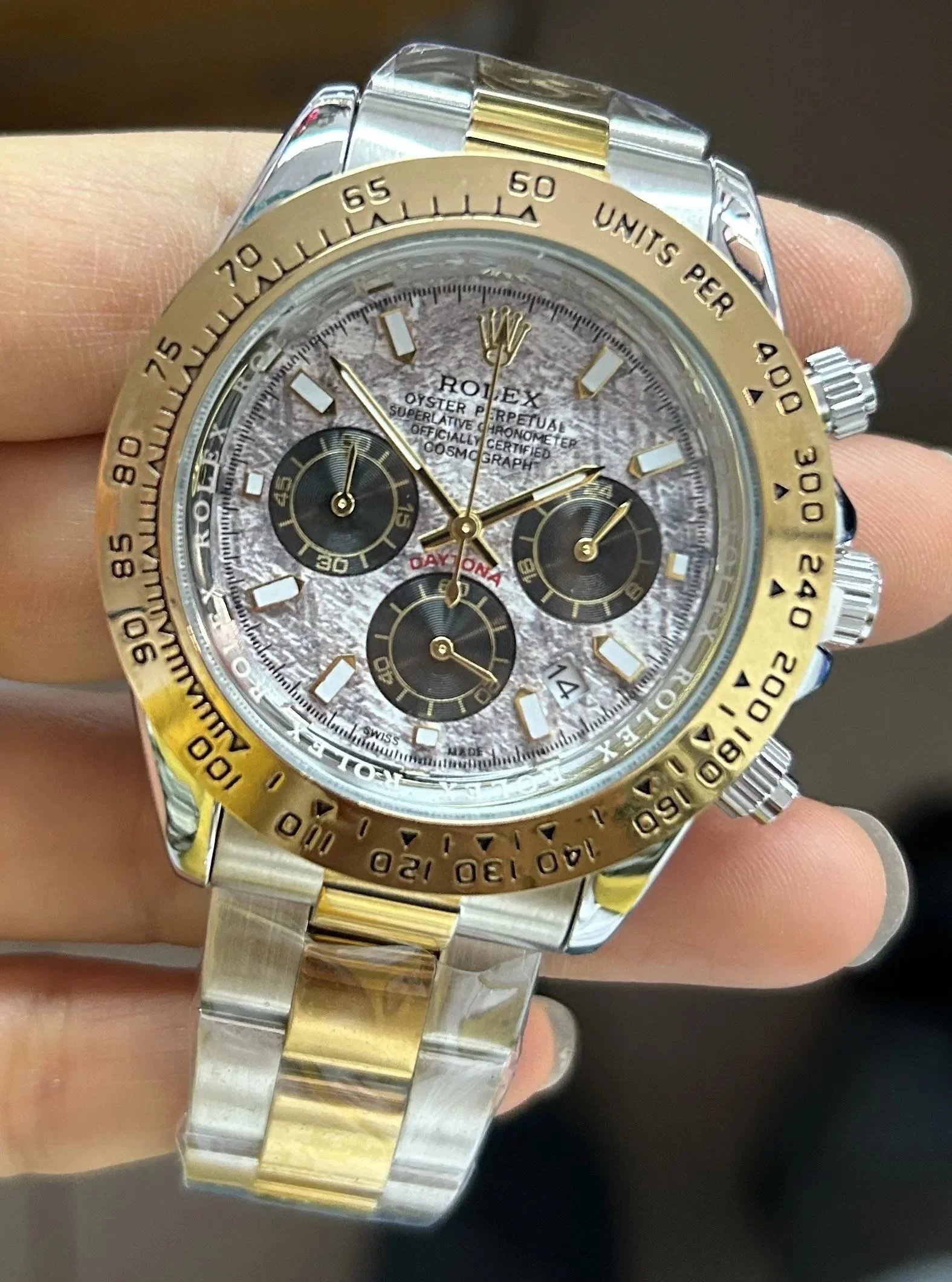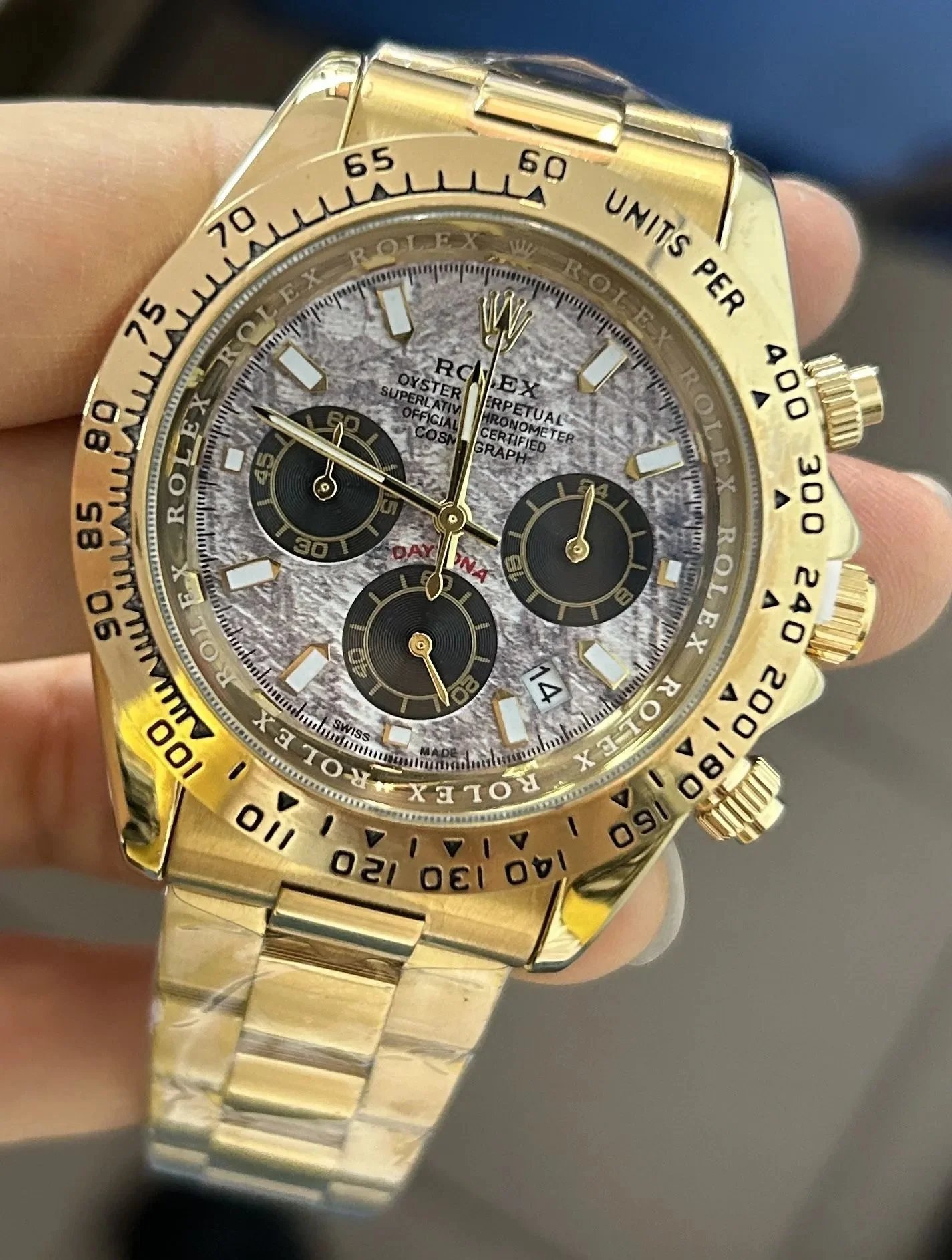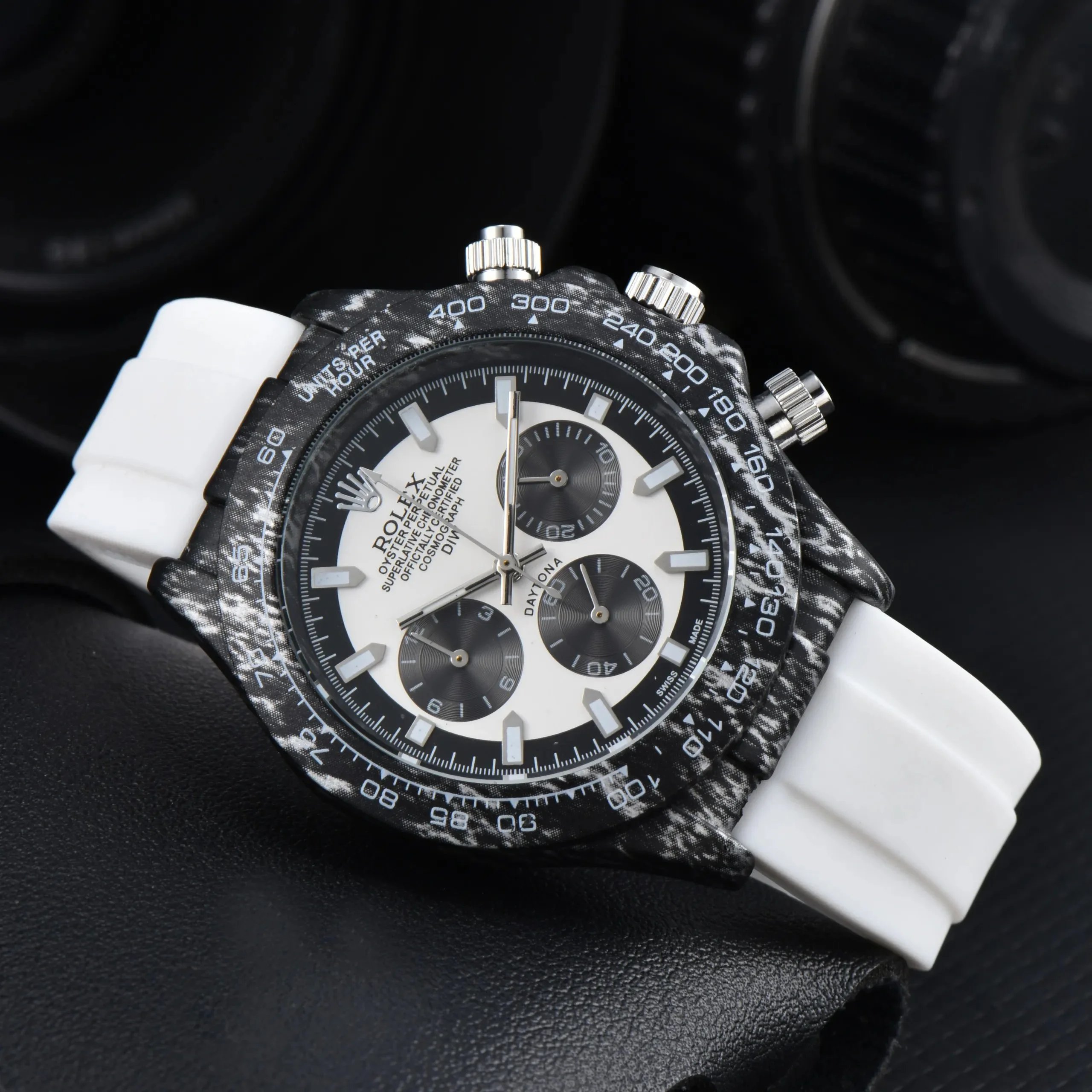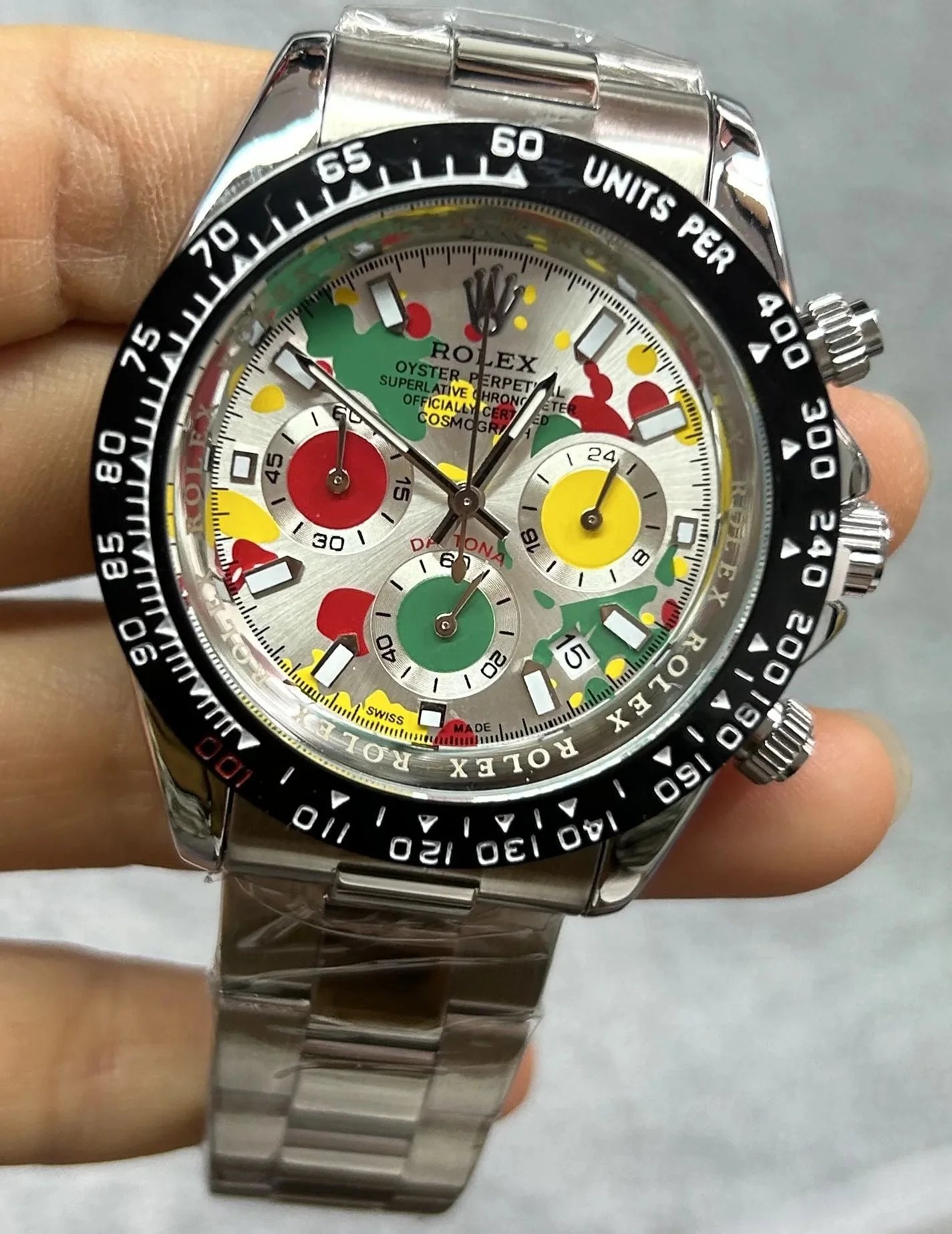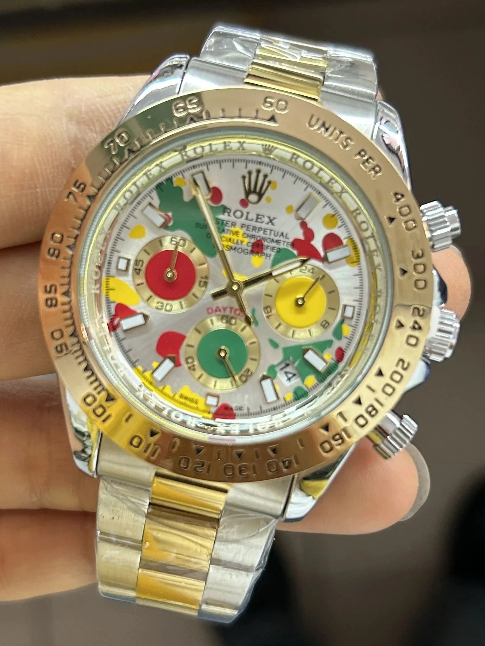 Discover premium Rolex Daytona chronographs featuring distinctive dials — from vibrant colors to textured patterns — paired with gold or steel cases and rubber or metal bracelets for versatile luxury appeal.