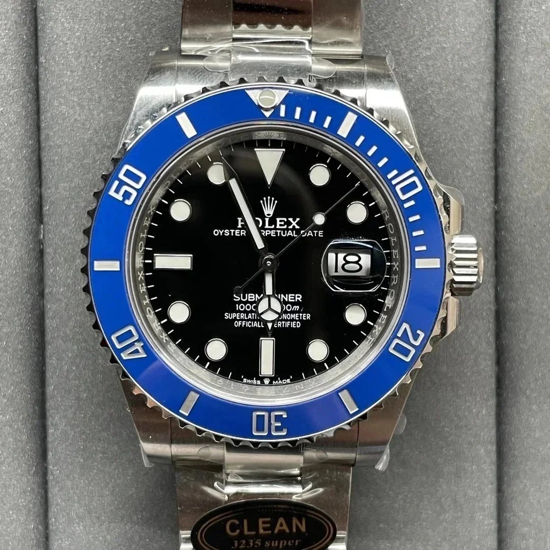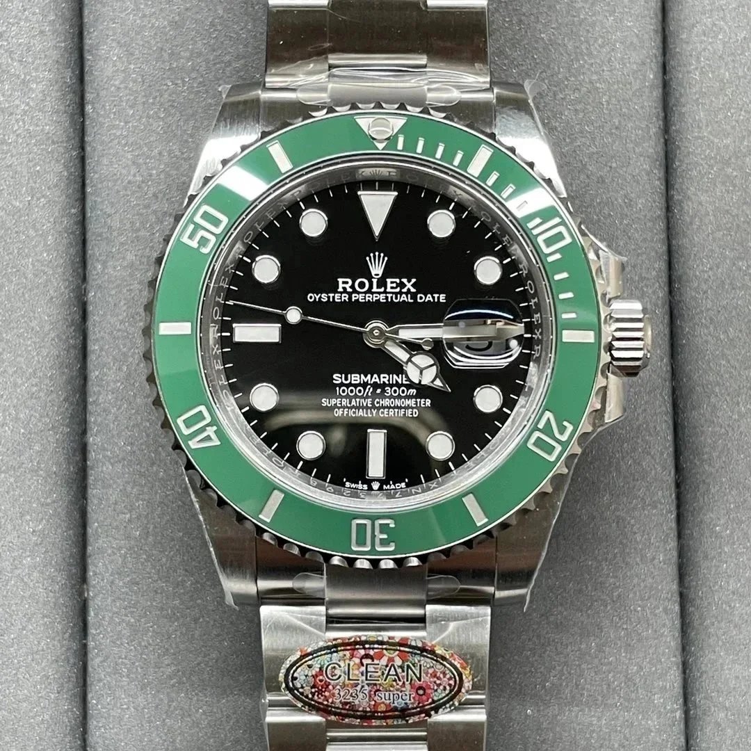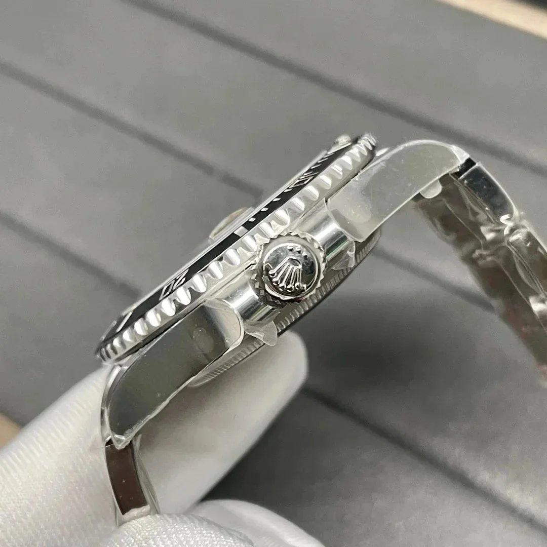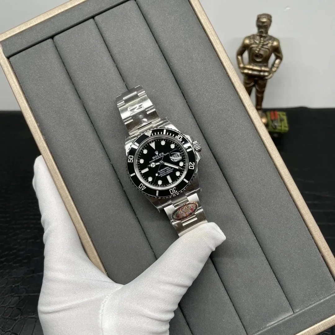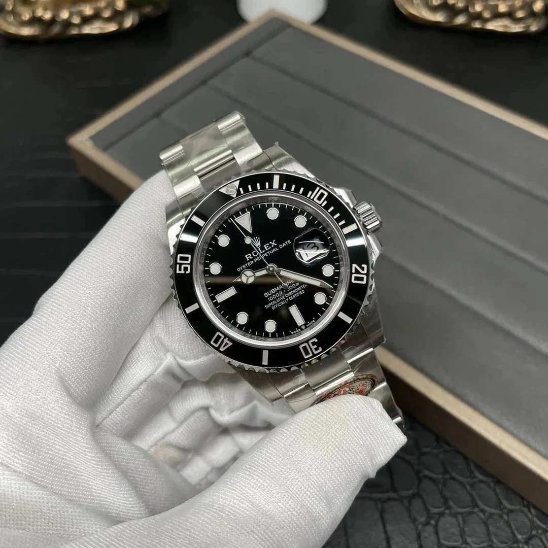Premium Rolex Submariner with a sleek black dial and stainless steel bracelet. This iconic dive watch features a date display and is officially certified as a Superlative Chronometer.