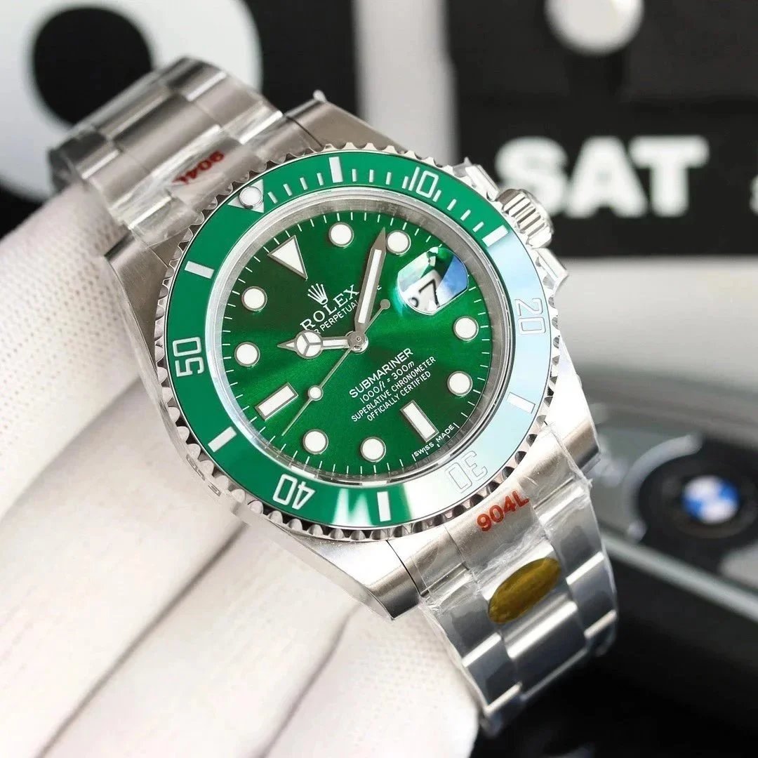 Premium Rolex Submariner with a vibrant green dial and 904L stainless steel bracelet. A timeless luxury dive watch built for performance and elegance.