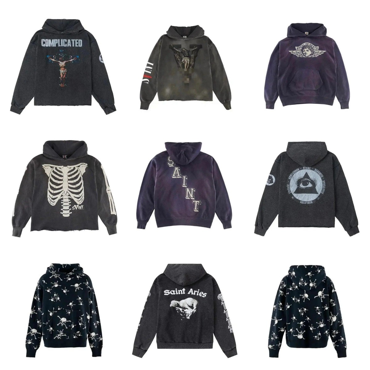 Explore Saint Aries' edgy collection of gothic hoodies featuring bold skull prints, crucifix imagery, and occult symbolism for a statement streetwear look.
