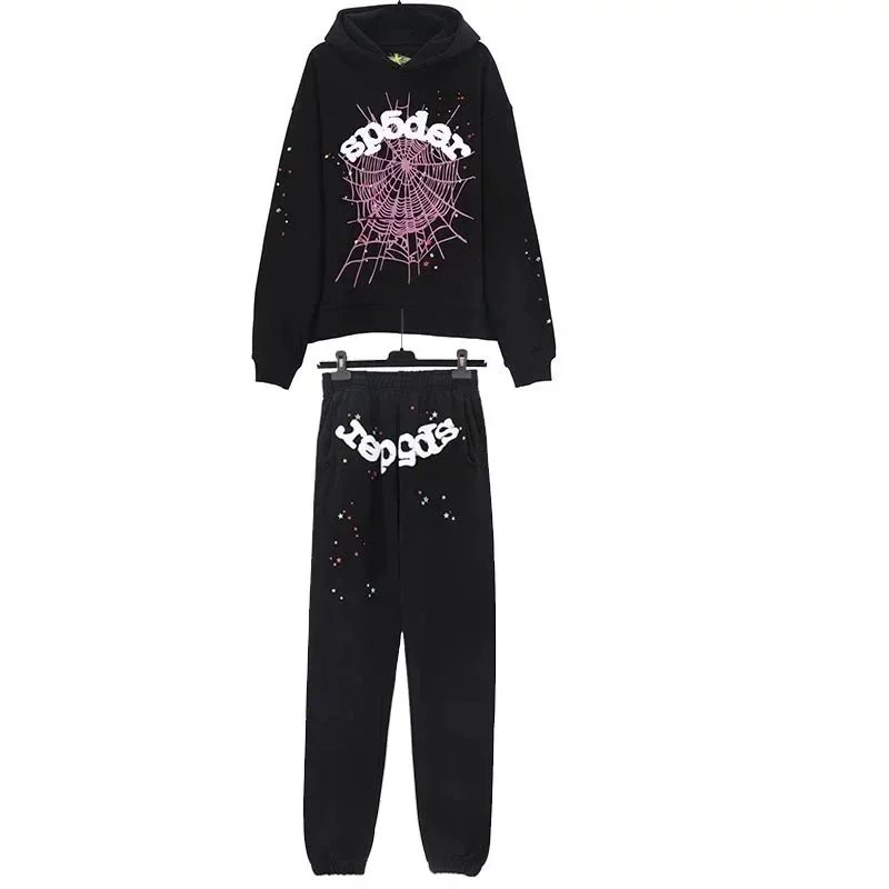 Shop bold spider web graphic hoodies and matching joggers in vibrant colors. Perfect for streetwear lovers seeking comfort and standout style.