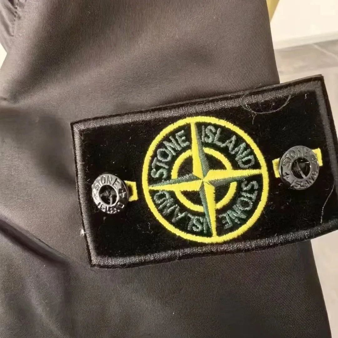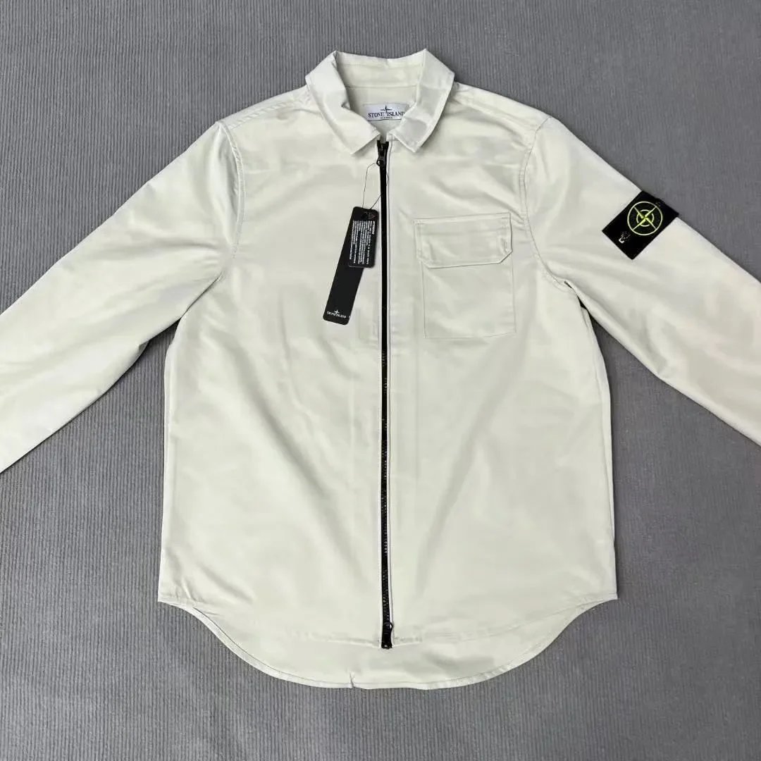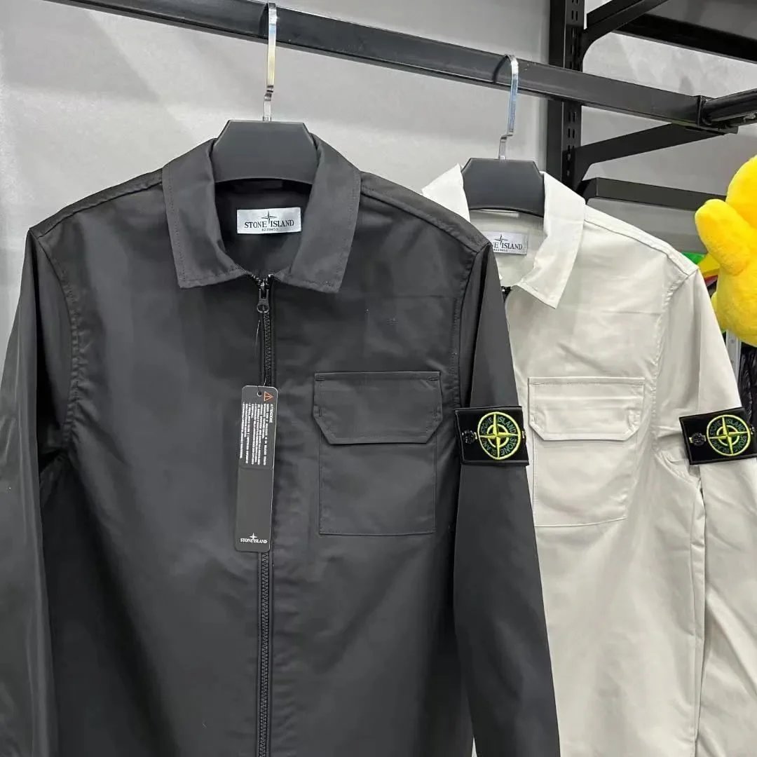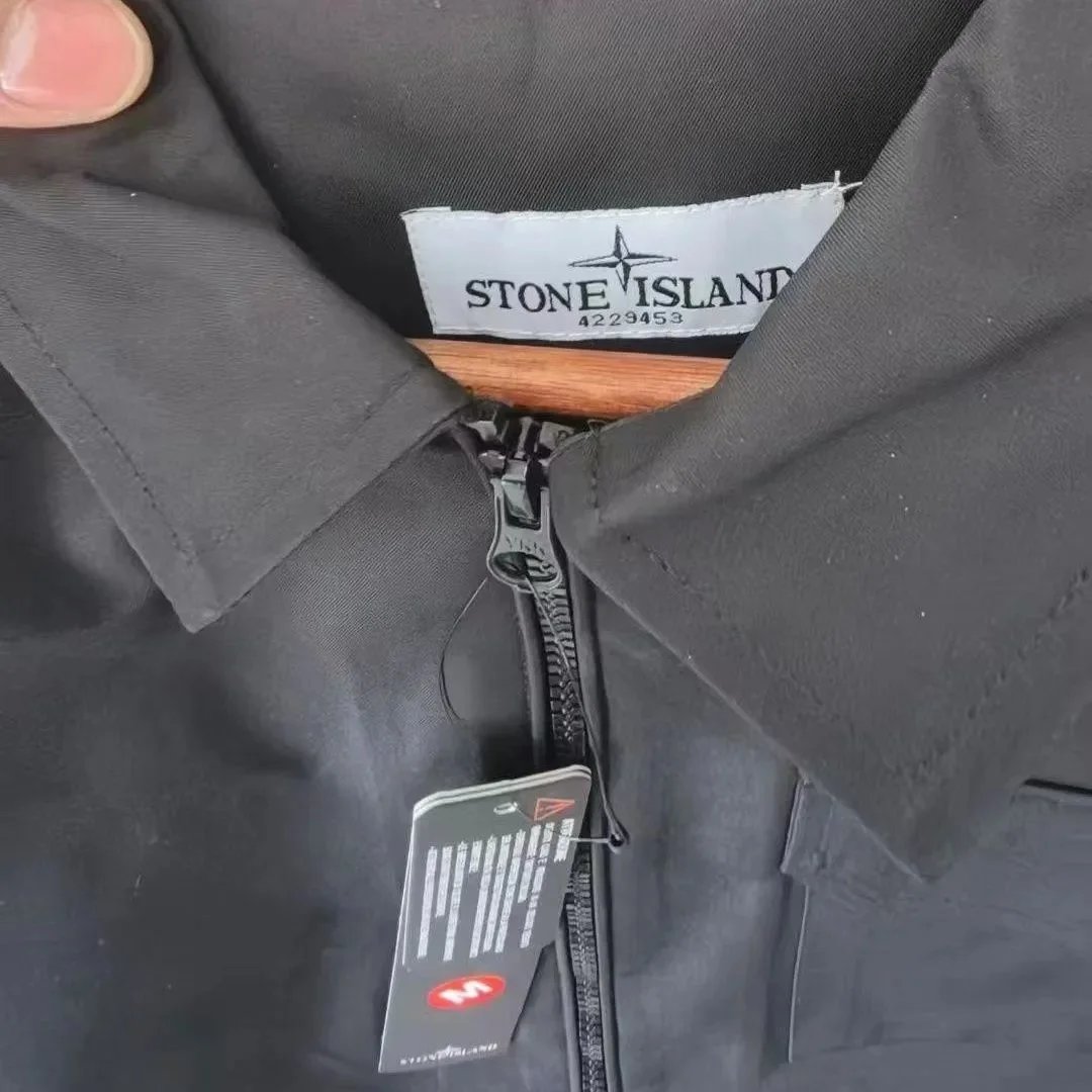 Premium Stone Island black long-sleeve zip-front shirt featuring a signature logo patch on the sleeve and a sleek, functional design for modern urban wear.