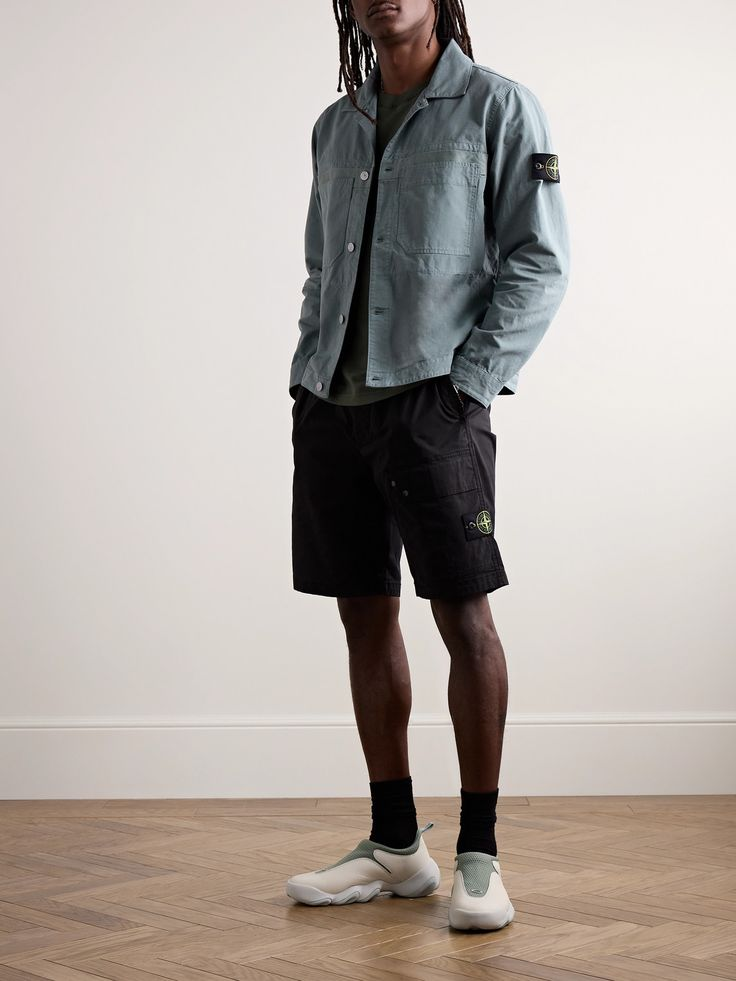 Discover the rugged elegance of Stone Island cargo shorts in versatile colors. Designed for durability and comfort, these utility-style shorts feature multiple pockets and a signature compass patch.