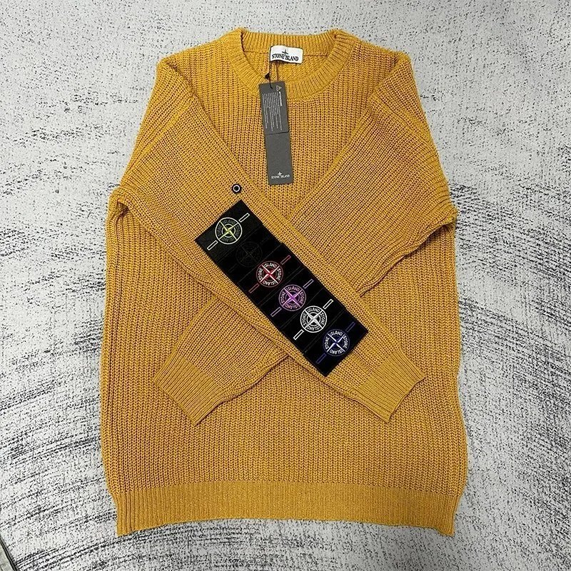 Premium Stone Island ribbed V-neck sweaters available in multiple colors. Perfect for layering or standalone wear with iconic badge detailing.