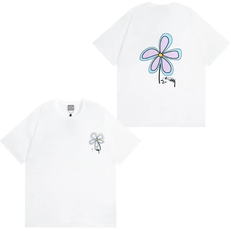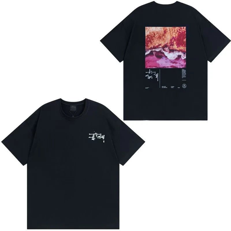 Discover the Stussy graphic t-shirt collection featuring bold, artistic prints including dice, 8-ball, dinosaurs, and abstract patterns across multiple colors and styles.