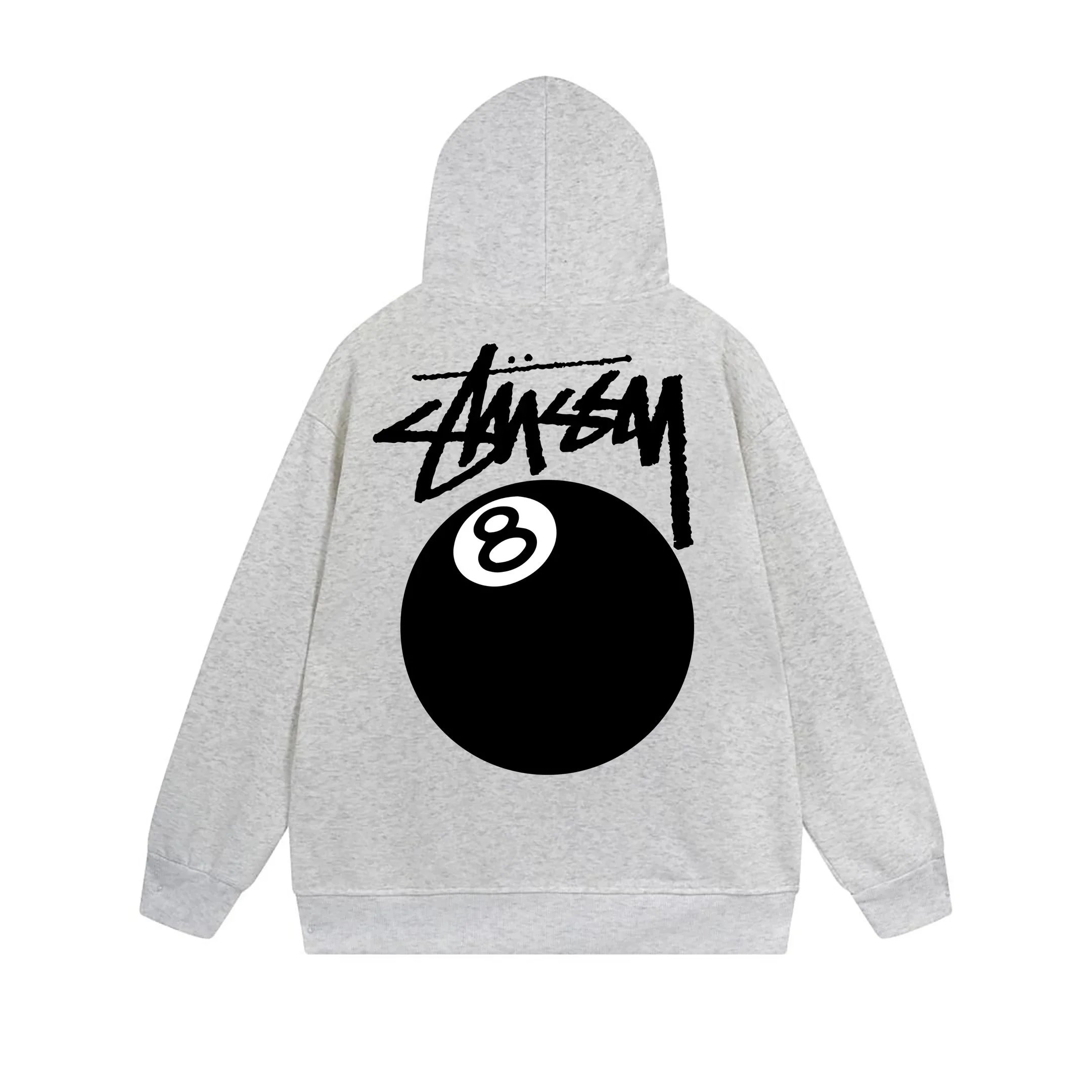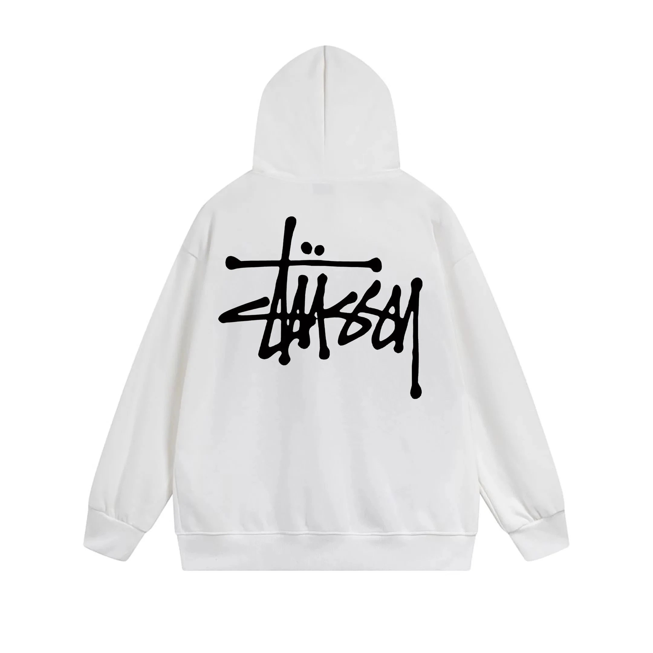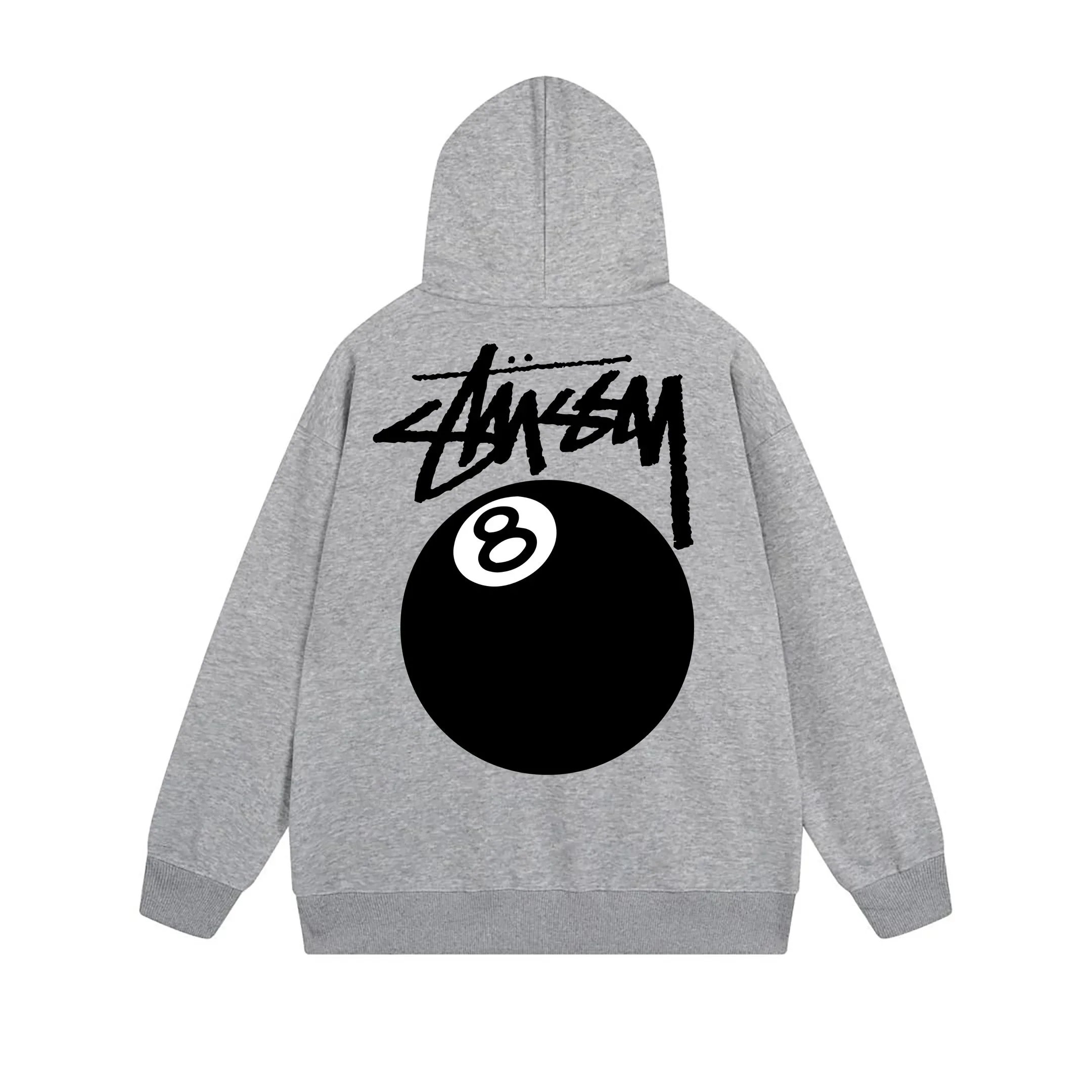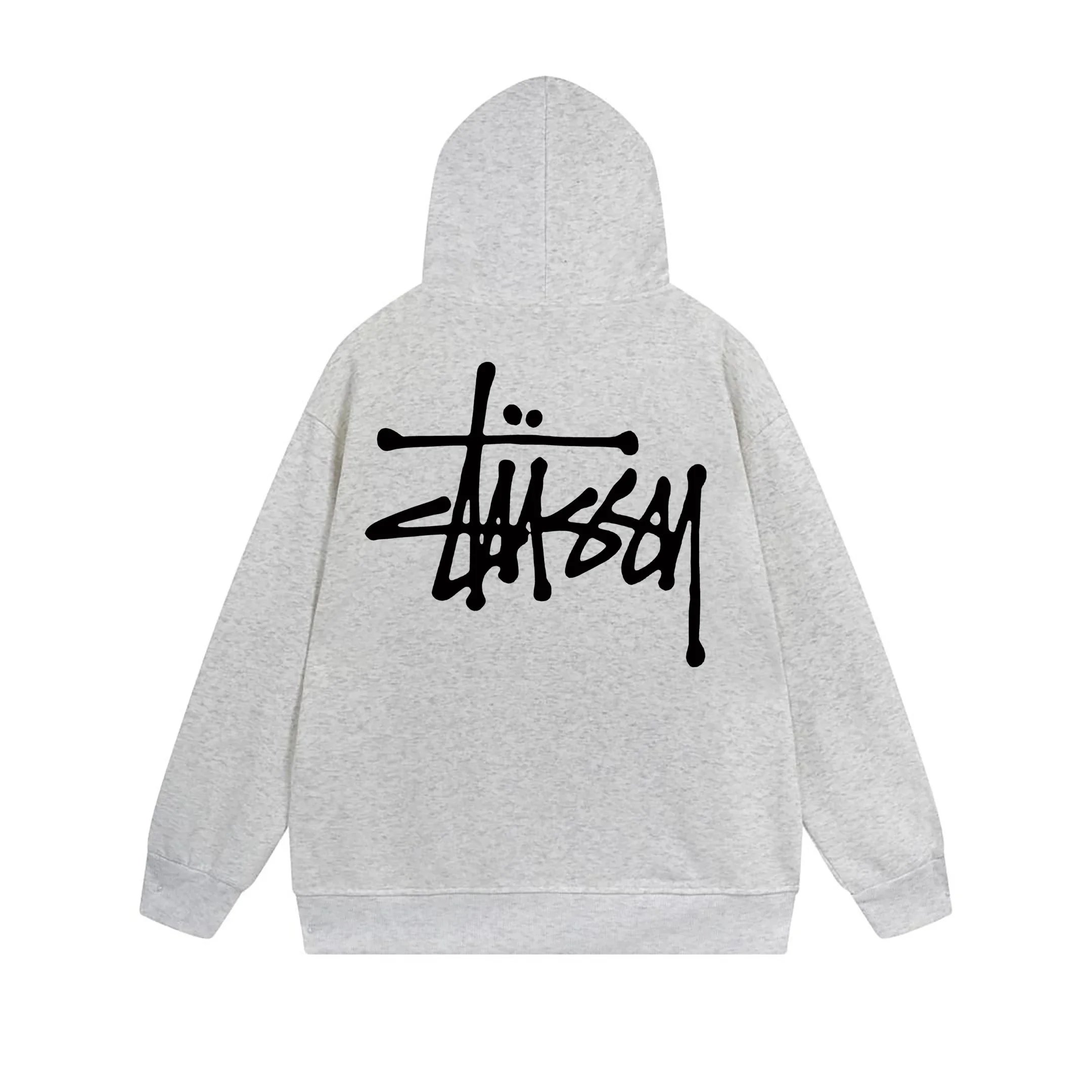 Stüssy zip-up hoodies featuring bold city graphics and signature branding. Perfect for urban streetwear style in multiple colors.