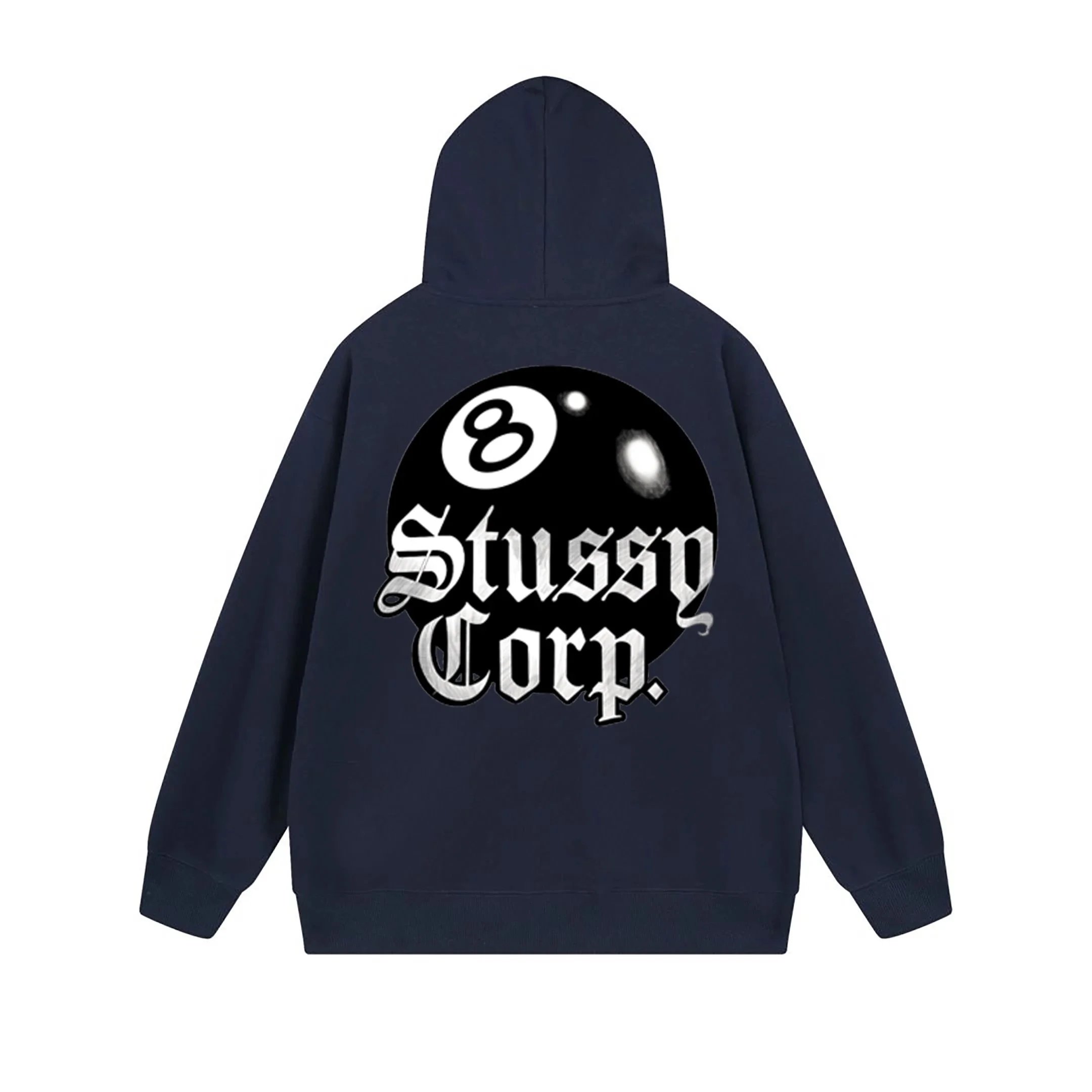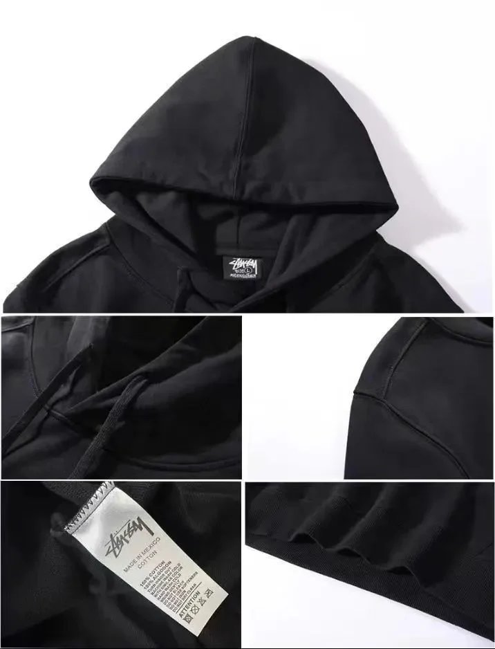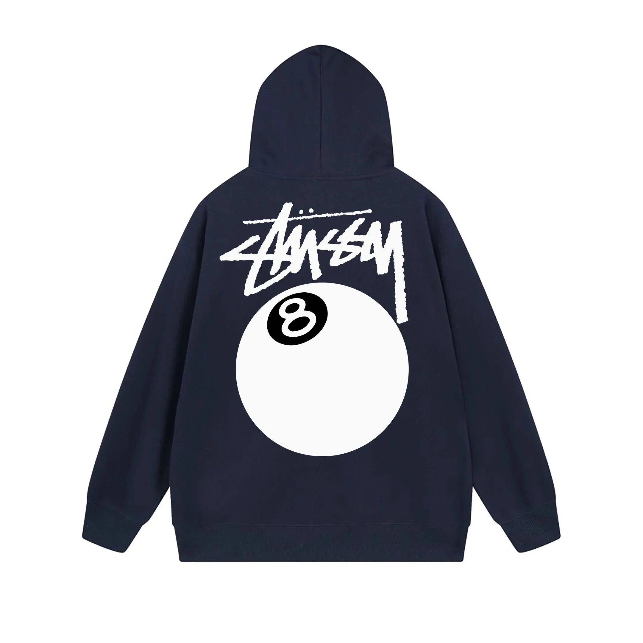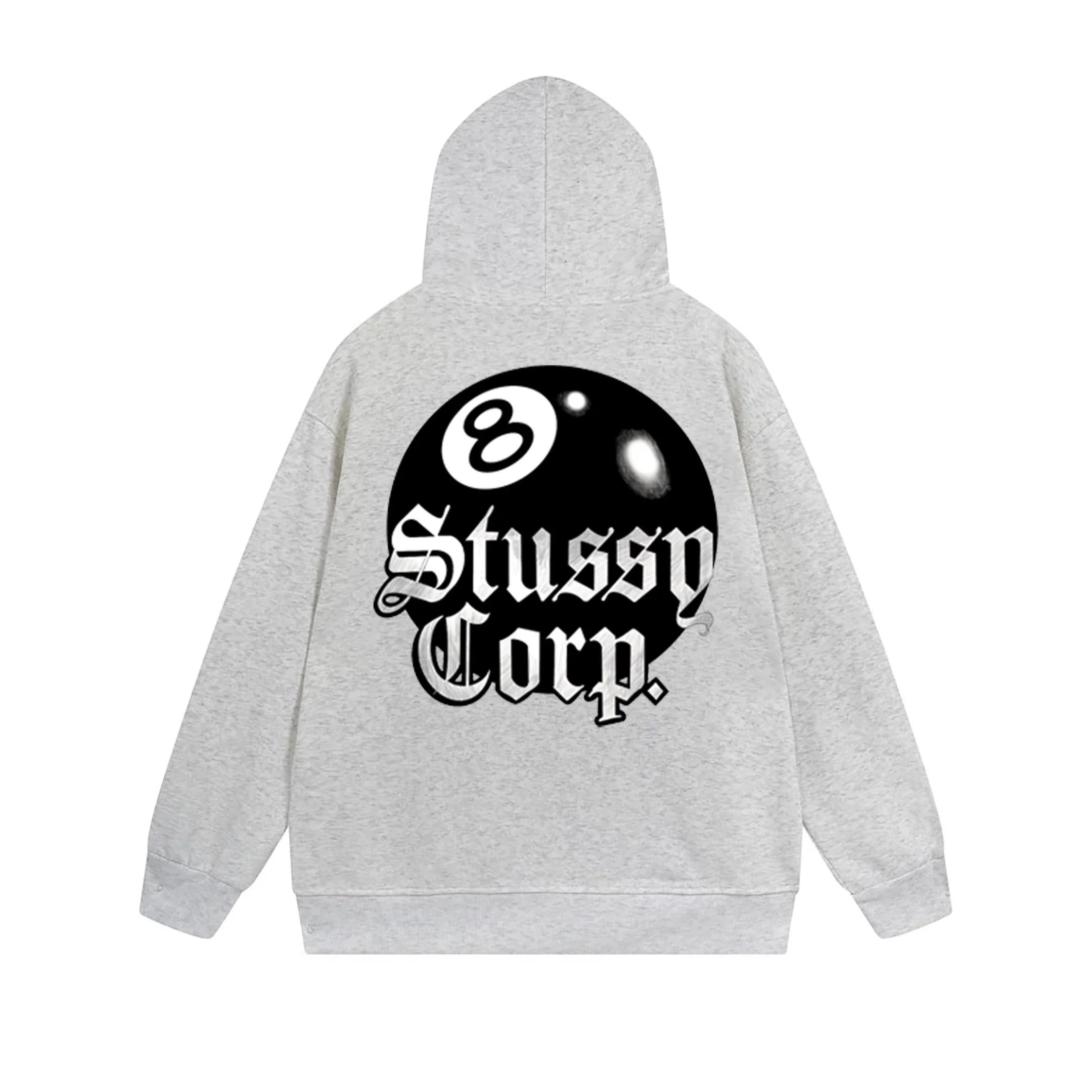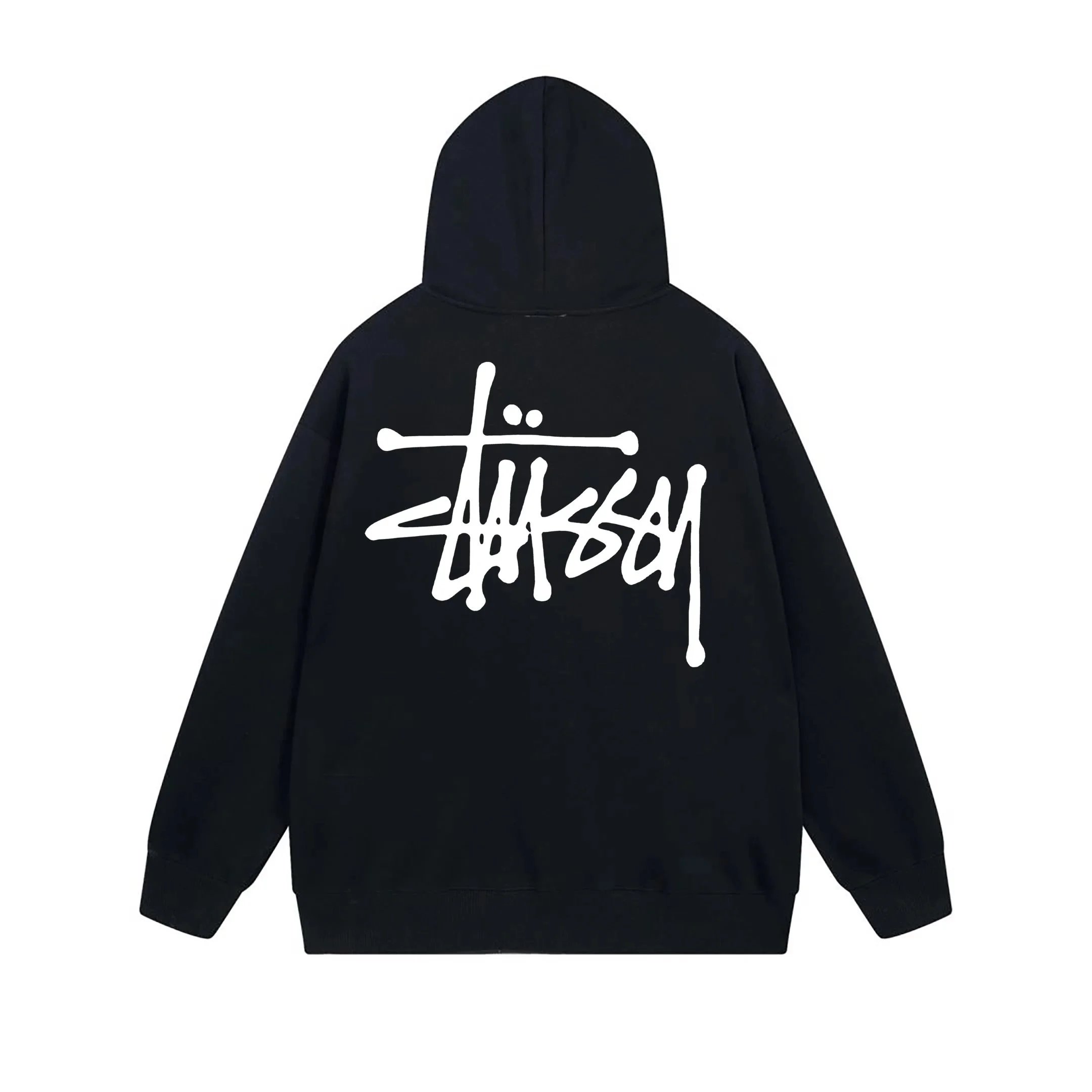 Stüssy zip-up hoodies featuring bold city graphics and signature branding. Perfect for urban streetwear style in multiple colors.
