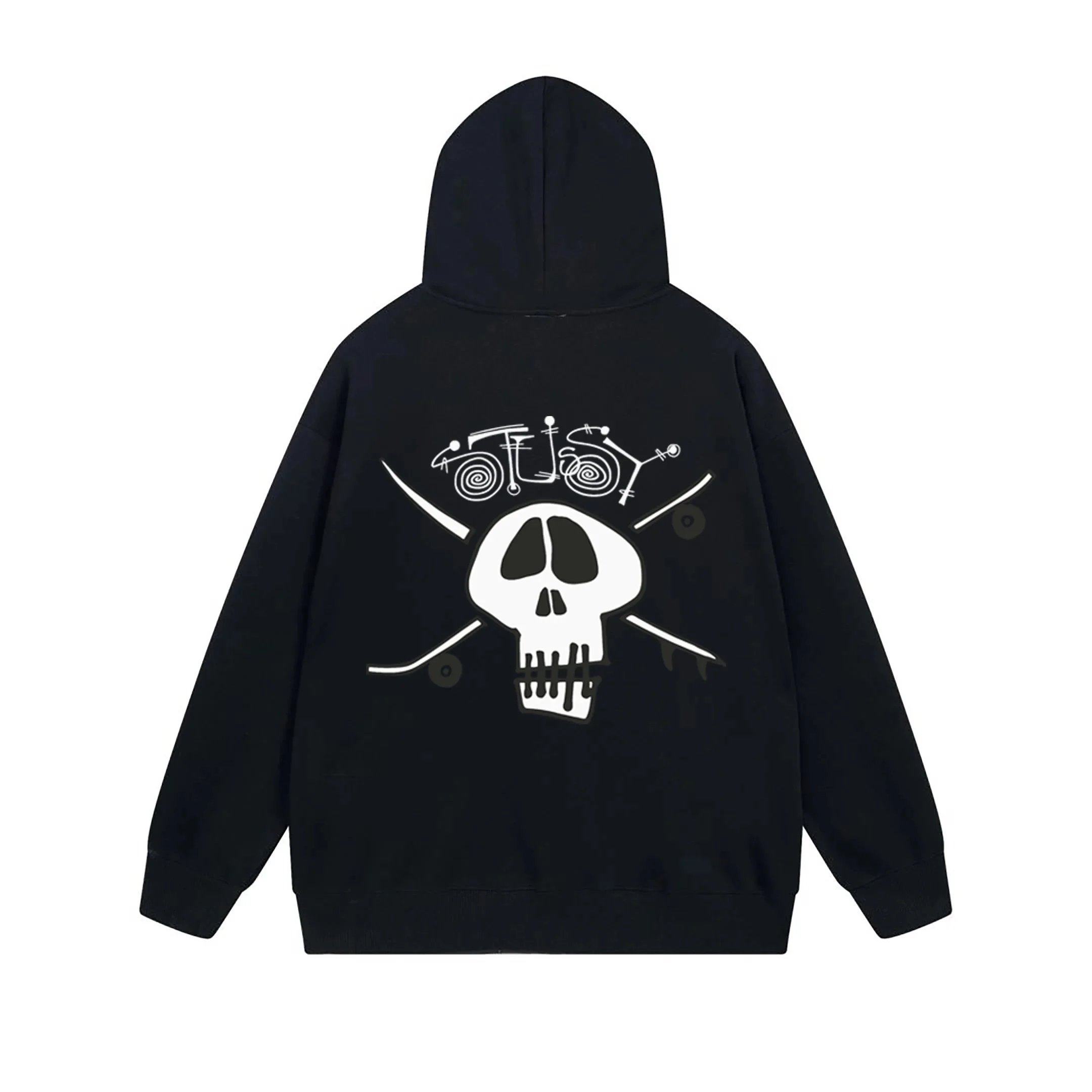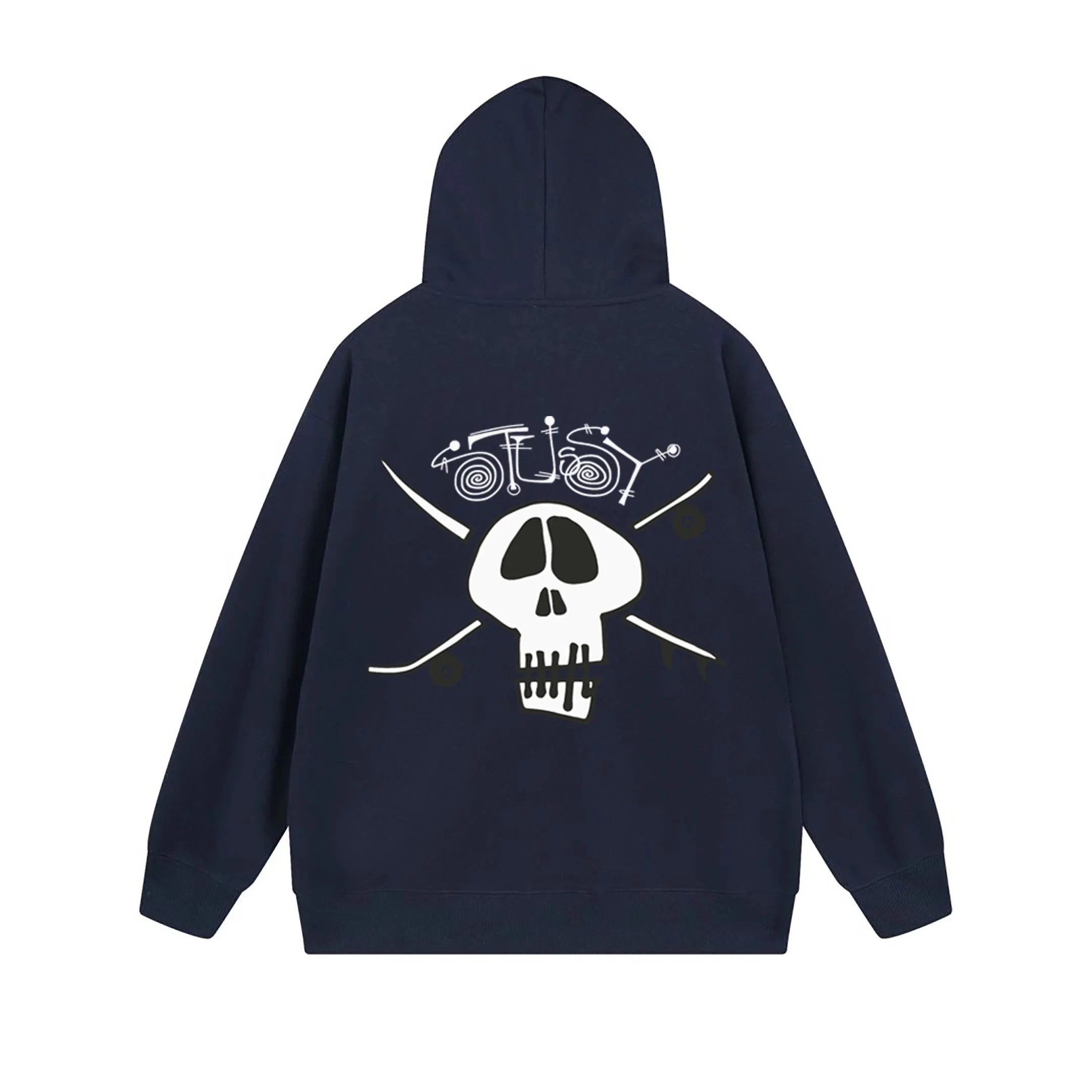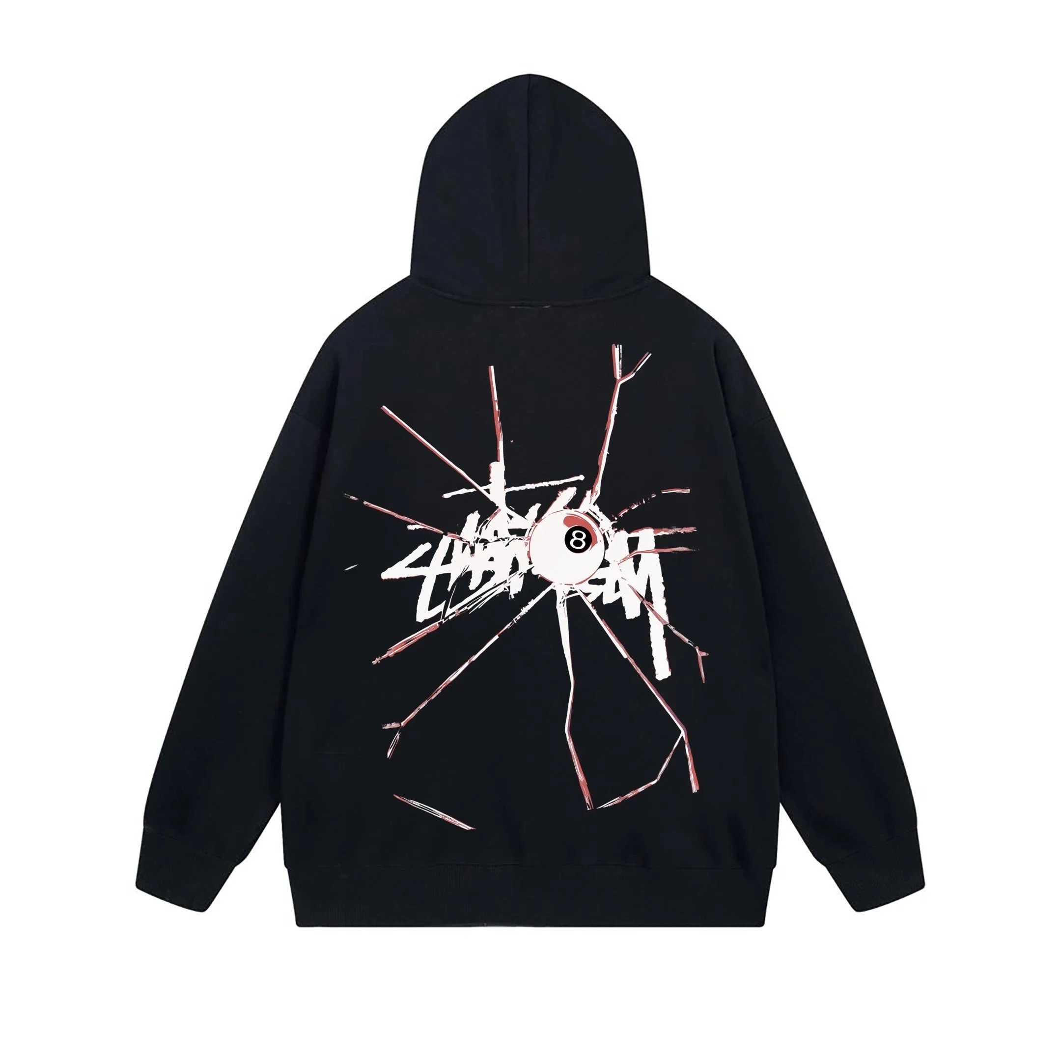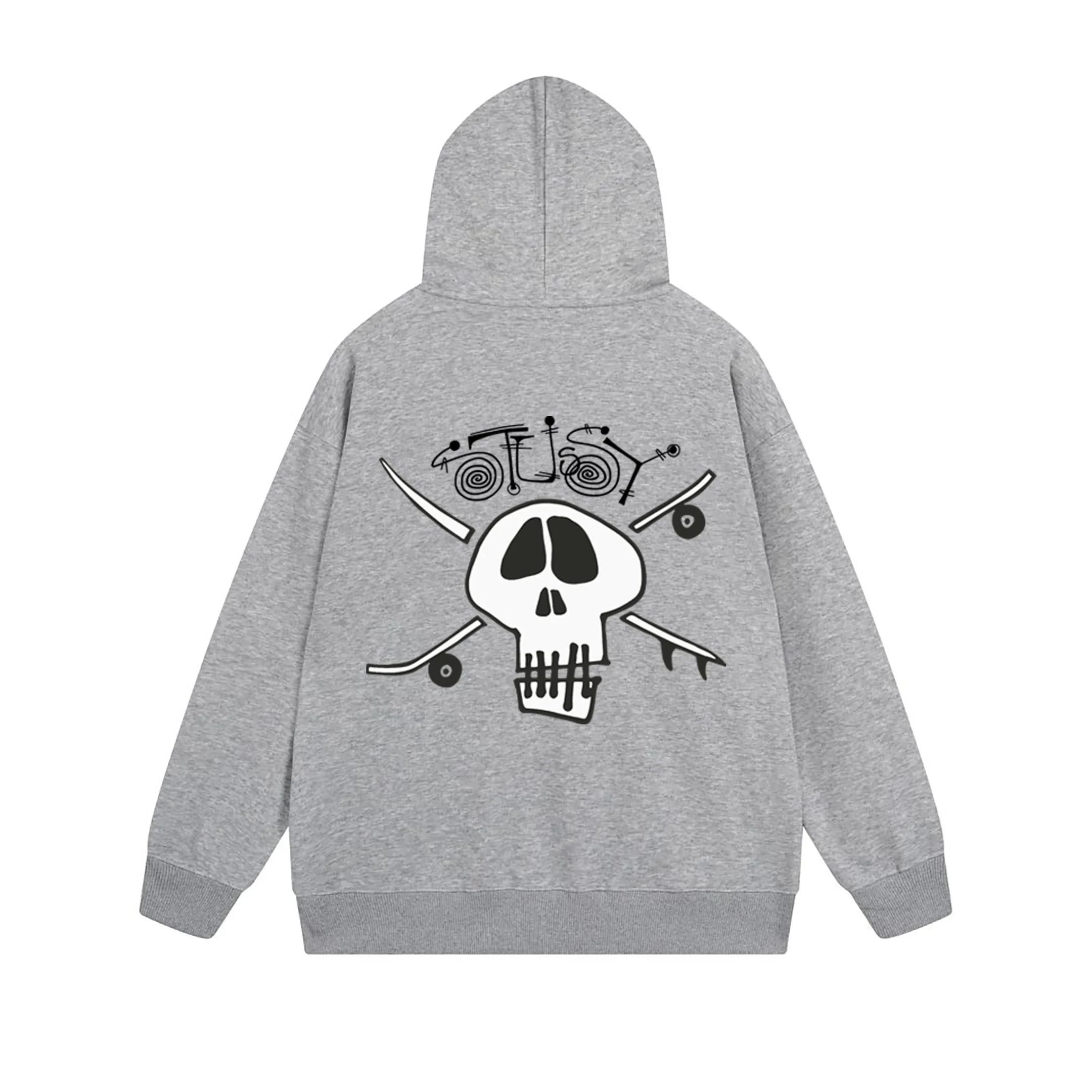 Stüssy zip-up hoodies featuring bold city graphics and signature branding. Perfect for urban streetwear style in multiple colors.