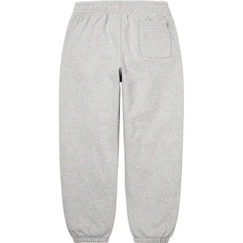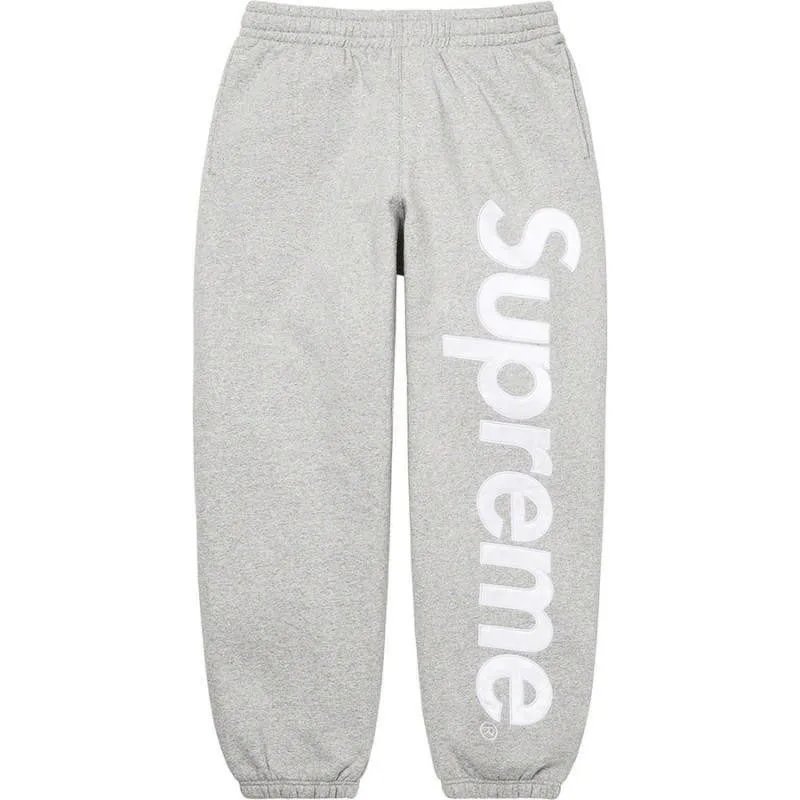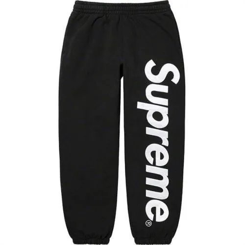 Black Supreme sweatpants featuring a bold white side logo, crafted for comfort and iconic streetwear style.