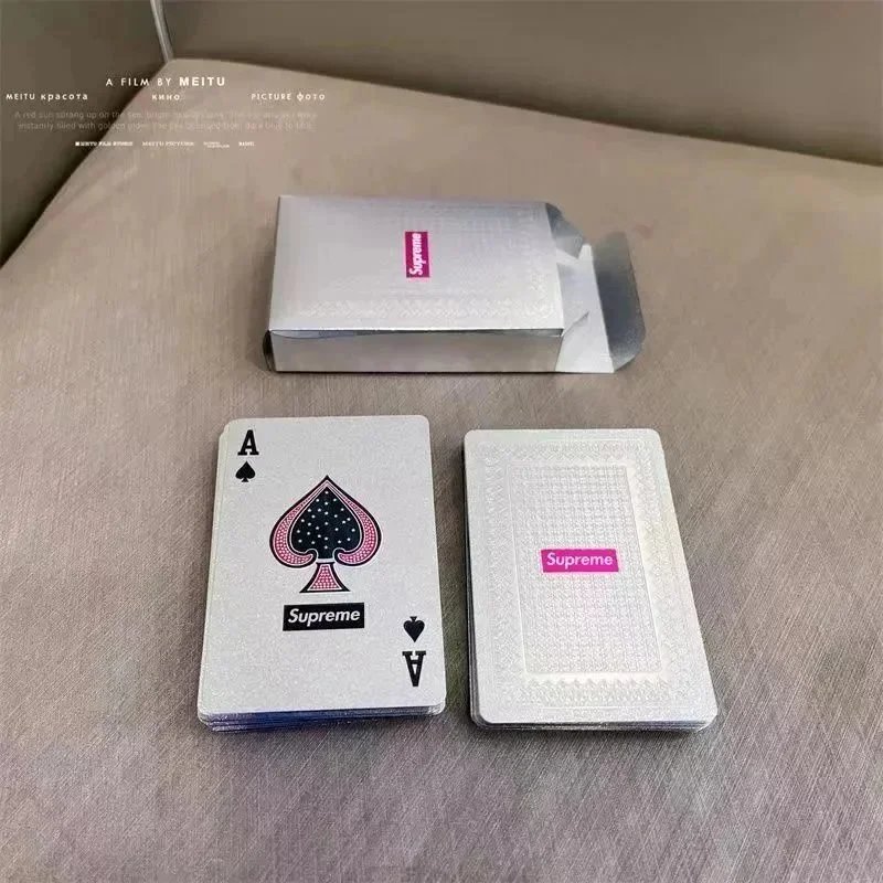Premium Supreme playing cards featuring iconic branding in gold and white editions. Perfect for collectors and card enthusiasts seeking high-quality, stylish decks.