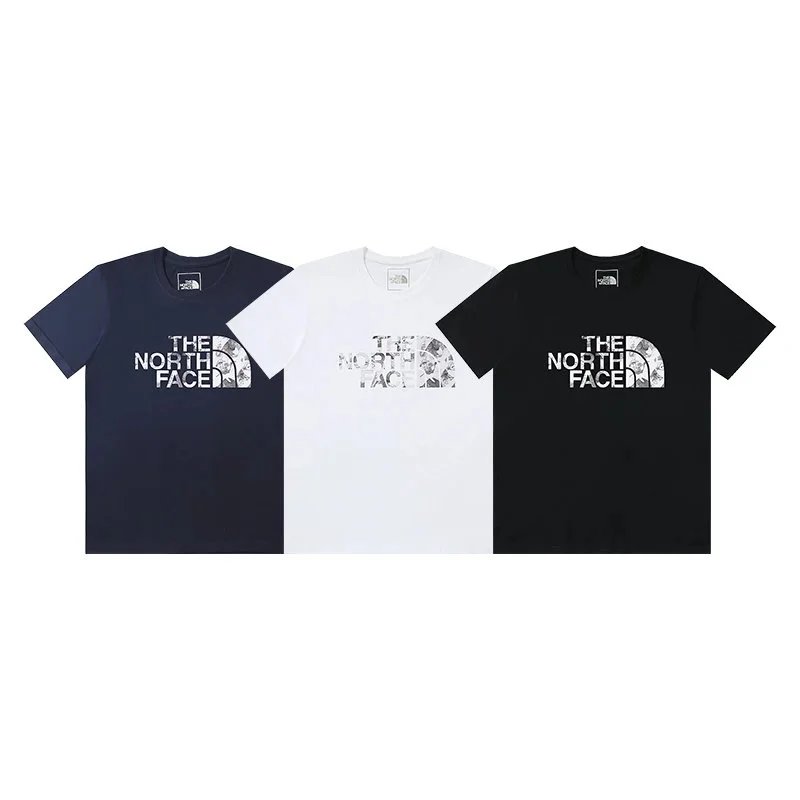 Discover The North Face’s versatile collection of t-shirts featuring bold logos, mountain graphics, and repeating brand text in black, white, blue, and gray. Ideal for everyday wear or outdoor adventures.