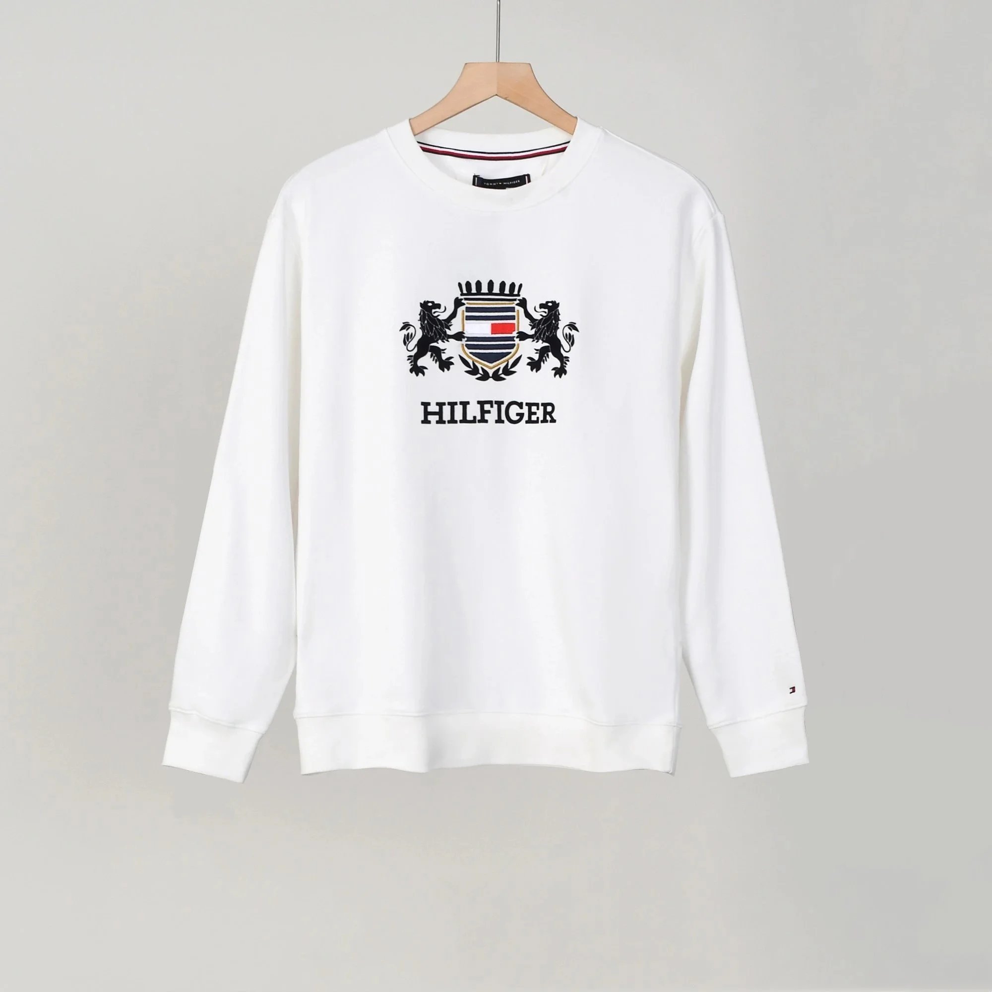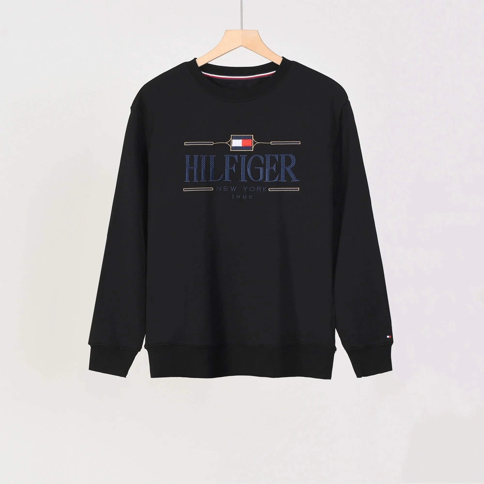 Shop the classic Tommy Hilfiger logo sweatshirt in black, white, and navy. Premium cotton blend with iconic branding for everyday comfort and style.